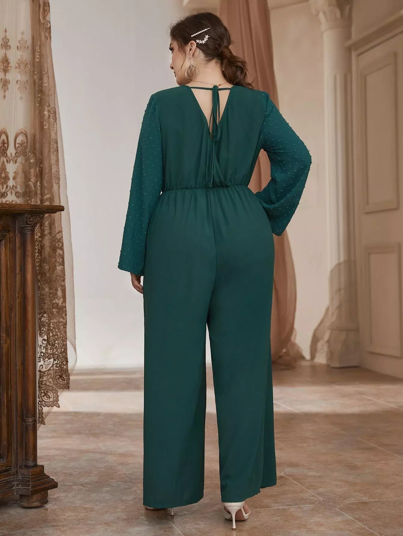 Plus Swiss Dot Tie Back Wide Leg Jumpsuit