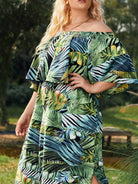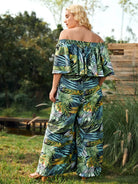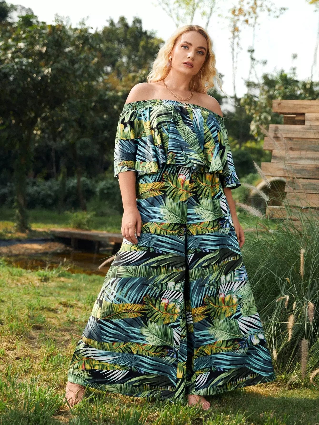 Plus Tropical Print Ruffle Split Bardot Jumpsuit