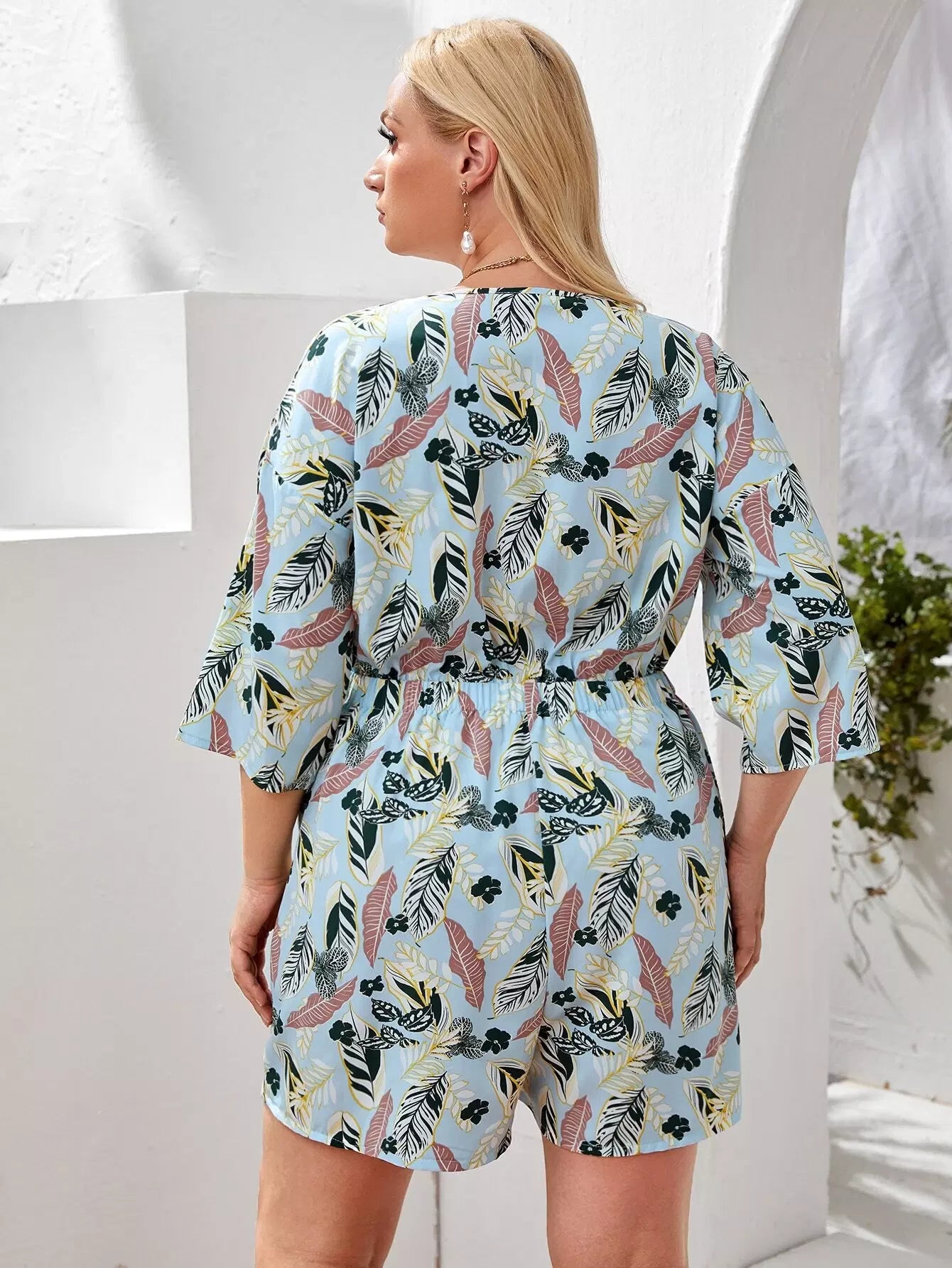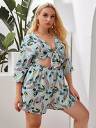 Women - Plus Tropical Print Tie Front Cut Out Romper