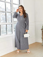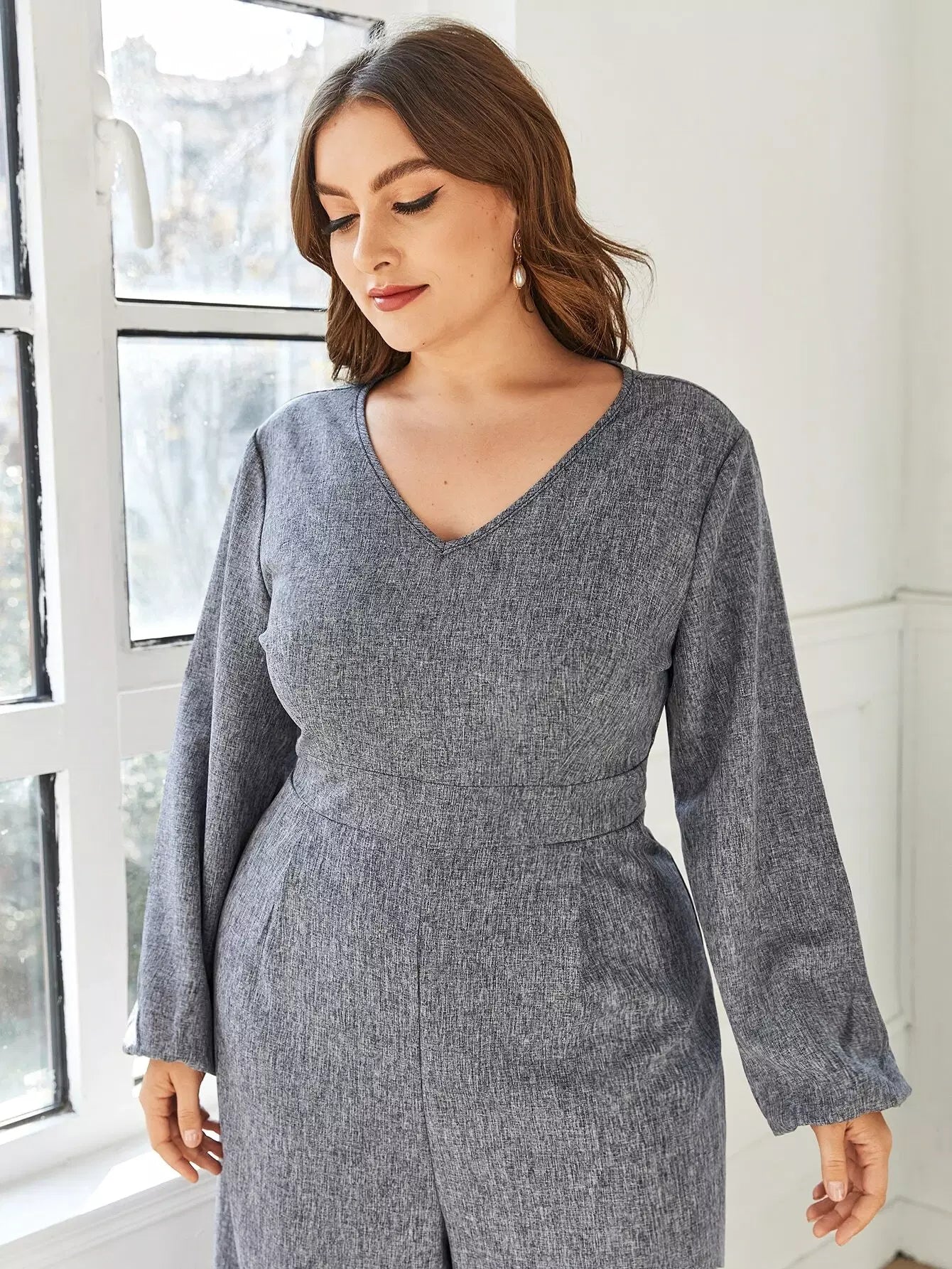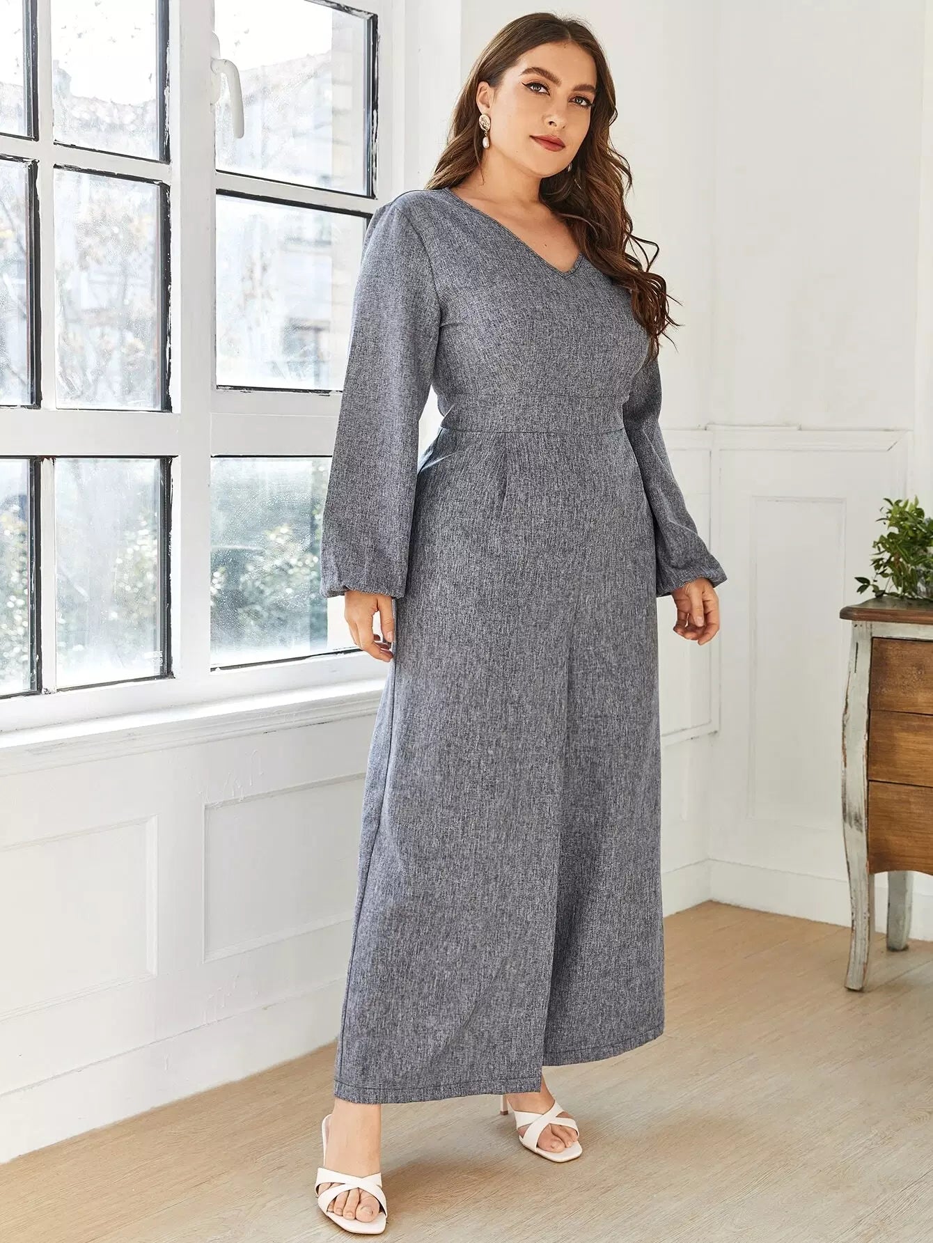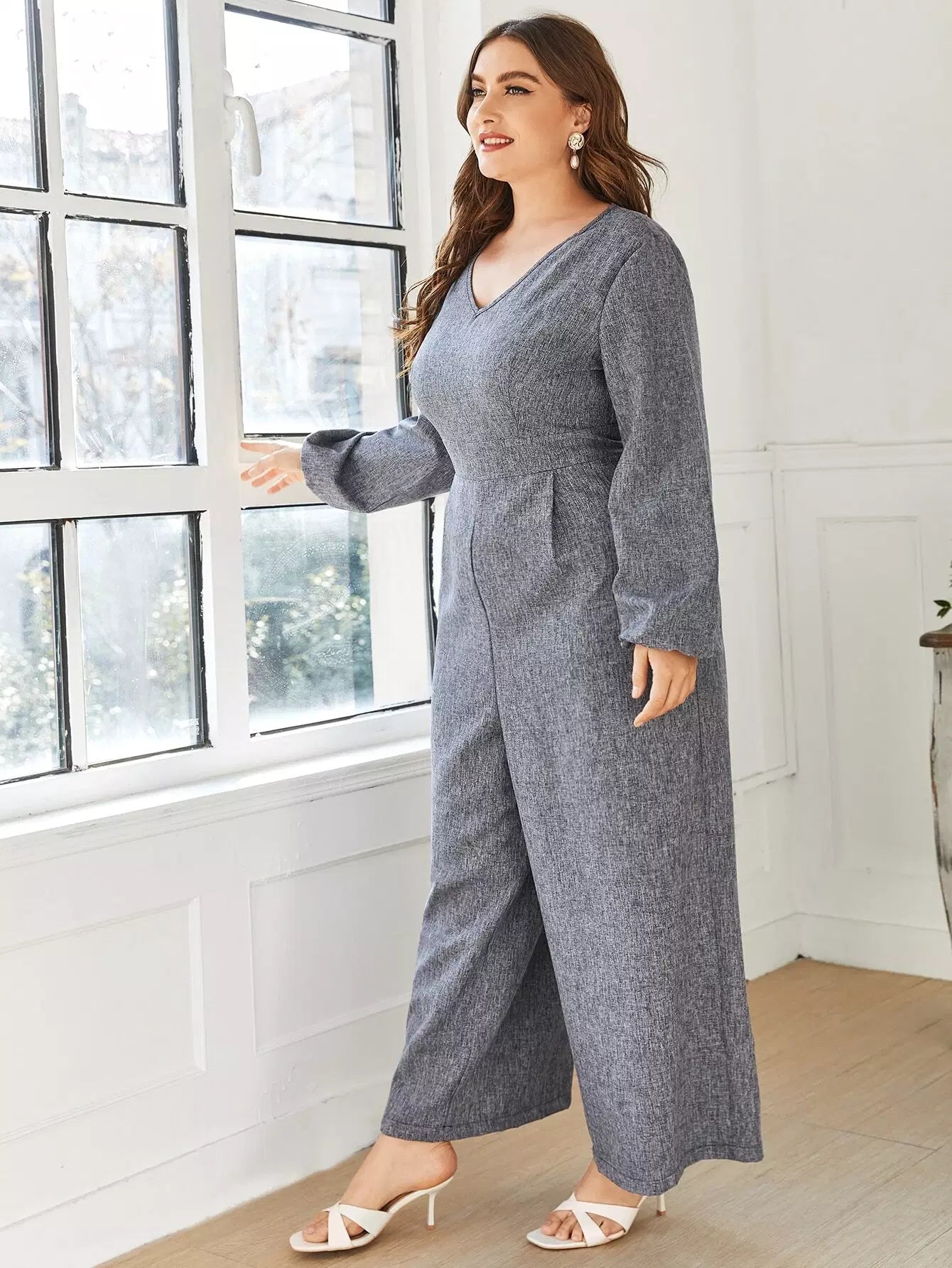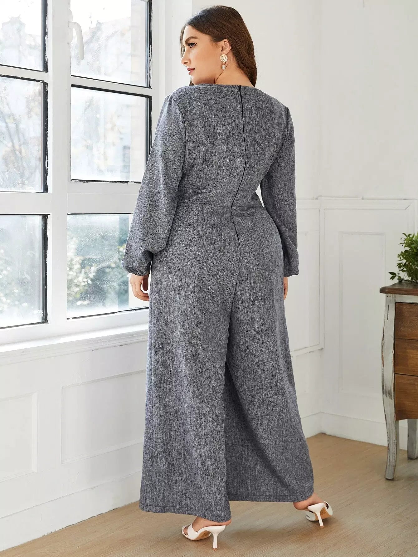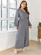 Plus V-neck Bishop Sleeve Culottes Jumpsuit