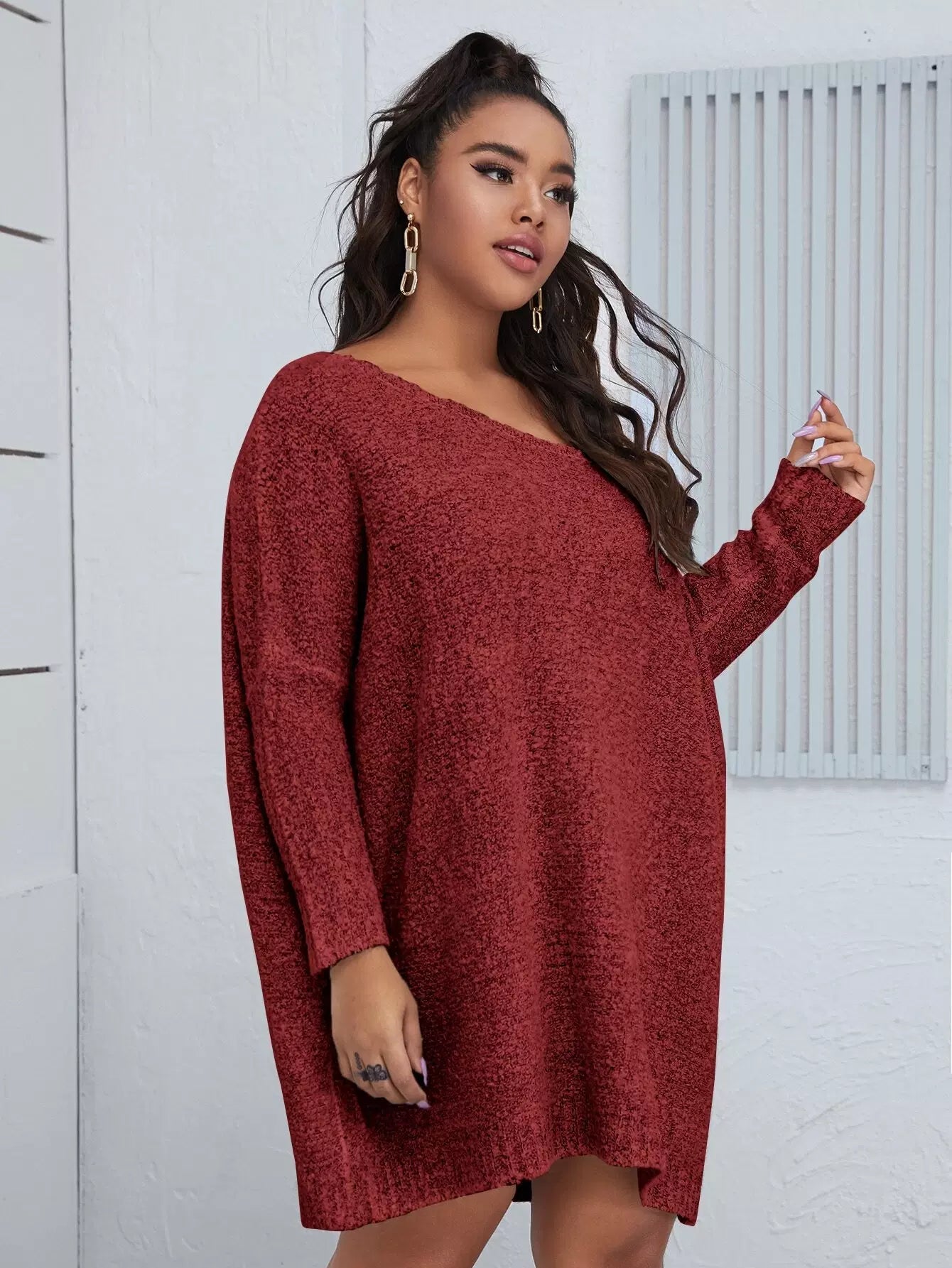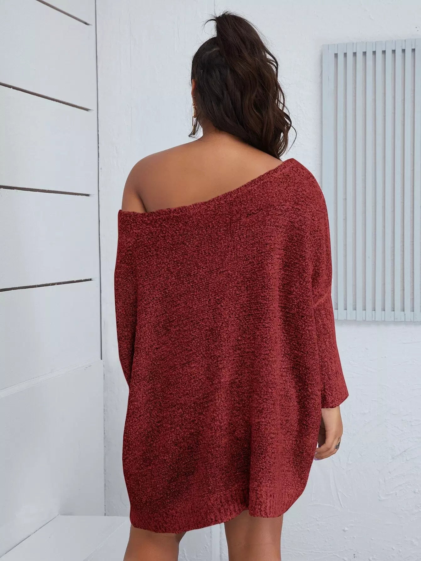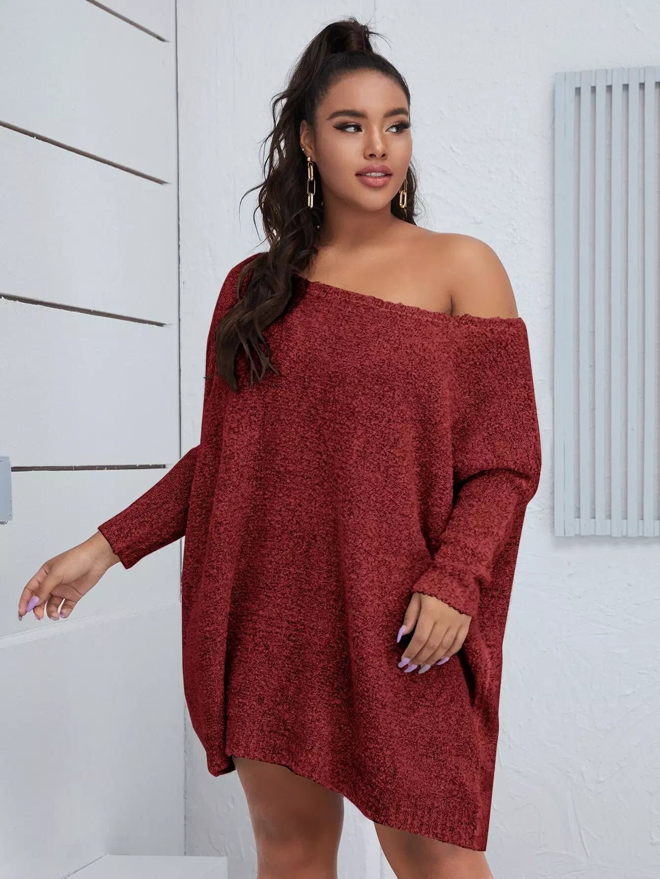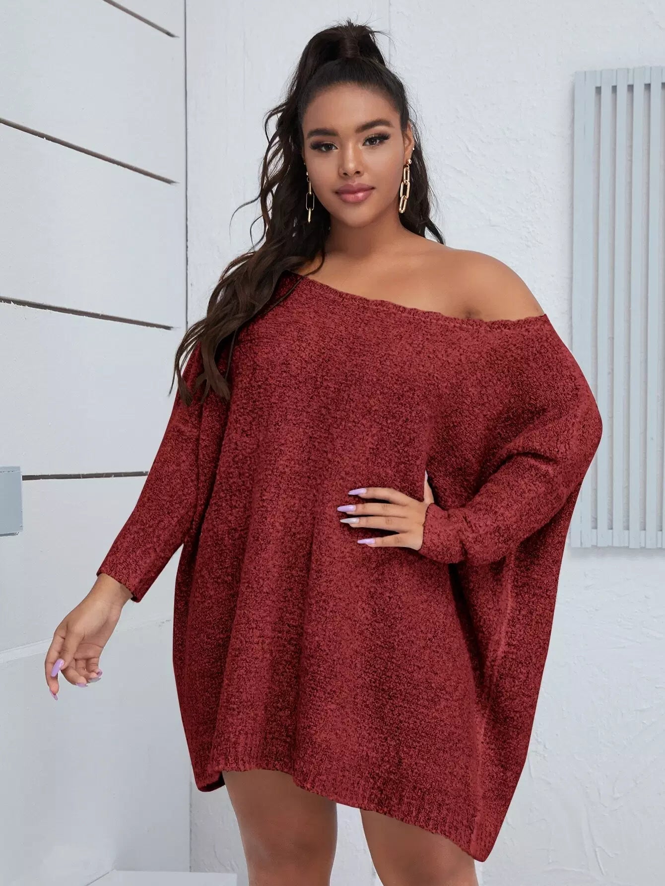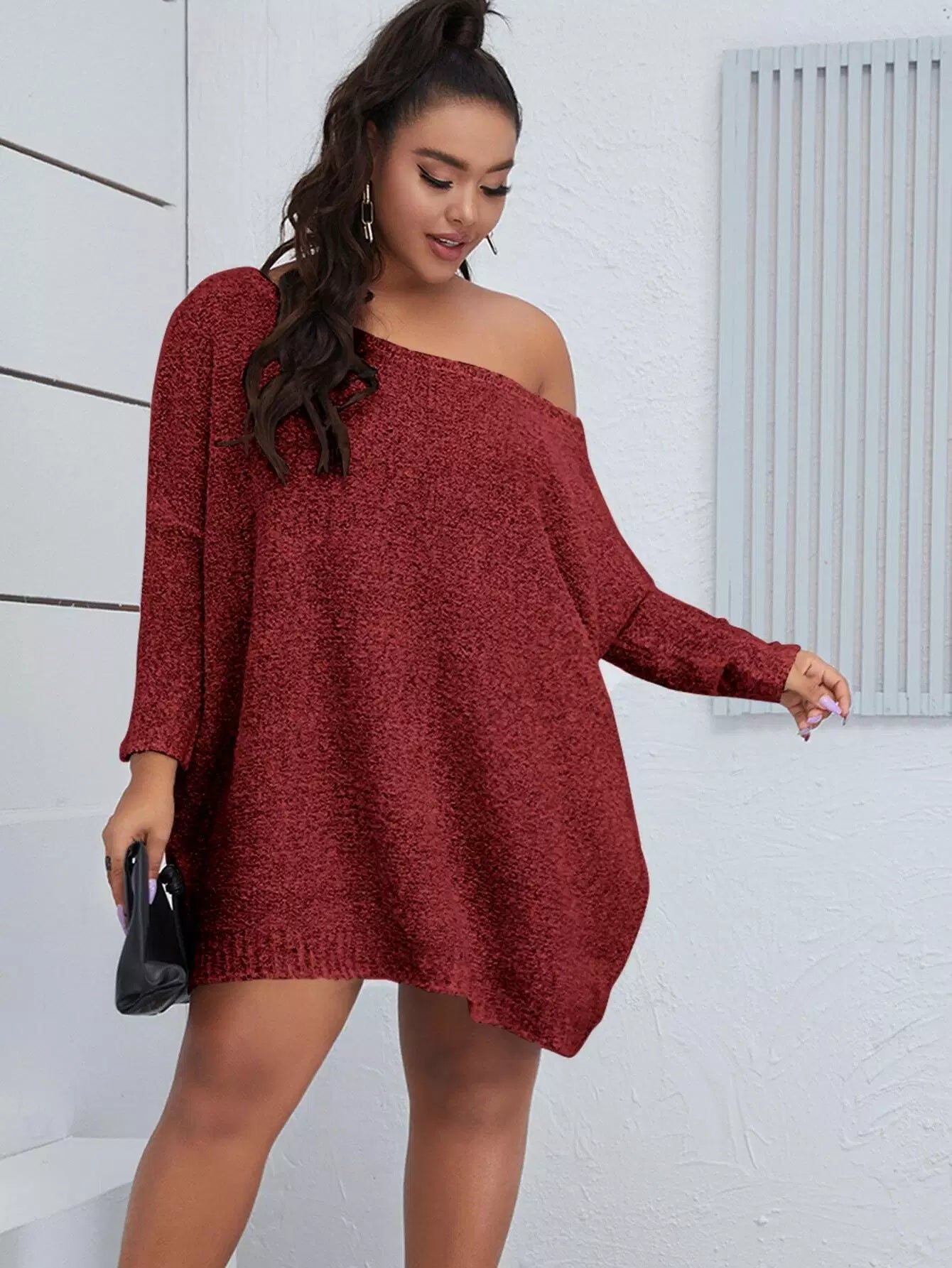Plus Asymmetrical Neck Batwing Sleeve Sweater