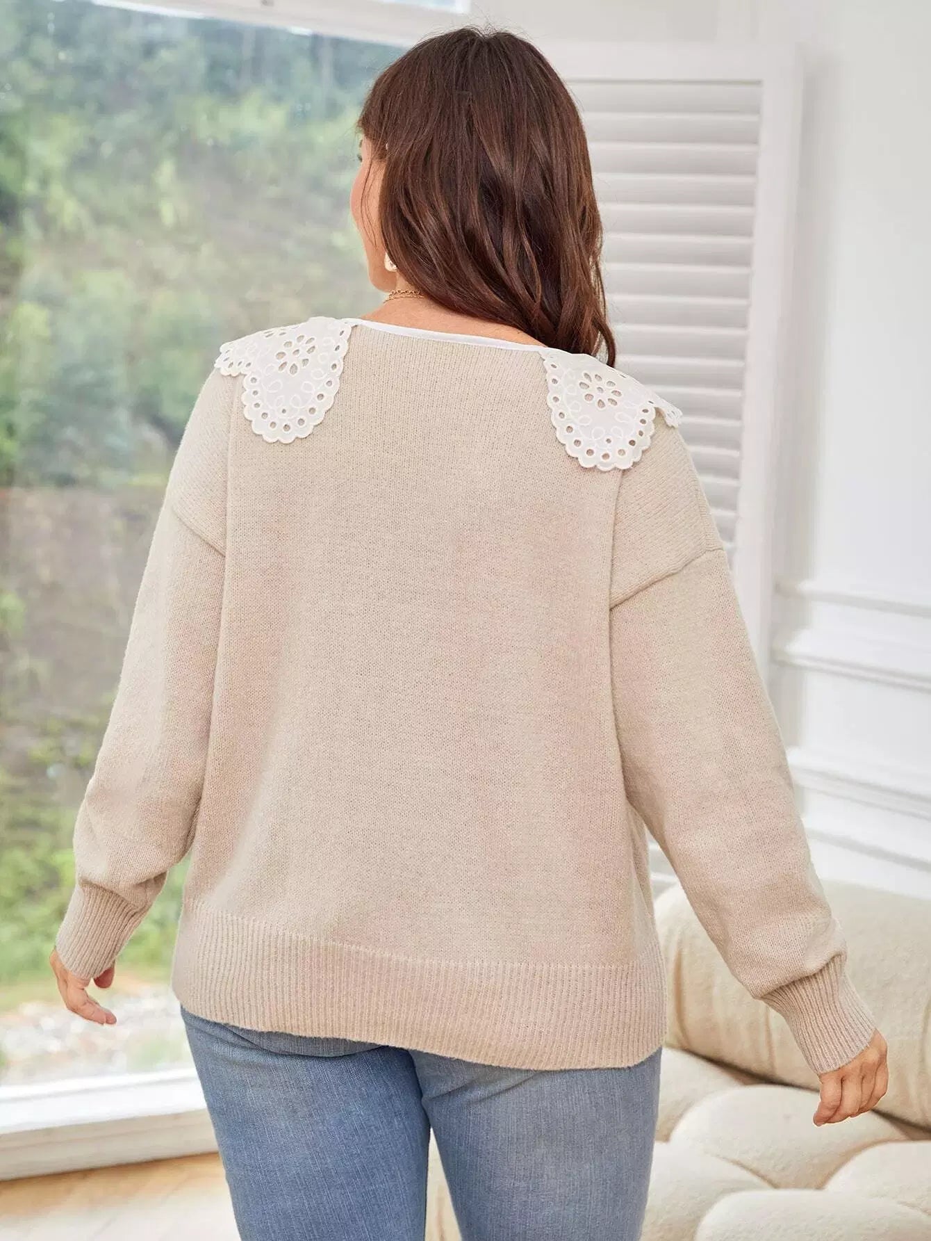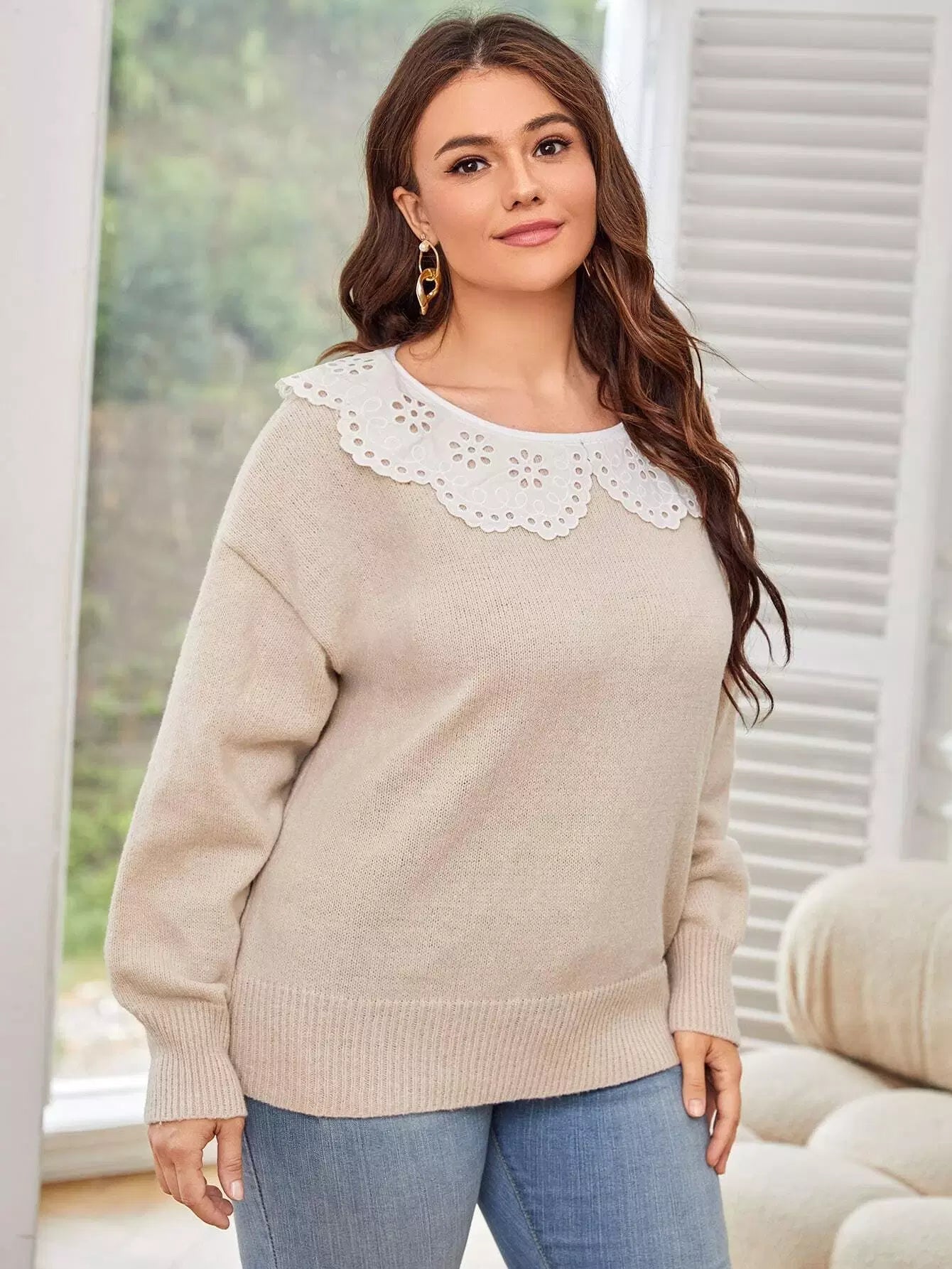 Plus Contrast Schiffy Peter Pan Collar Drop Shoulder Sweater