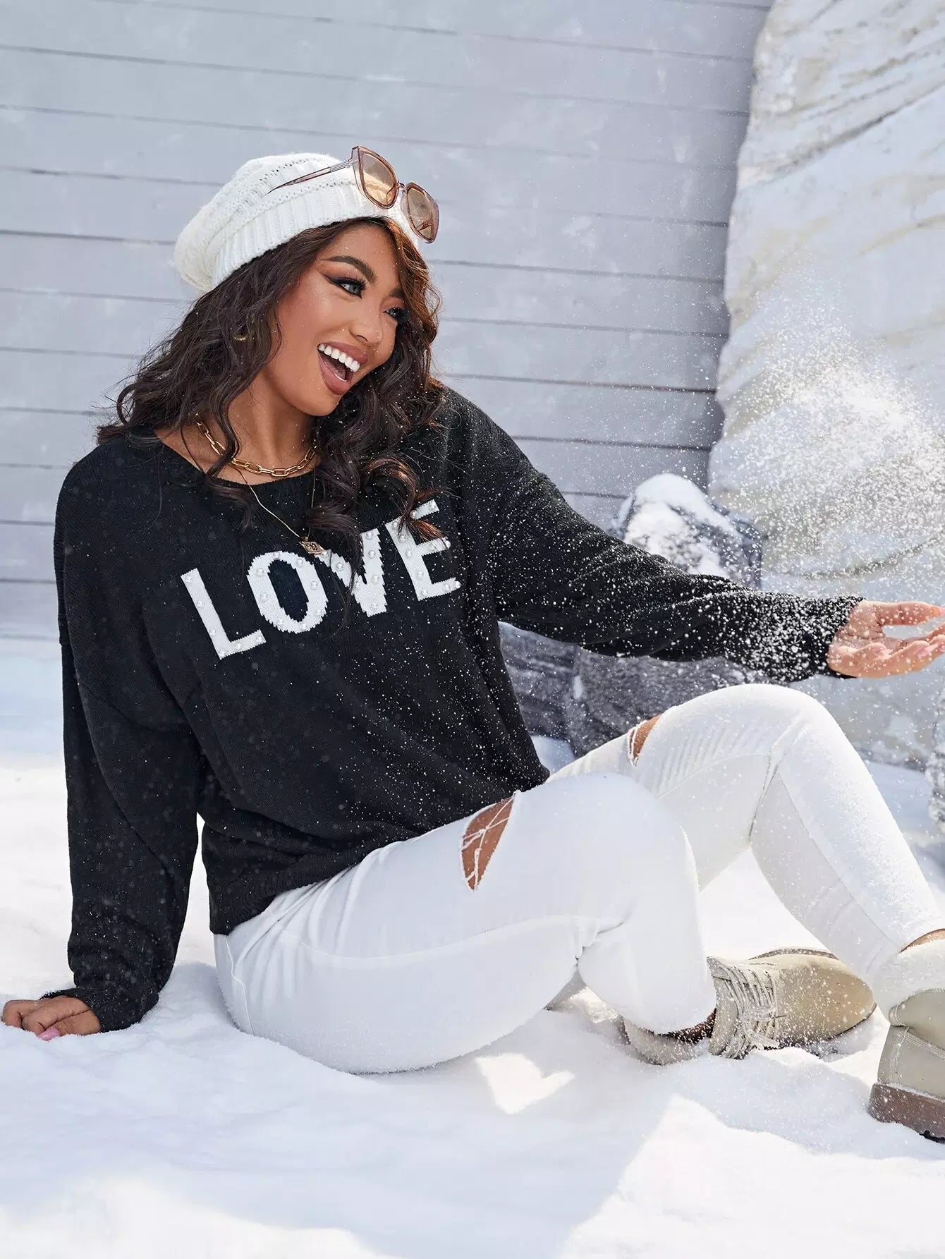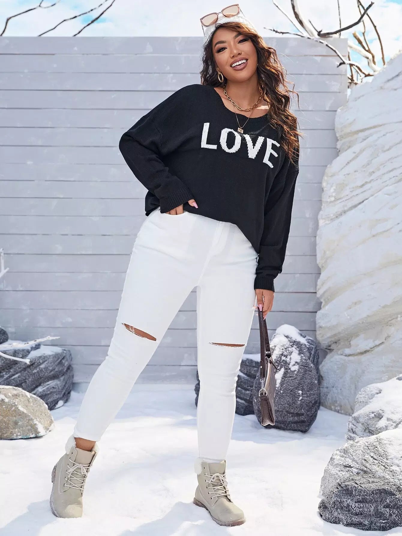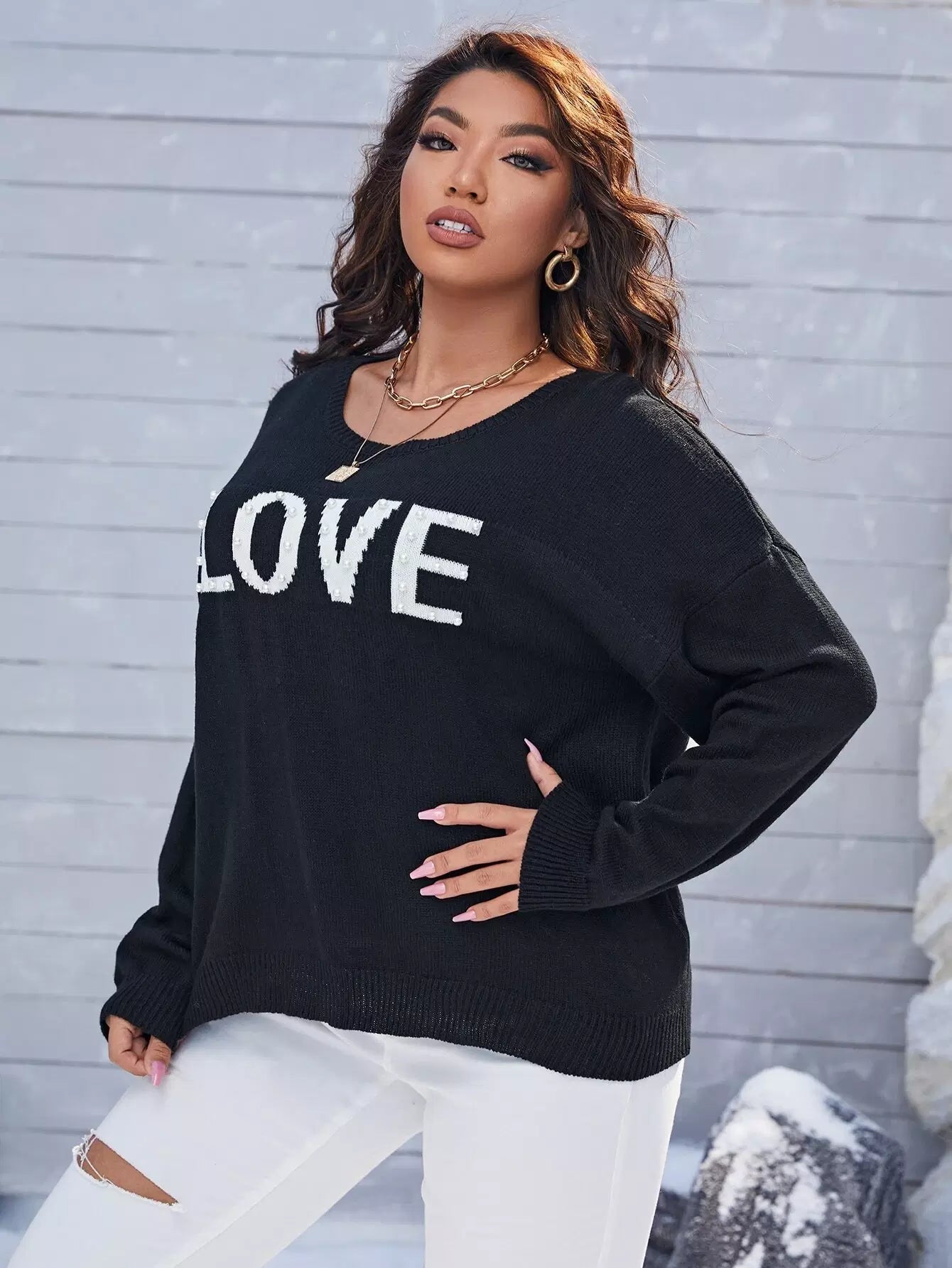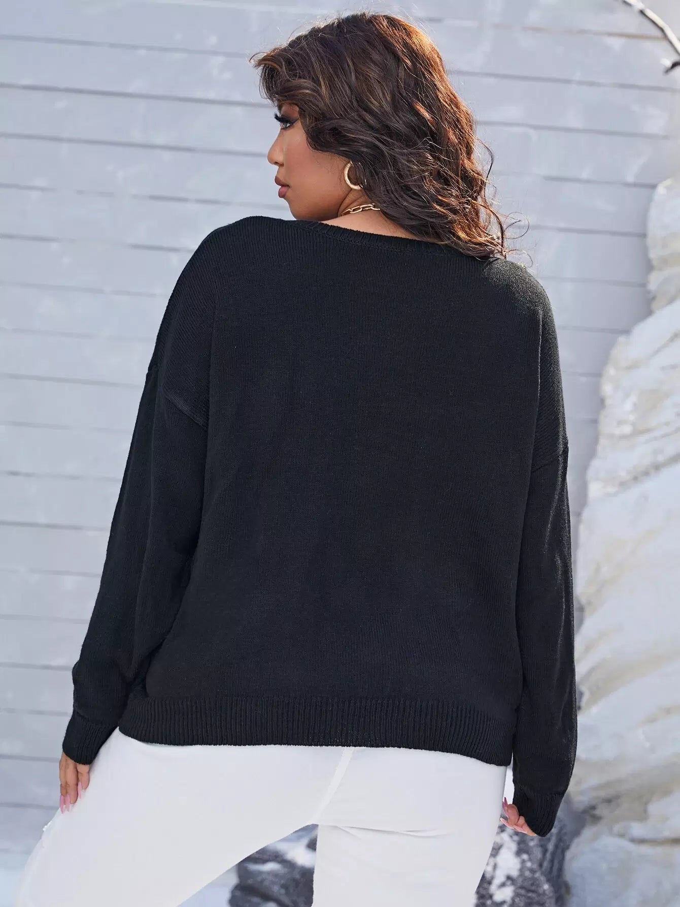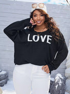 Plus Drop Shoulder Letter Pattern Sweater