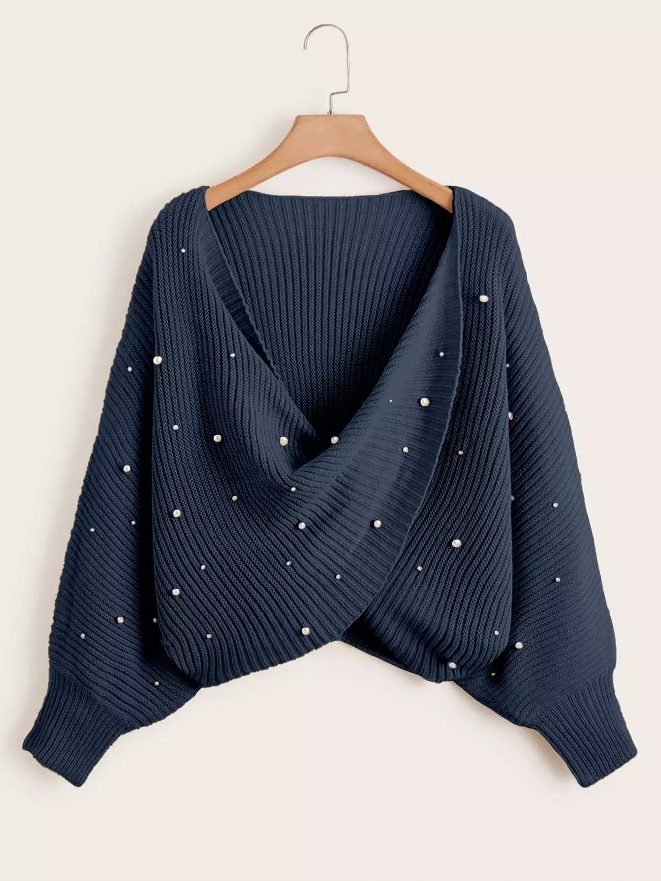 Plus Pearls Beaded Twist Batwing Sleeve Sweater