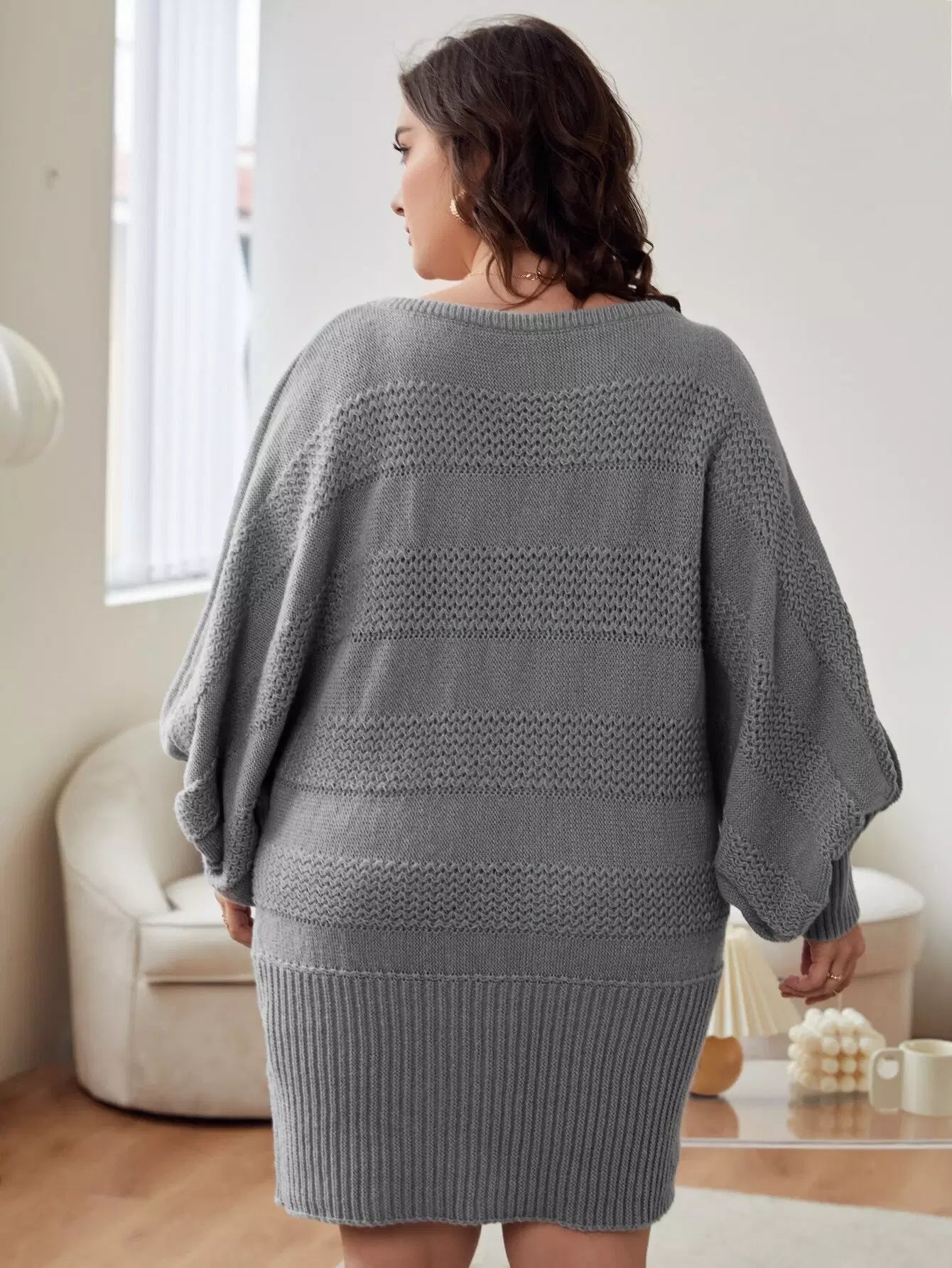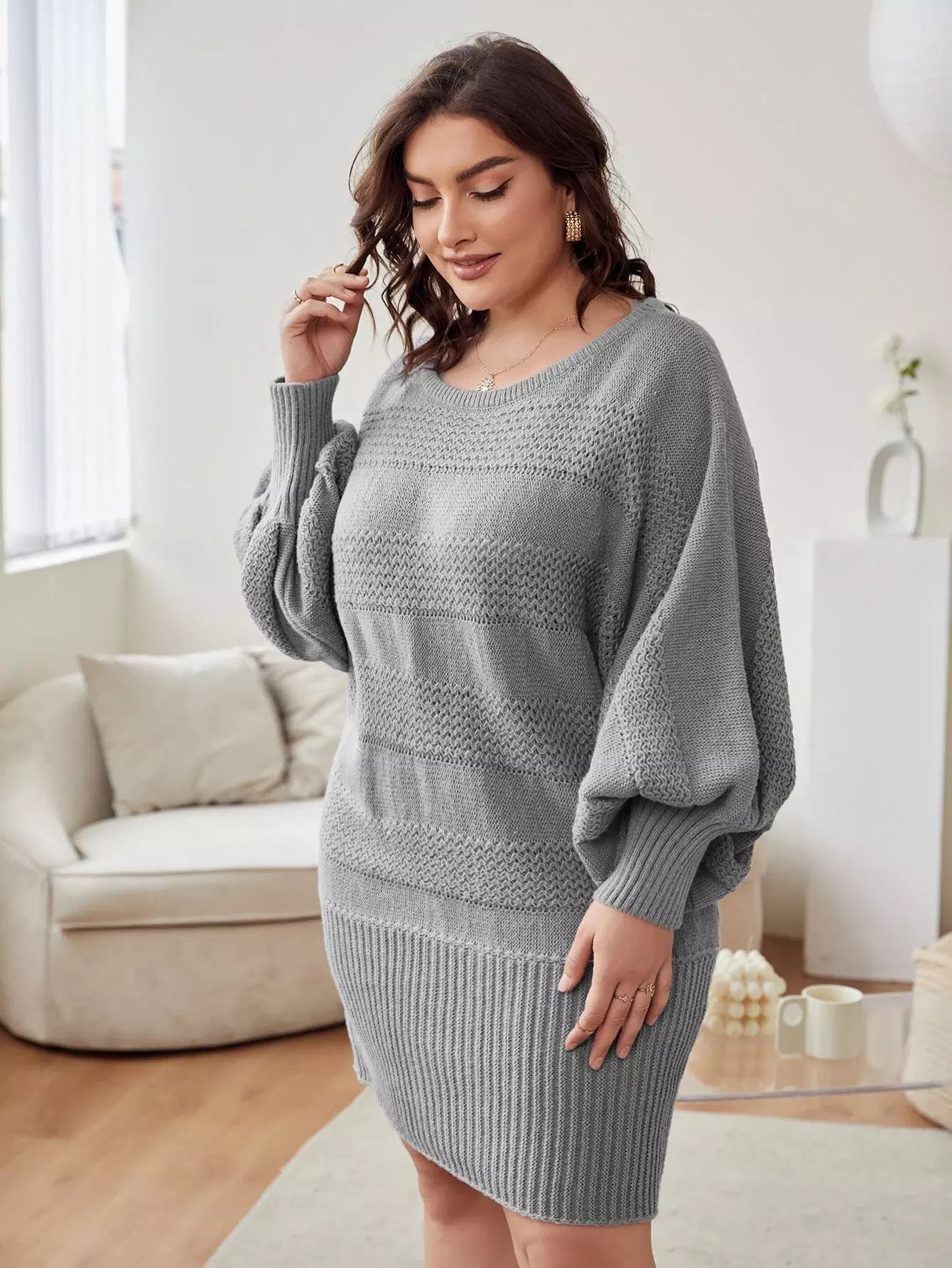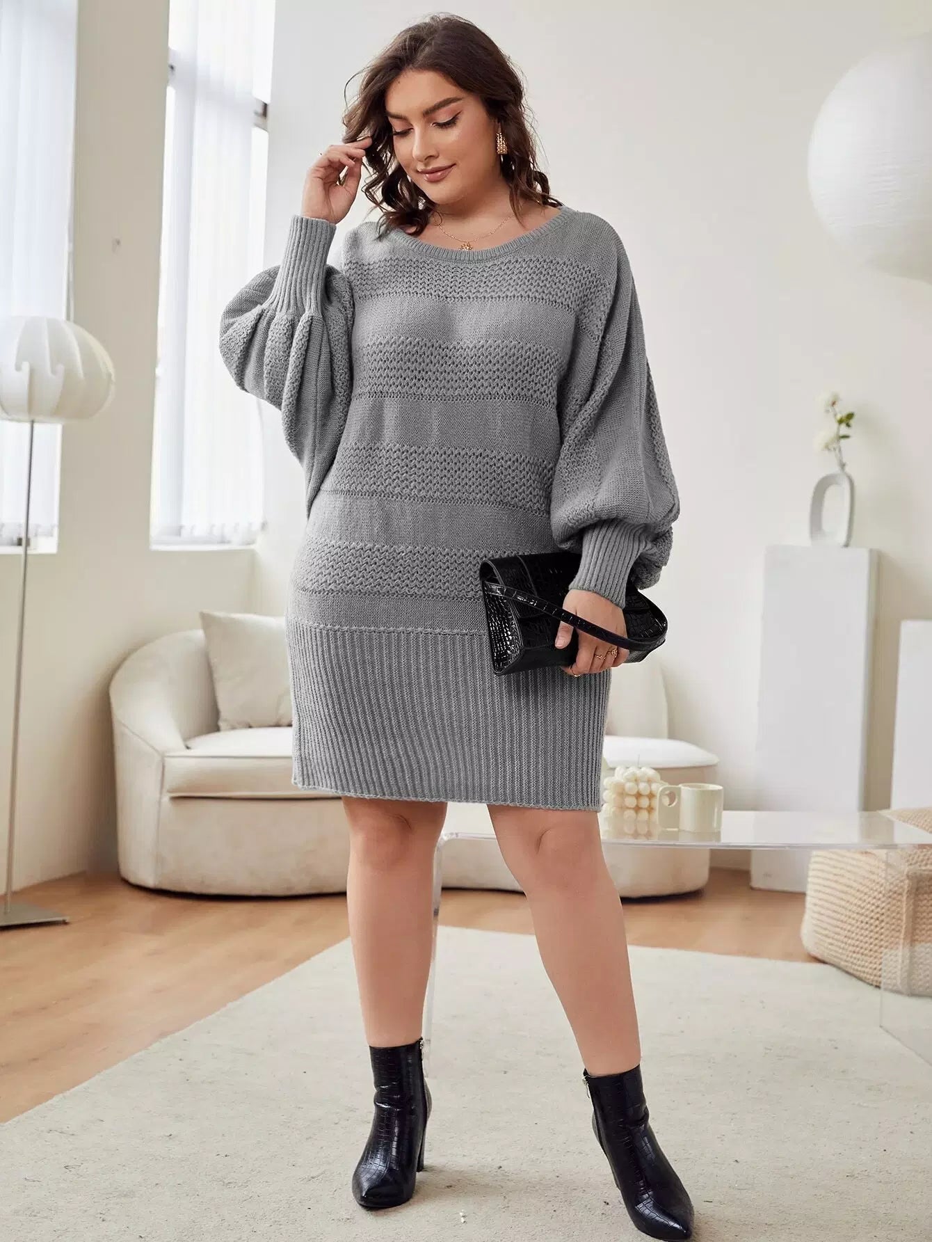 Women - Plus Solid Bishop Sleeve Sweater Dress