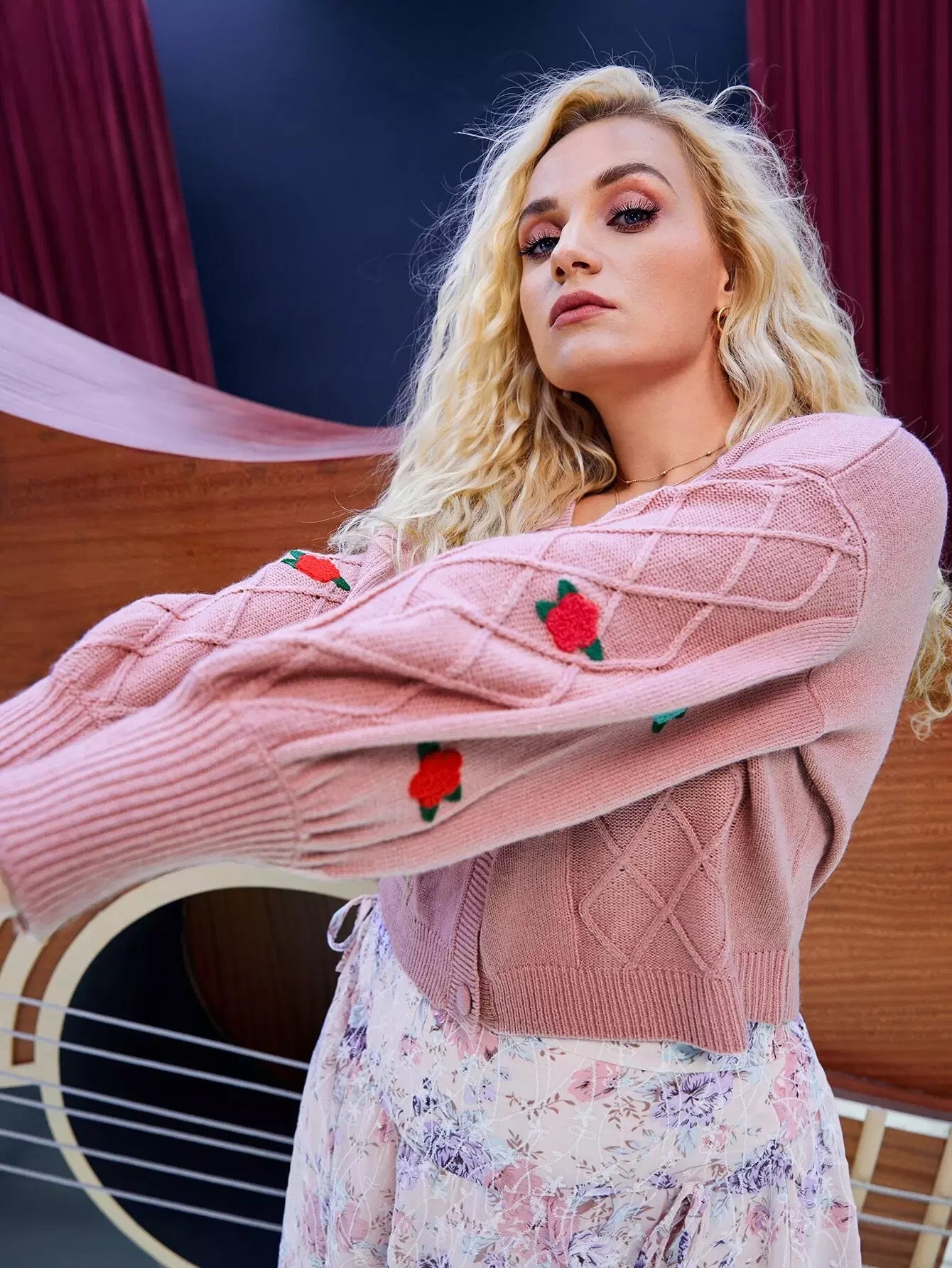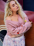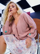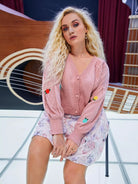 Plus Floral Pattern Cable Knit Button Front Cardigan