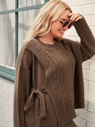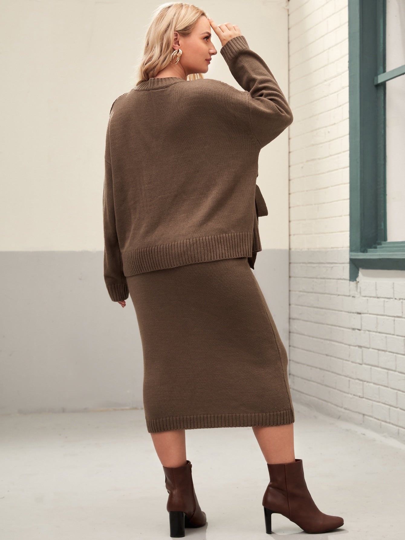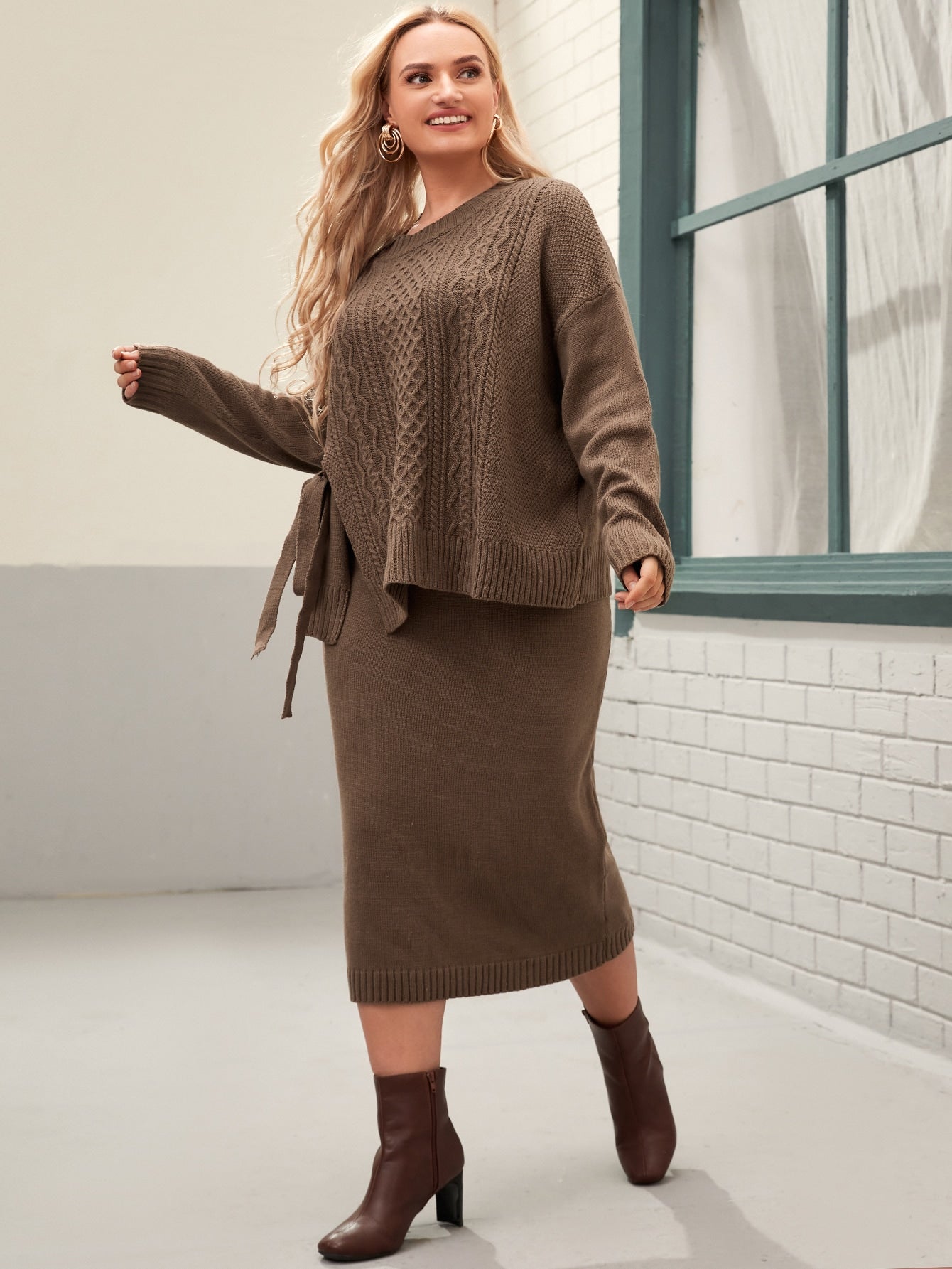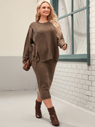 Plus Drop Shoulder Knot Side Sweater & Knit Skirt