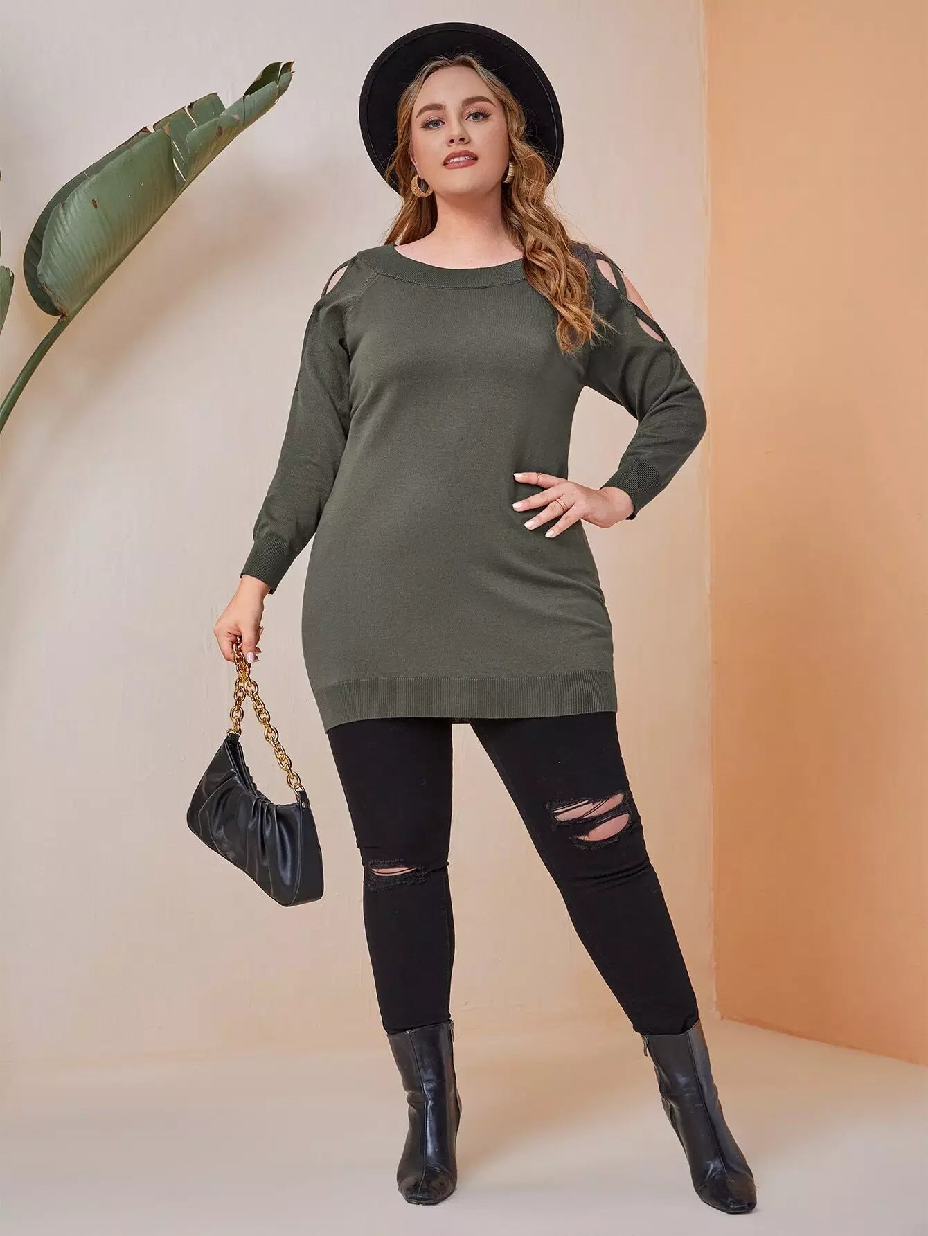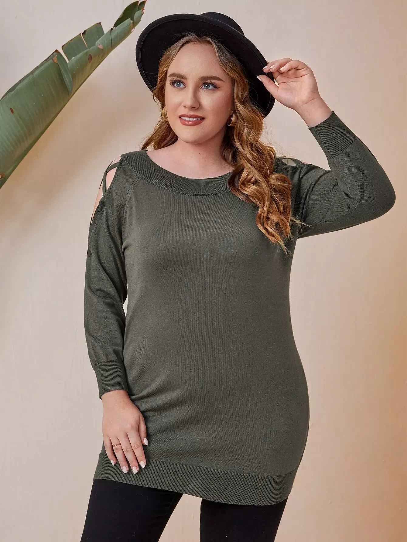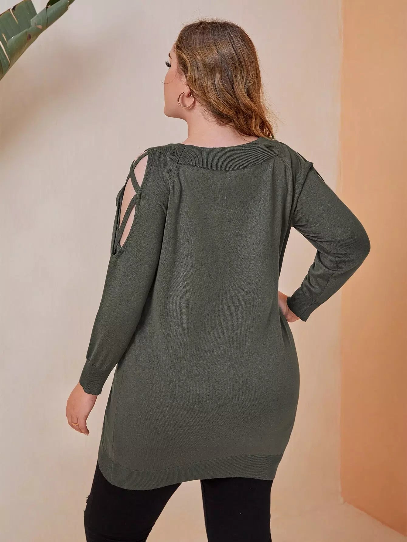 Plus Solid Cutout Criss Cross Raglan Sleeve Sweater