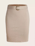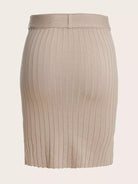 Plus Solid Ribbed Knit Skirt Without Belt