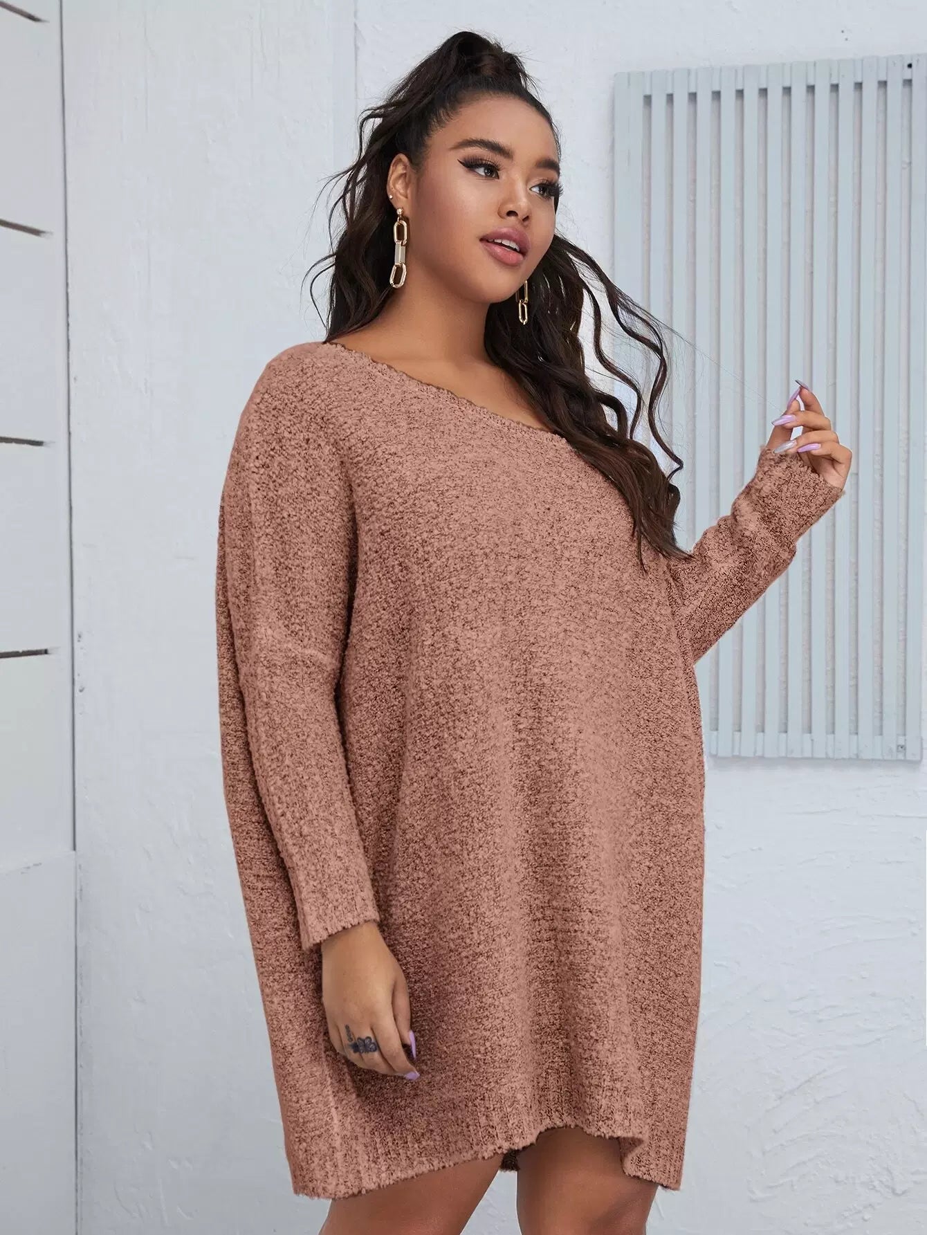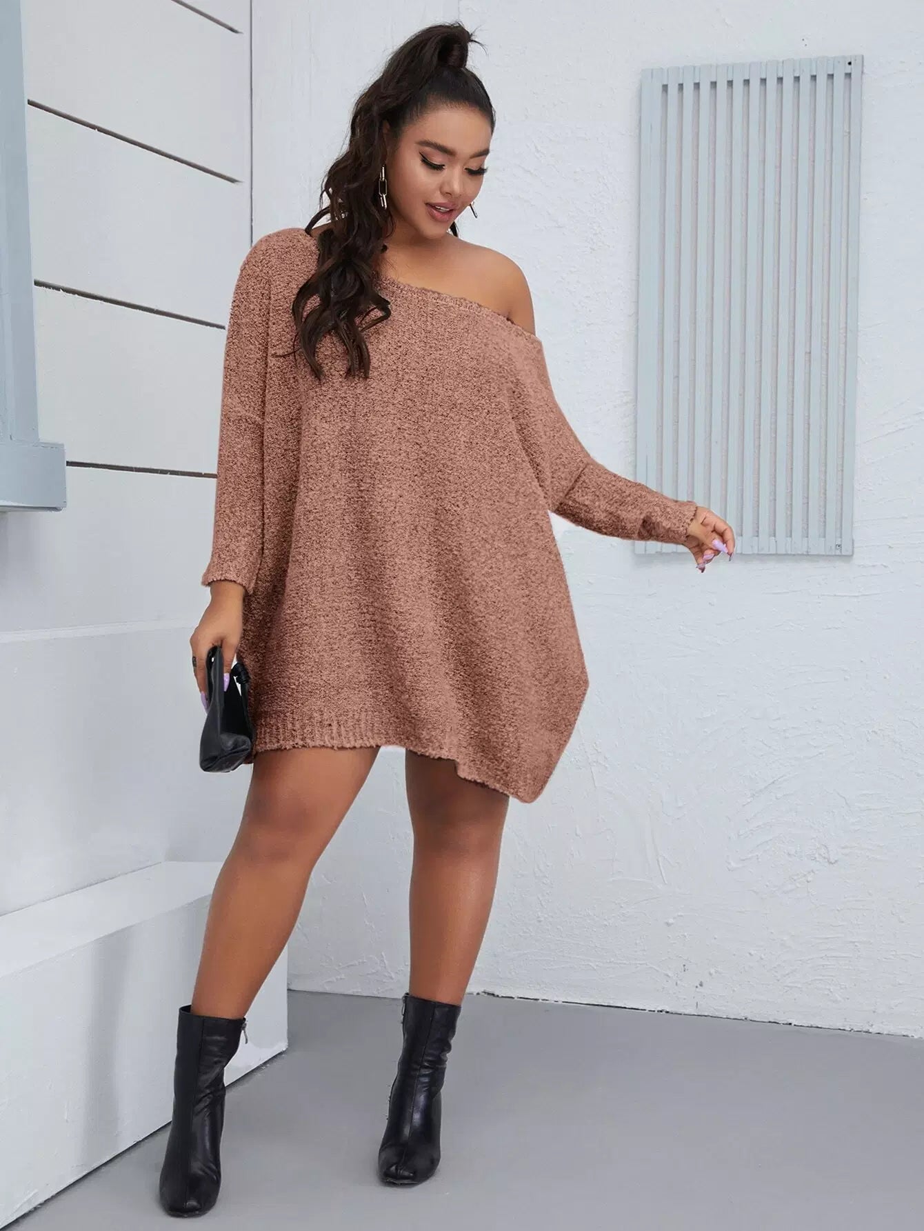 Plus Asymmetrical Neck Batwing Sleeve Sweater