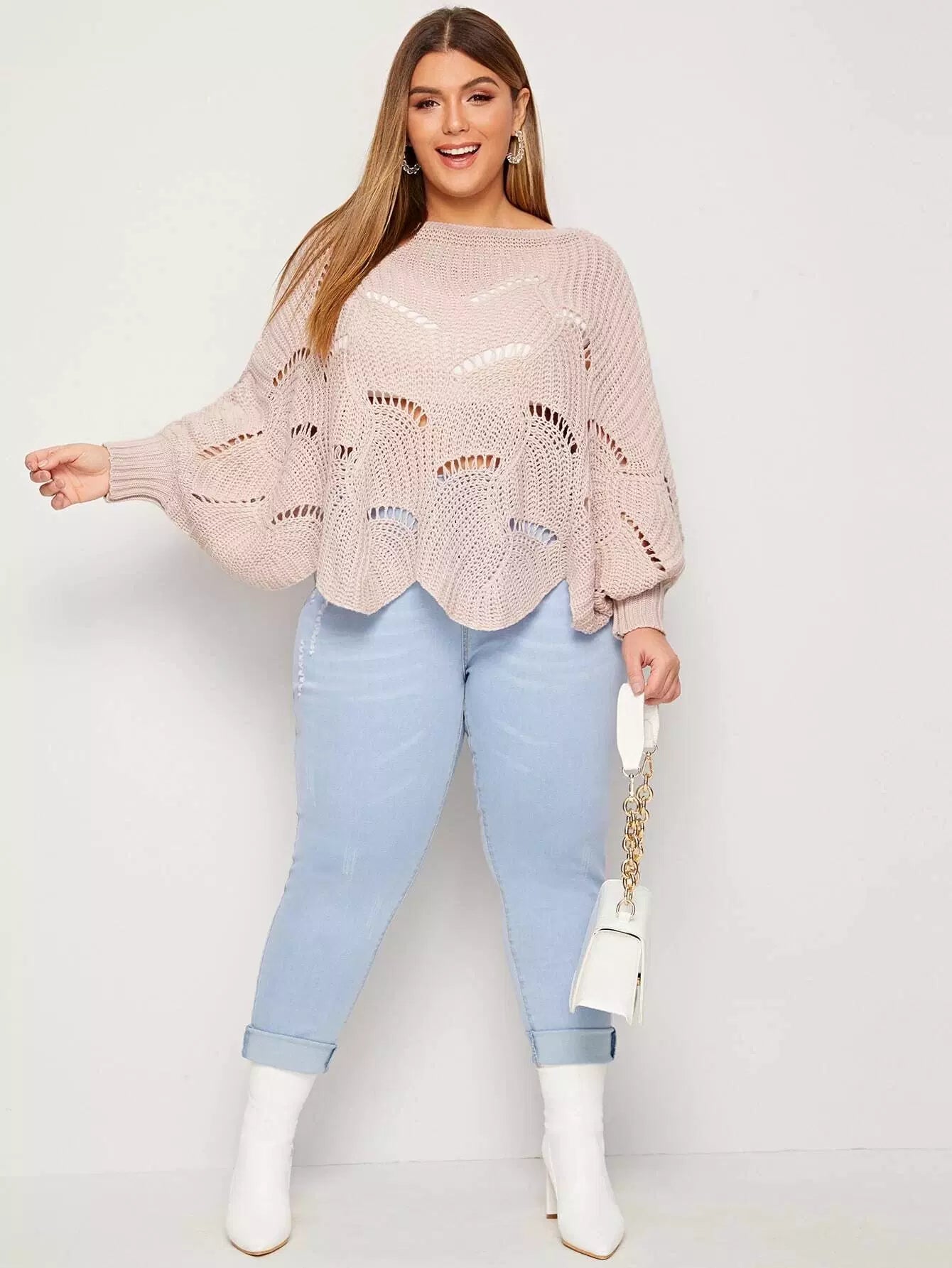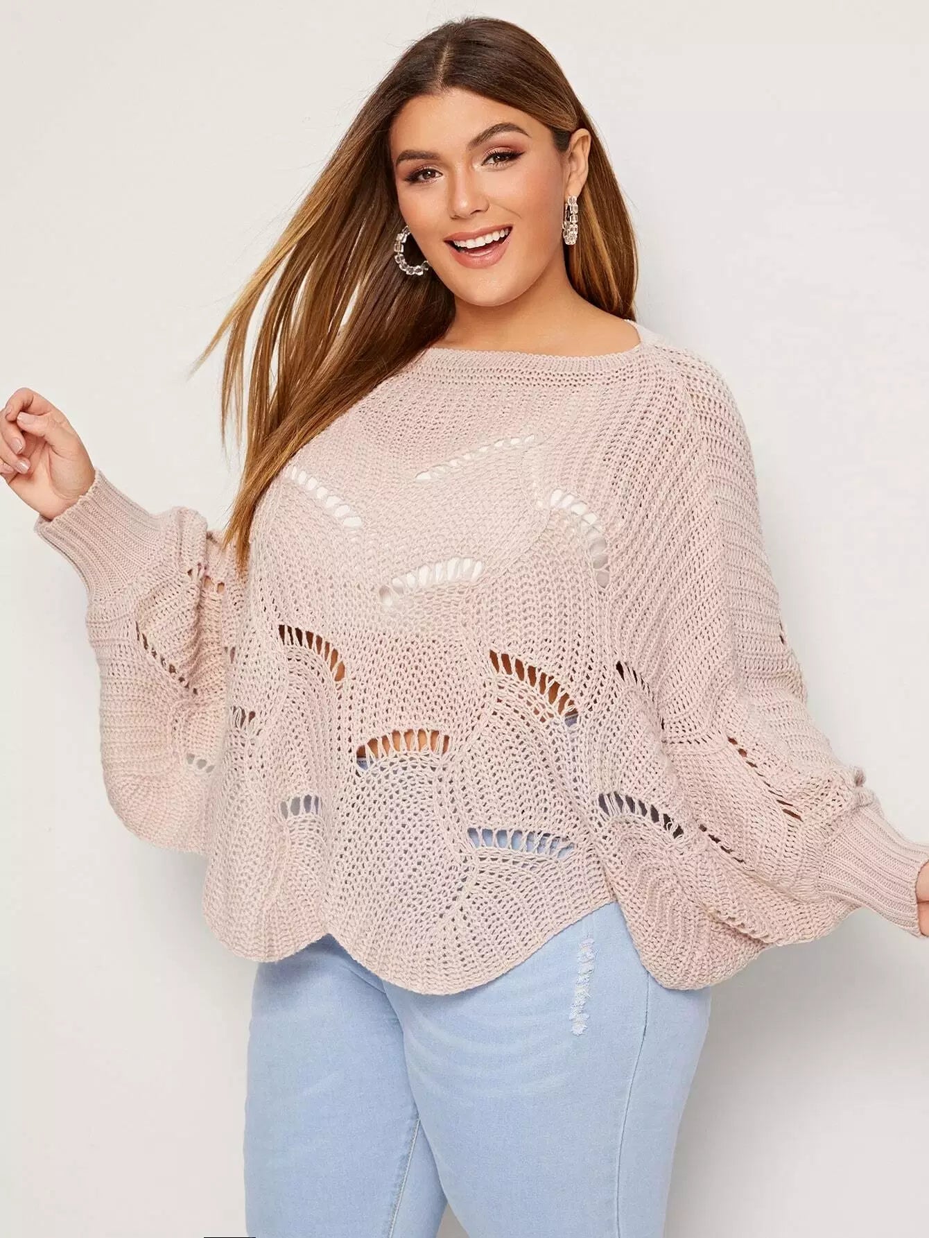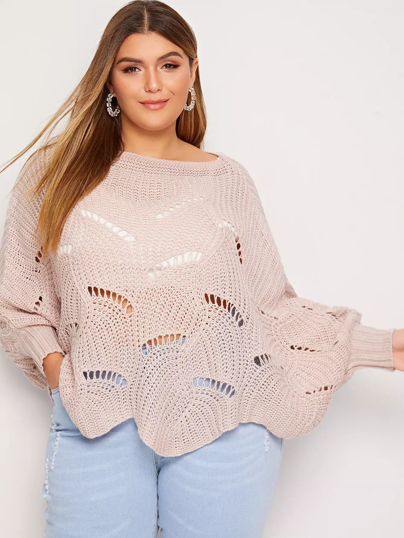 Plus Batwing Sleeve Cut Out Sweater