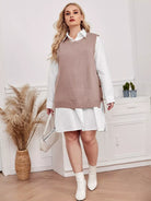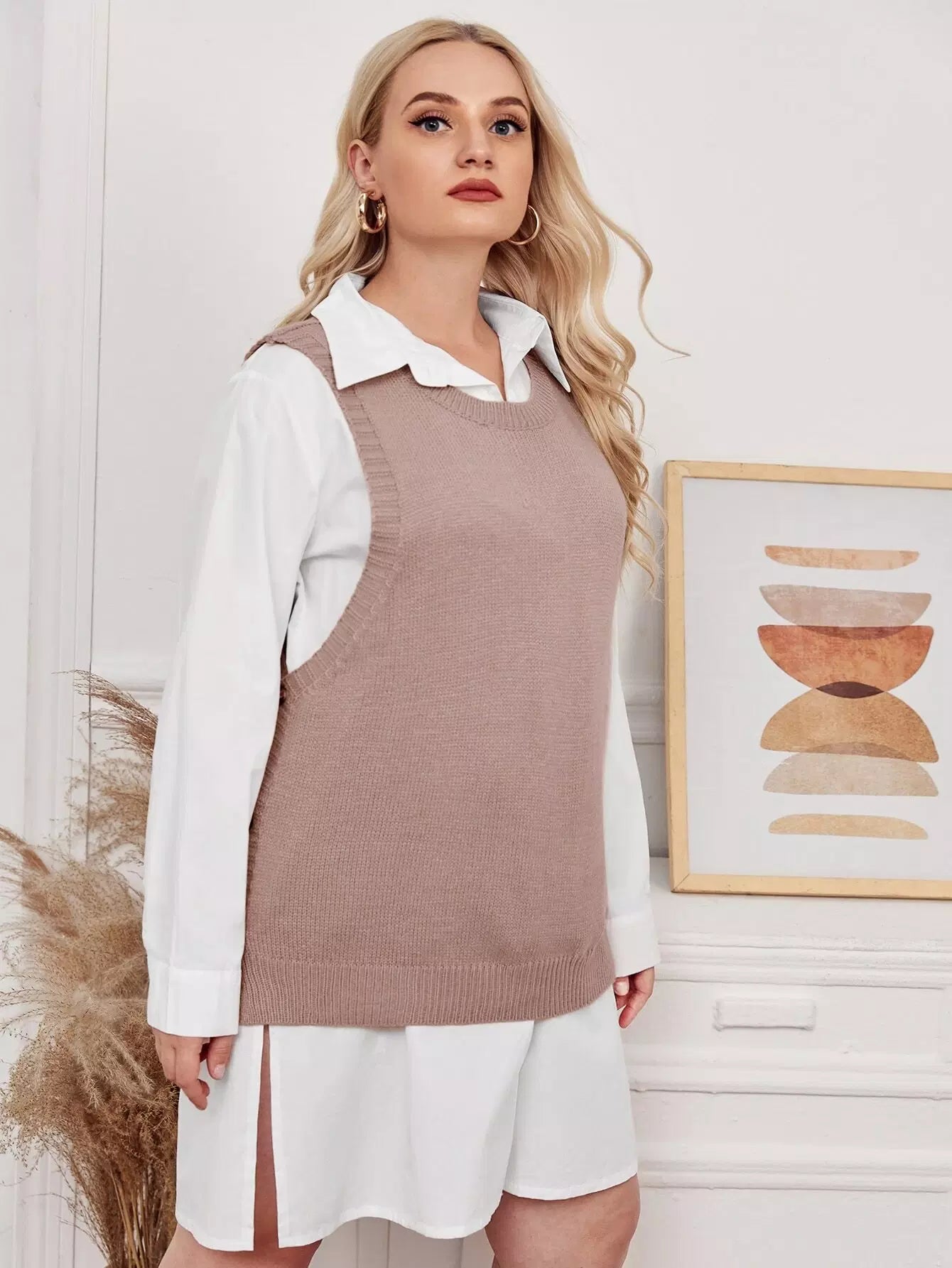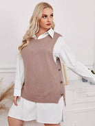 Plus Button Side Split Hem Sweater Vest Without Blouse
