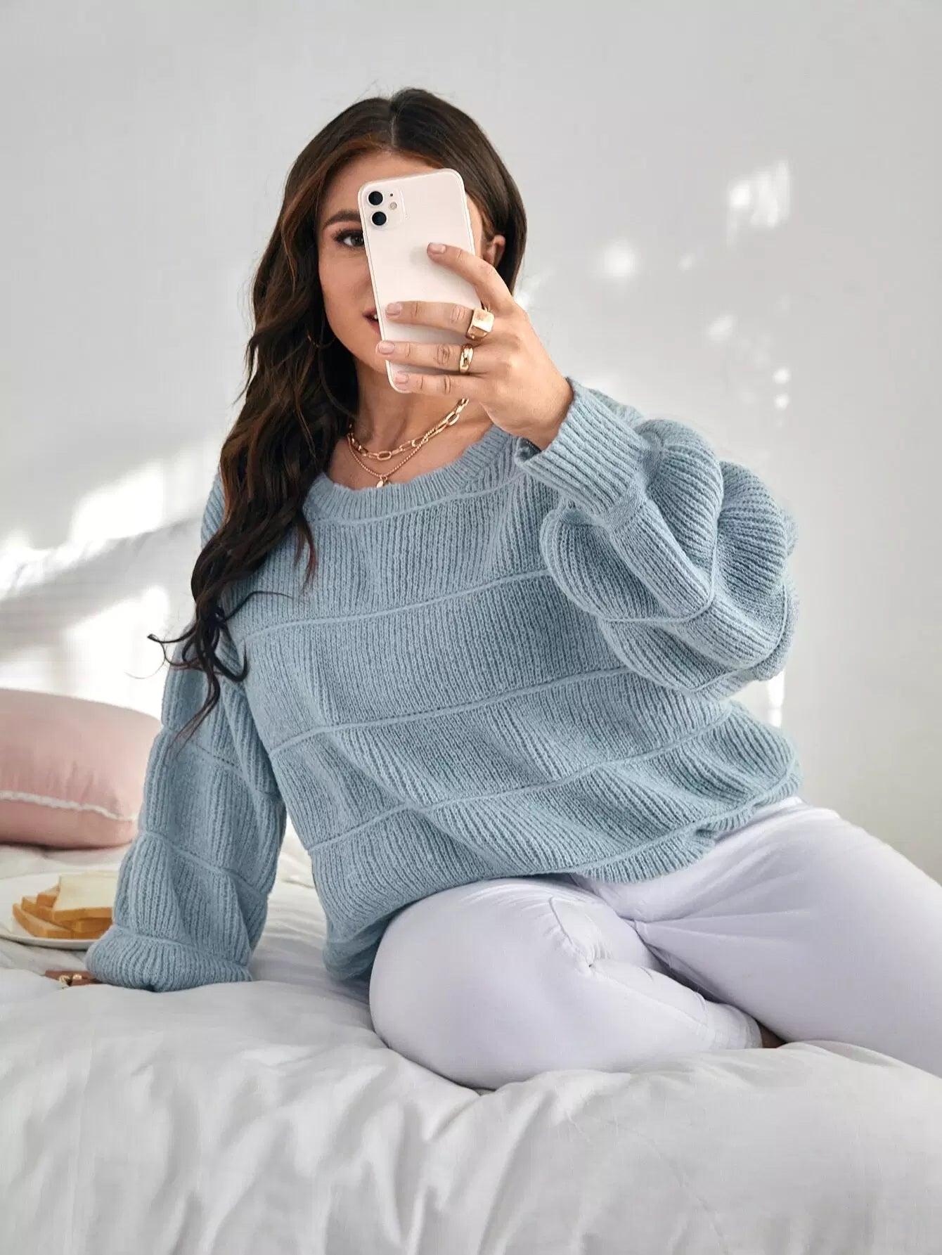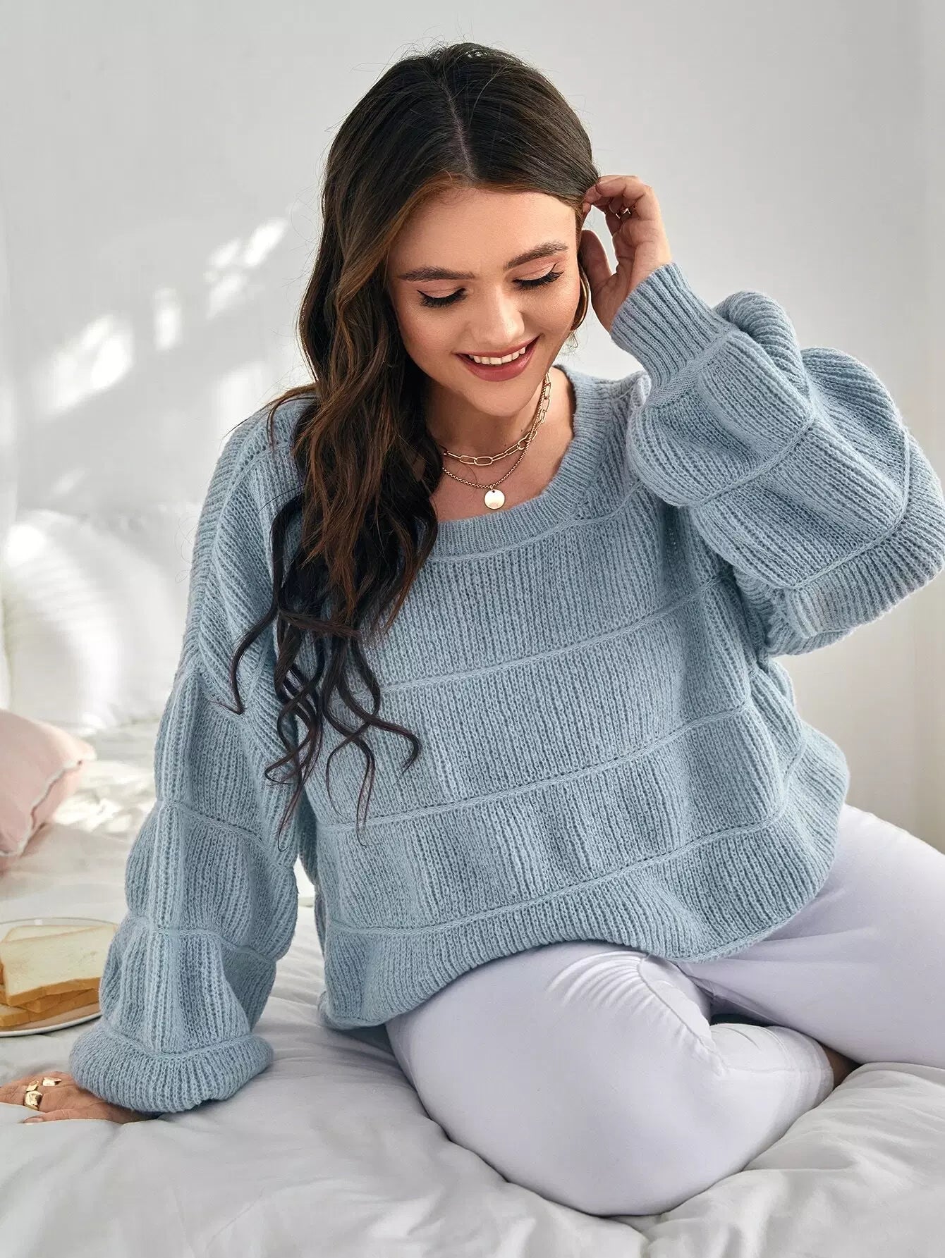 Plus Drop Shoulder Lantern Sleeve Sweater