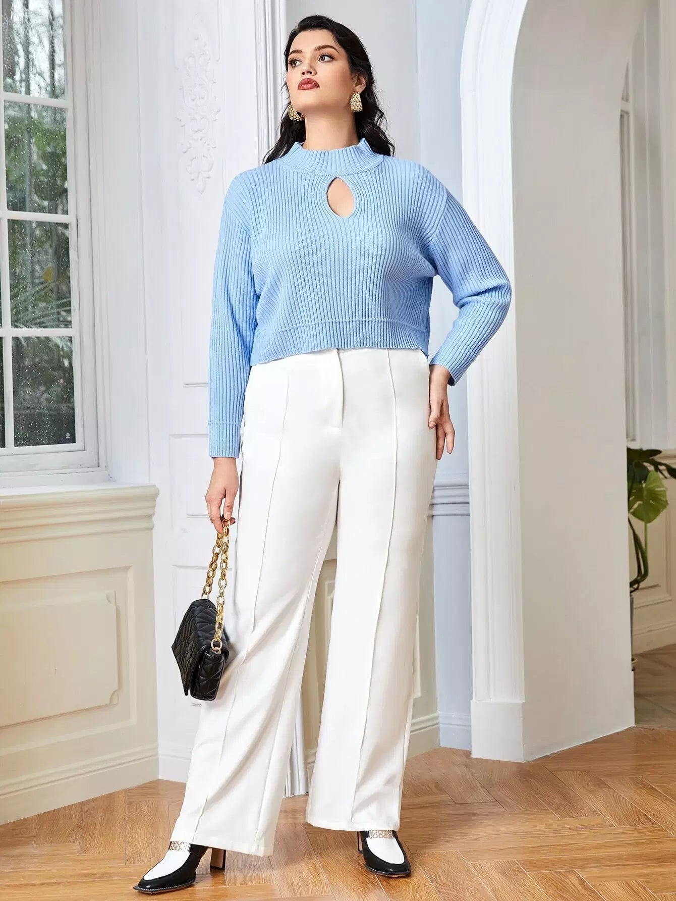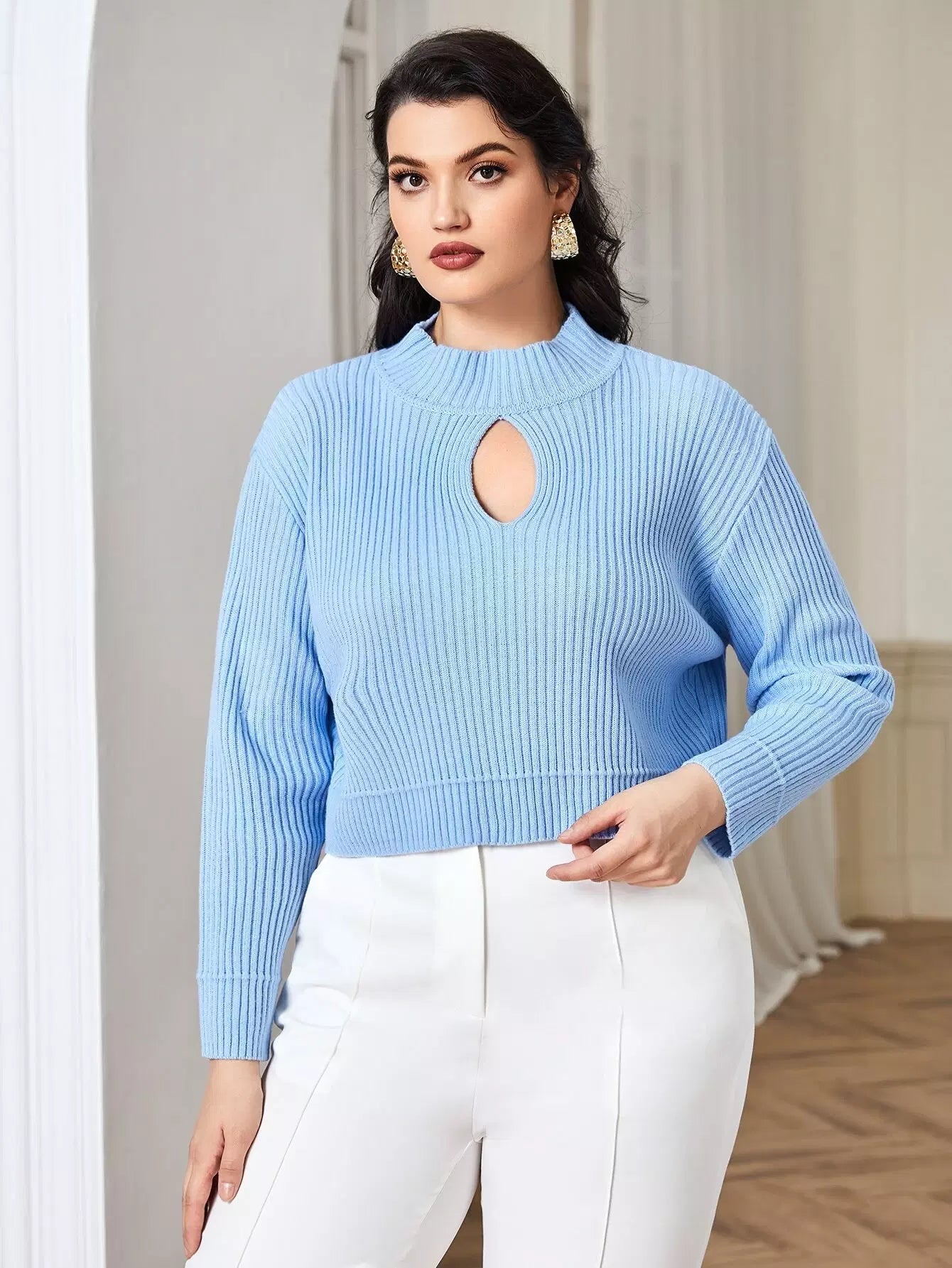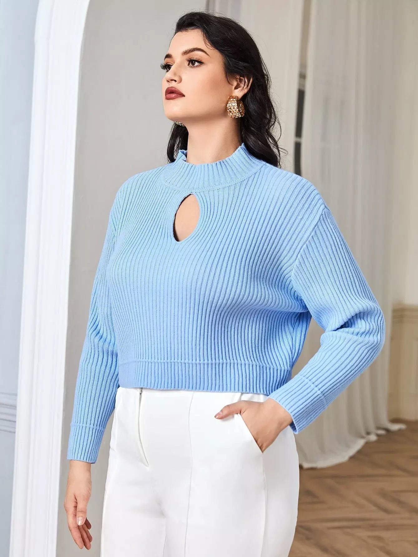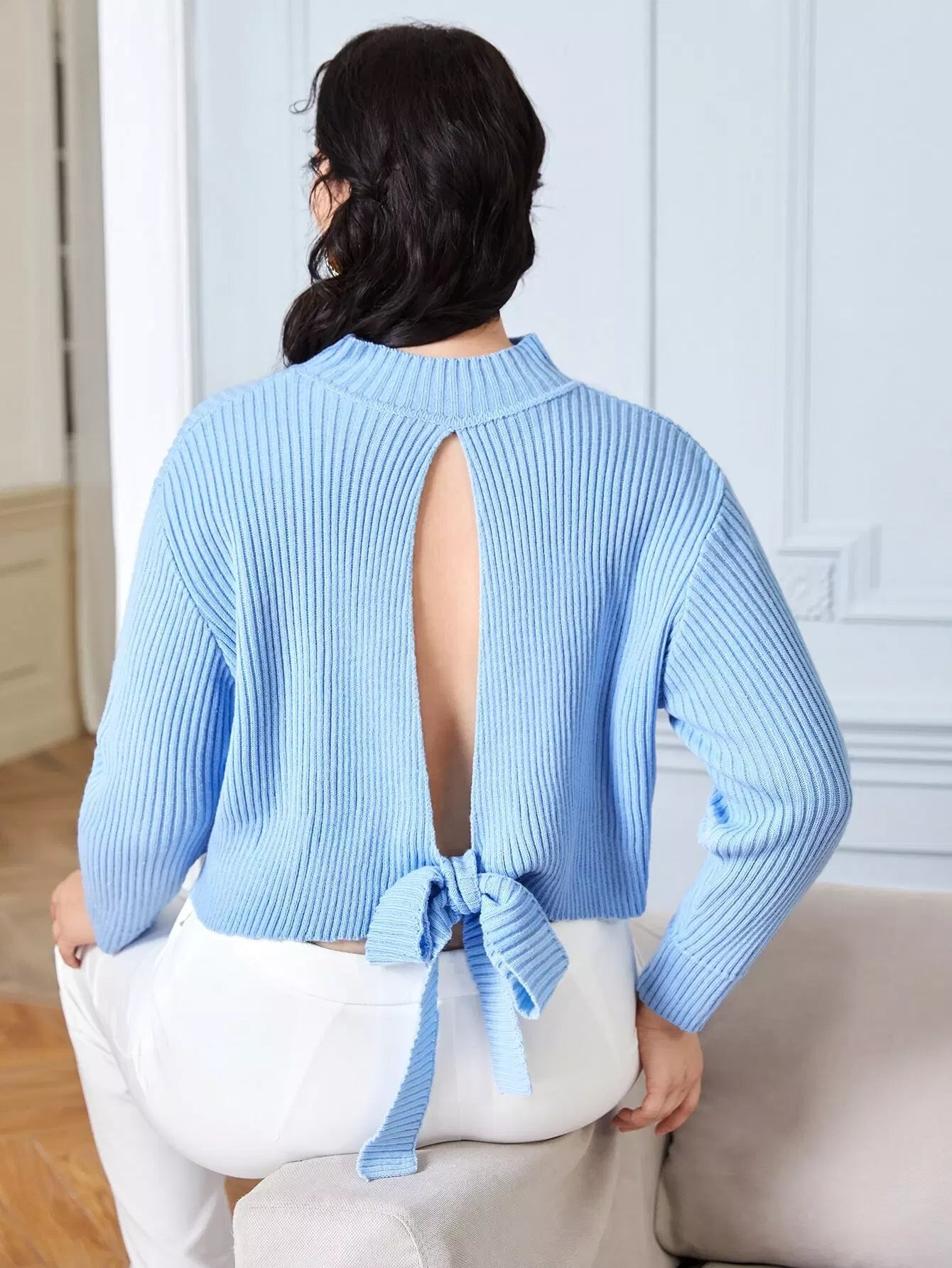 Plus Drop Shoulder Tie Back Cut-out Sweater