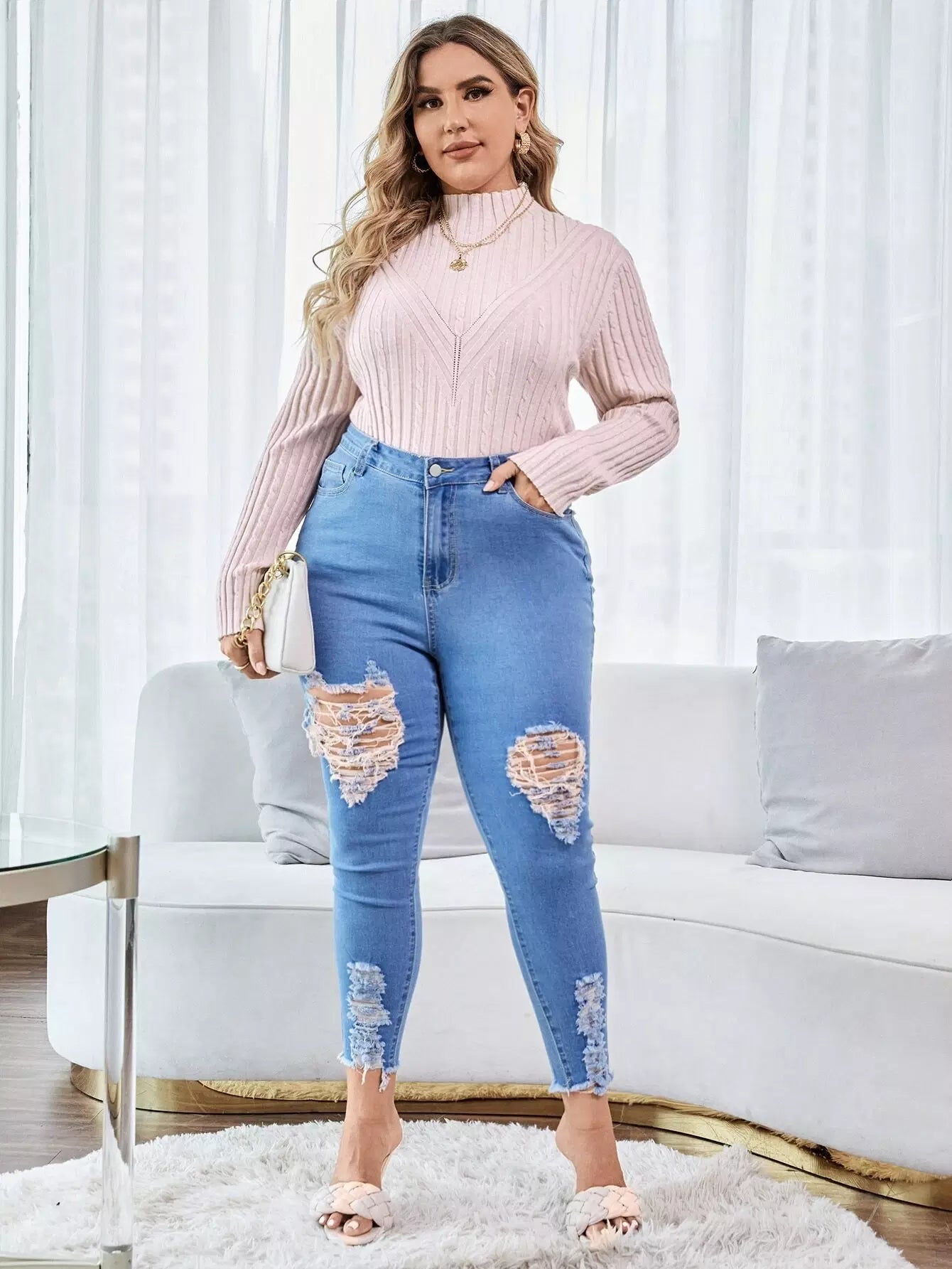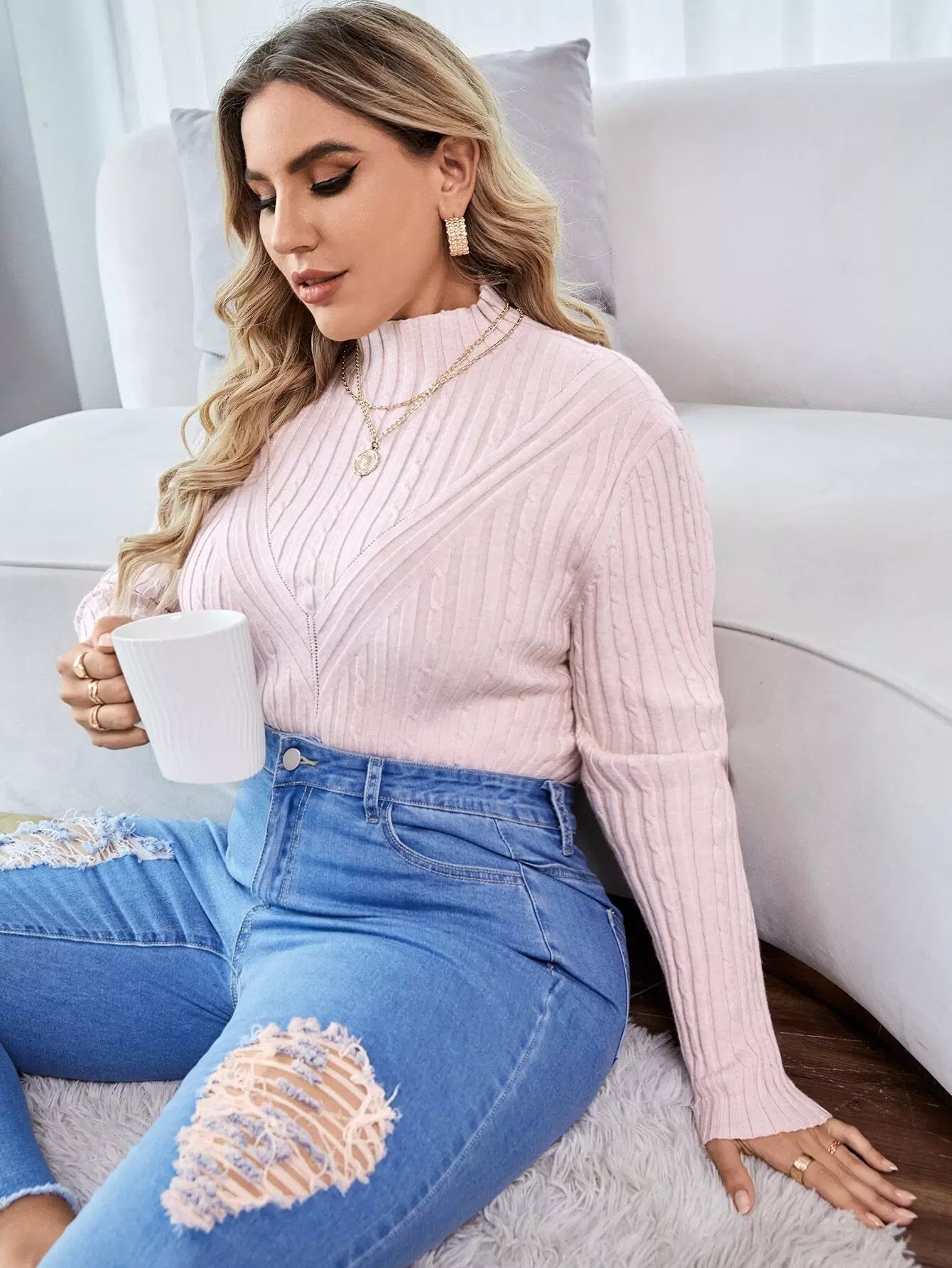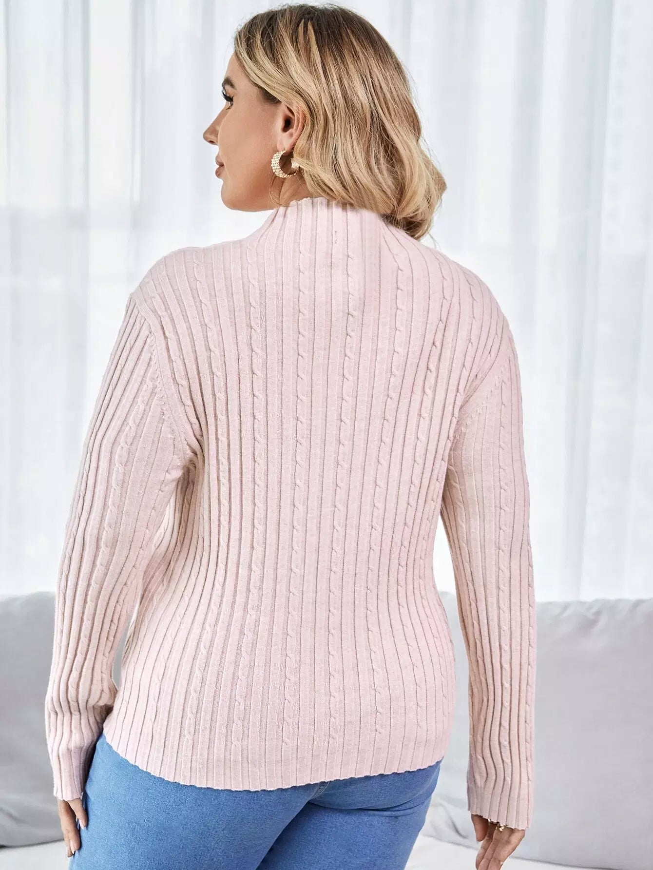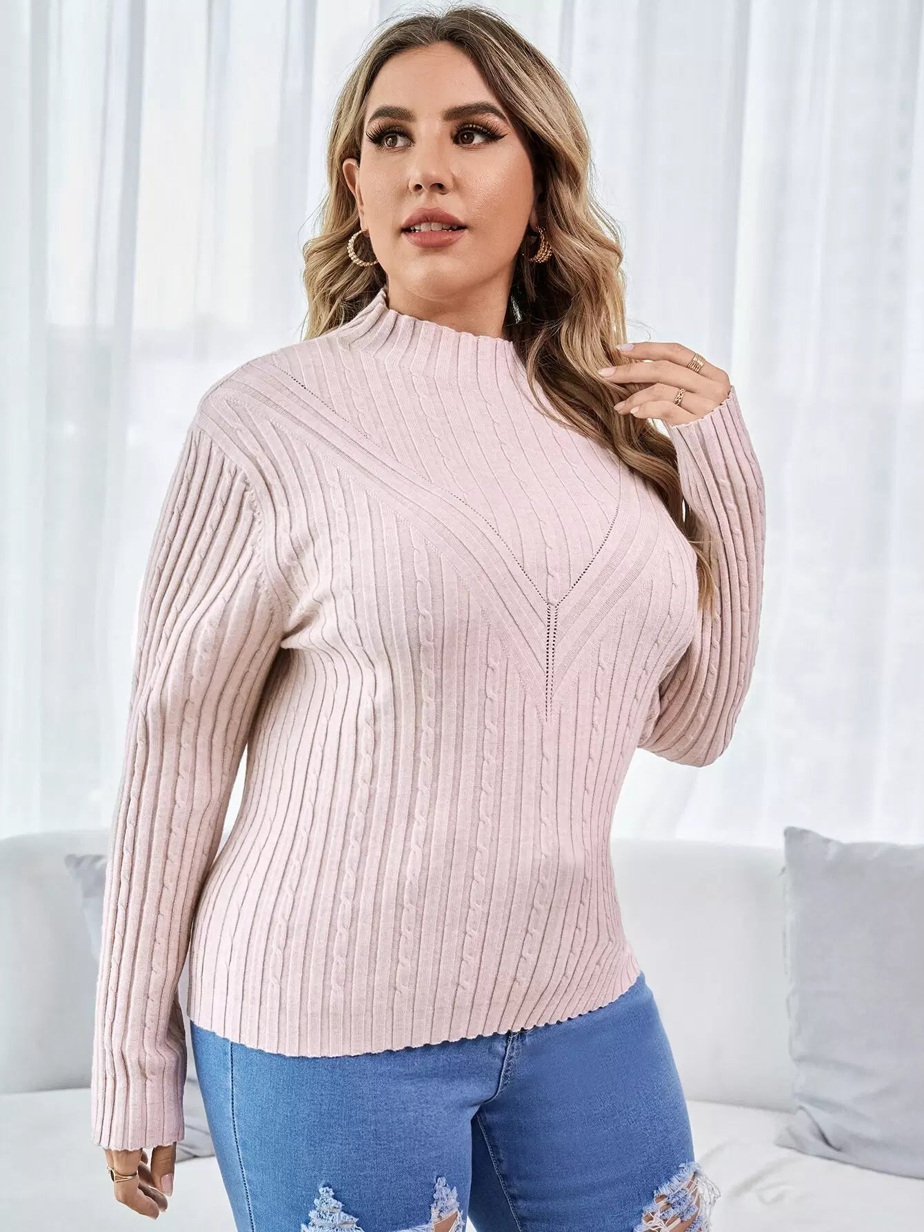 Plus Funnel Neck Cable Knit Sweater