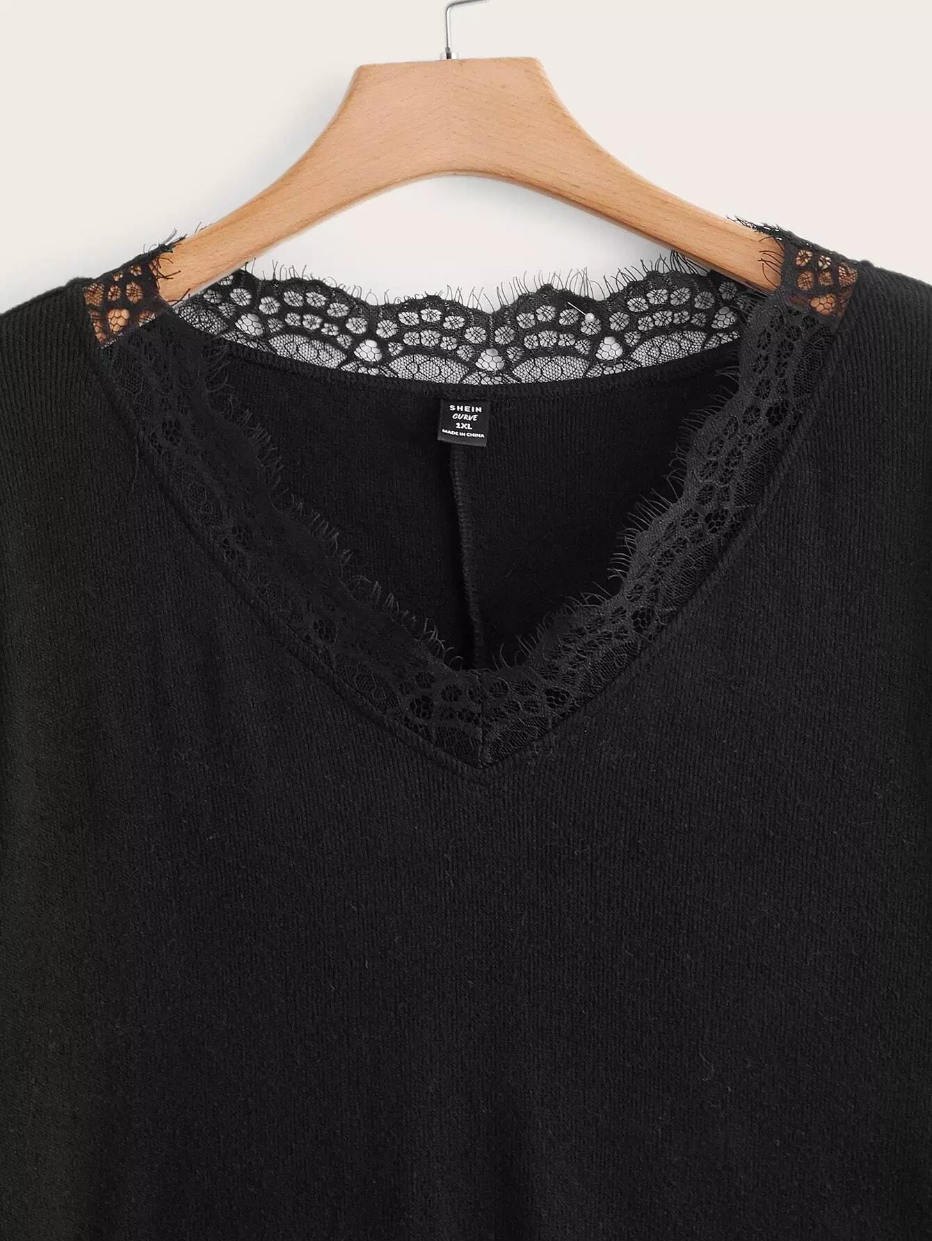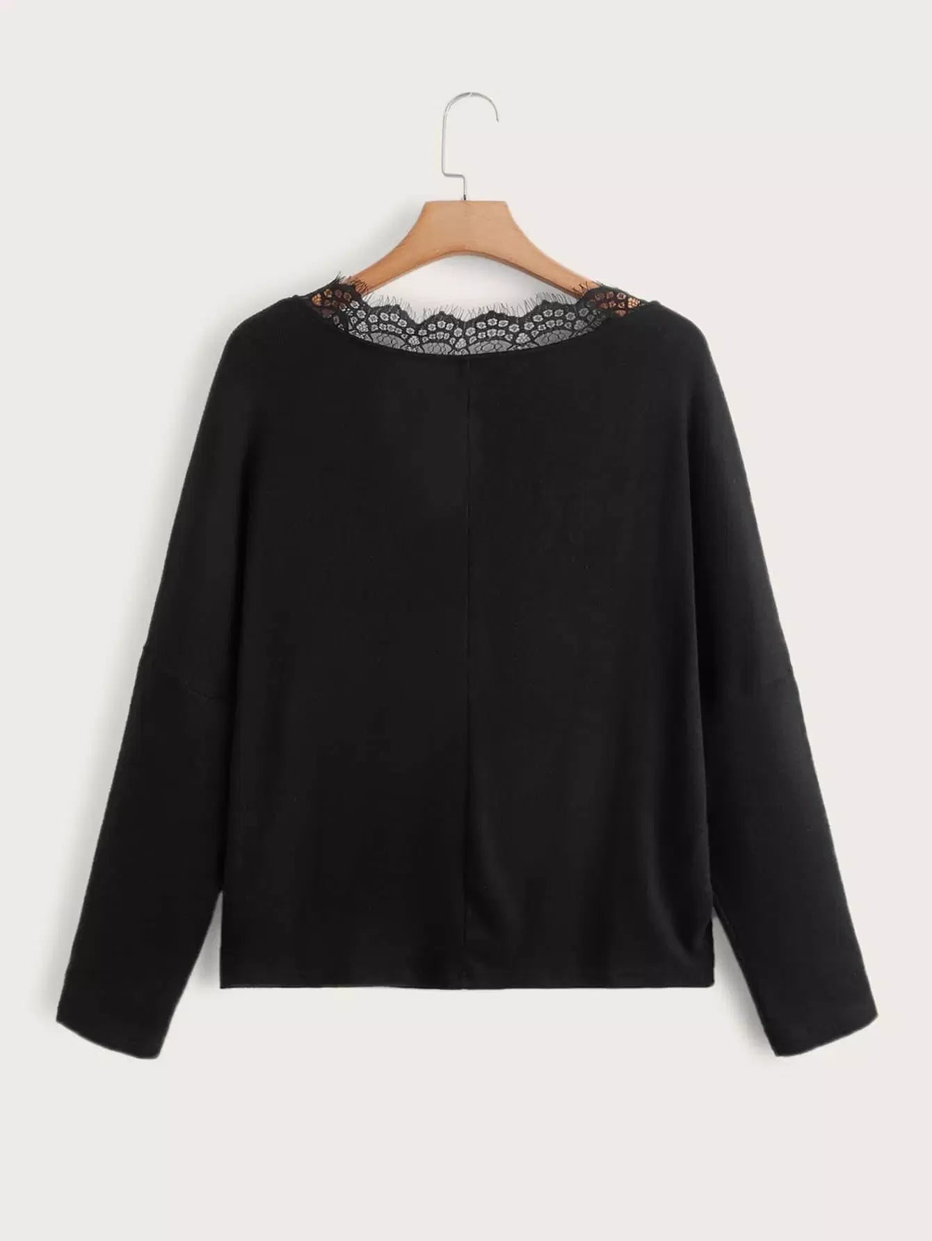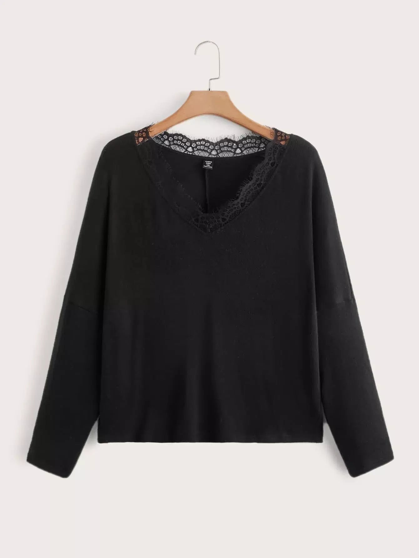 Plus Lace Trim Drop Shoulder Sweater