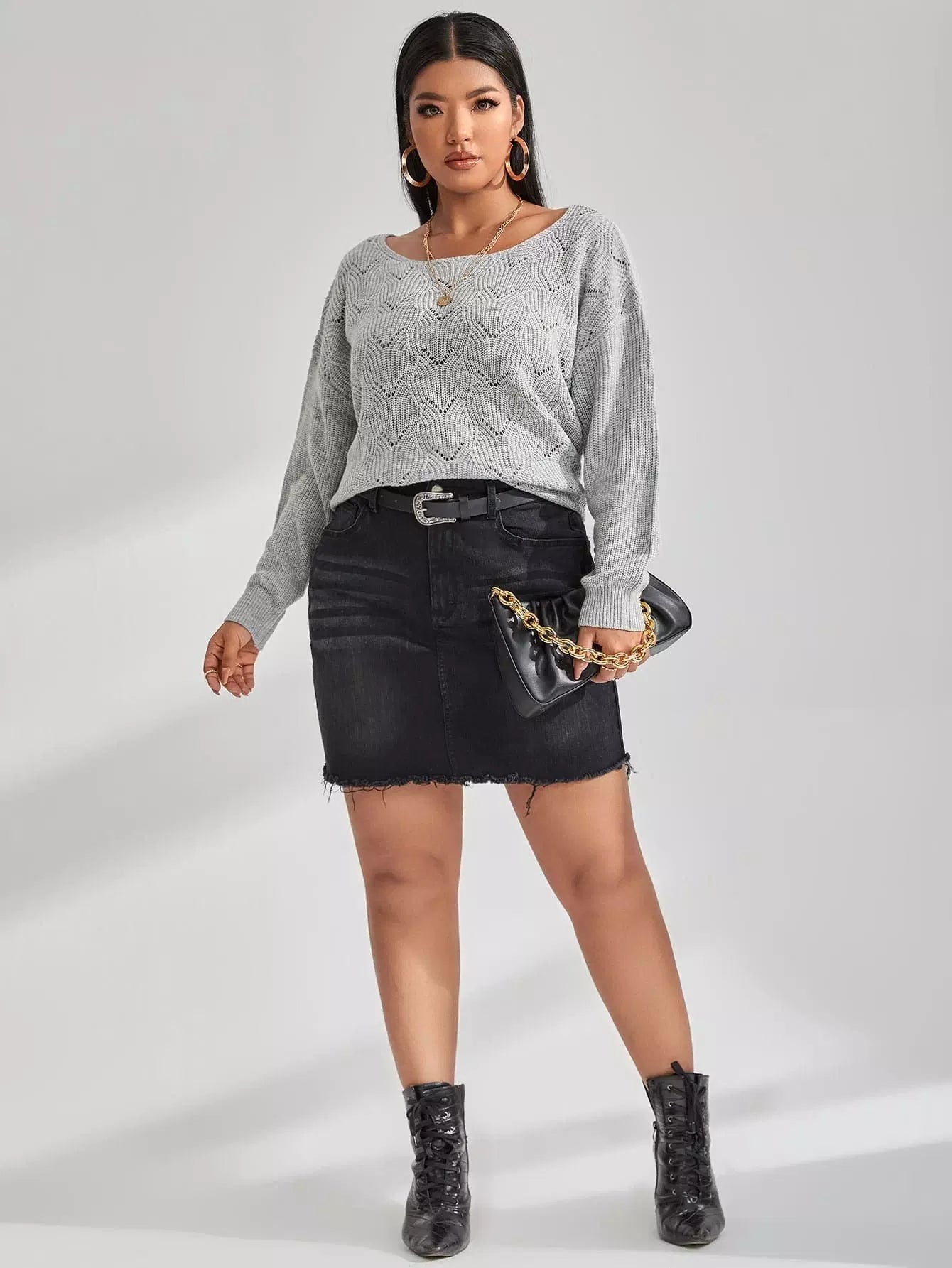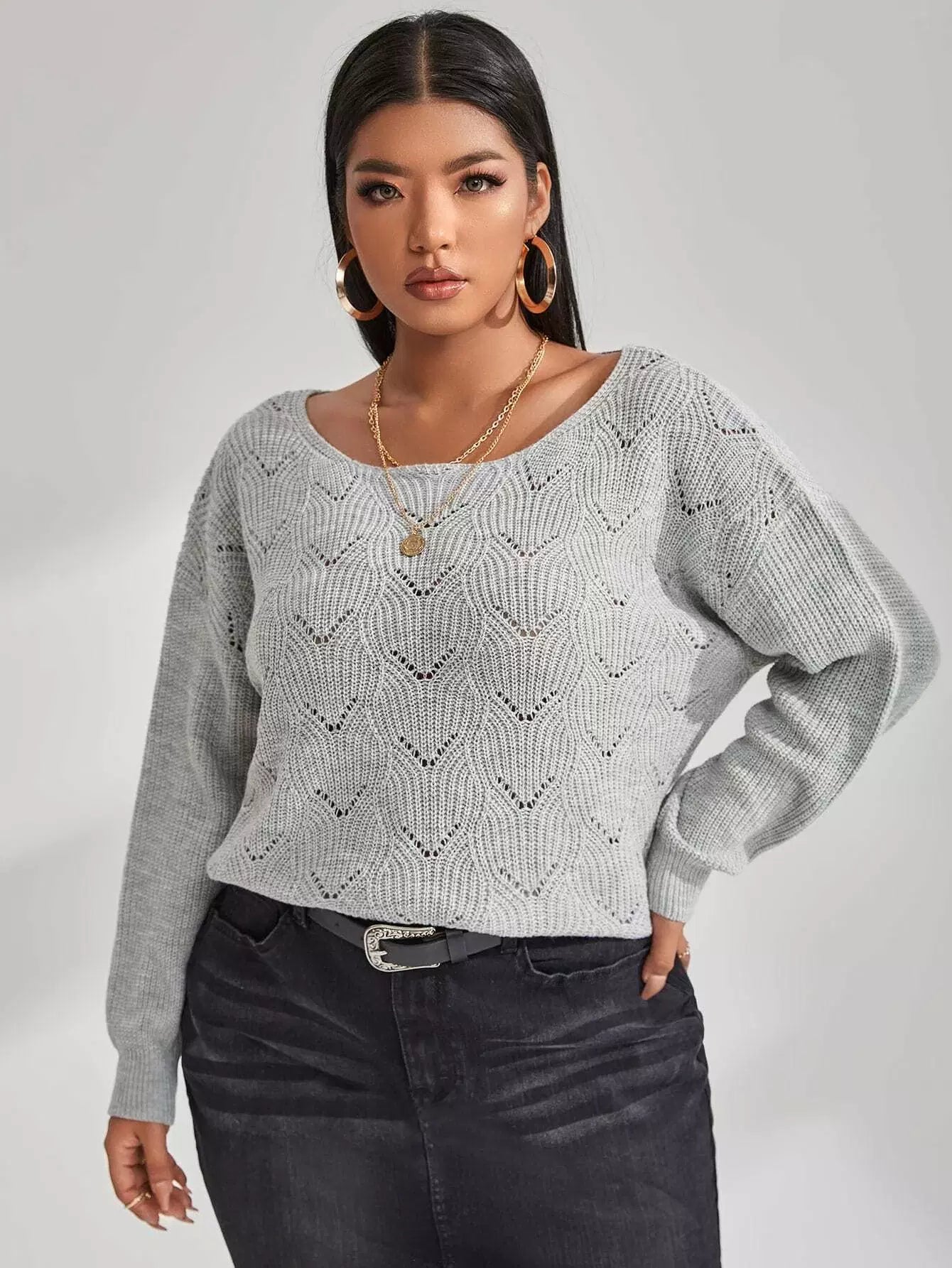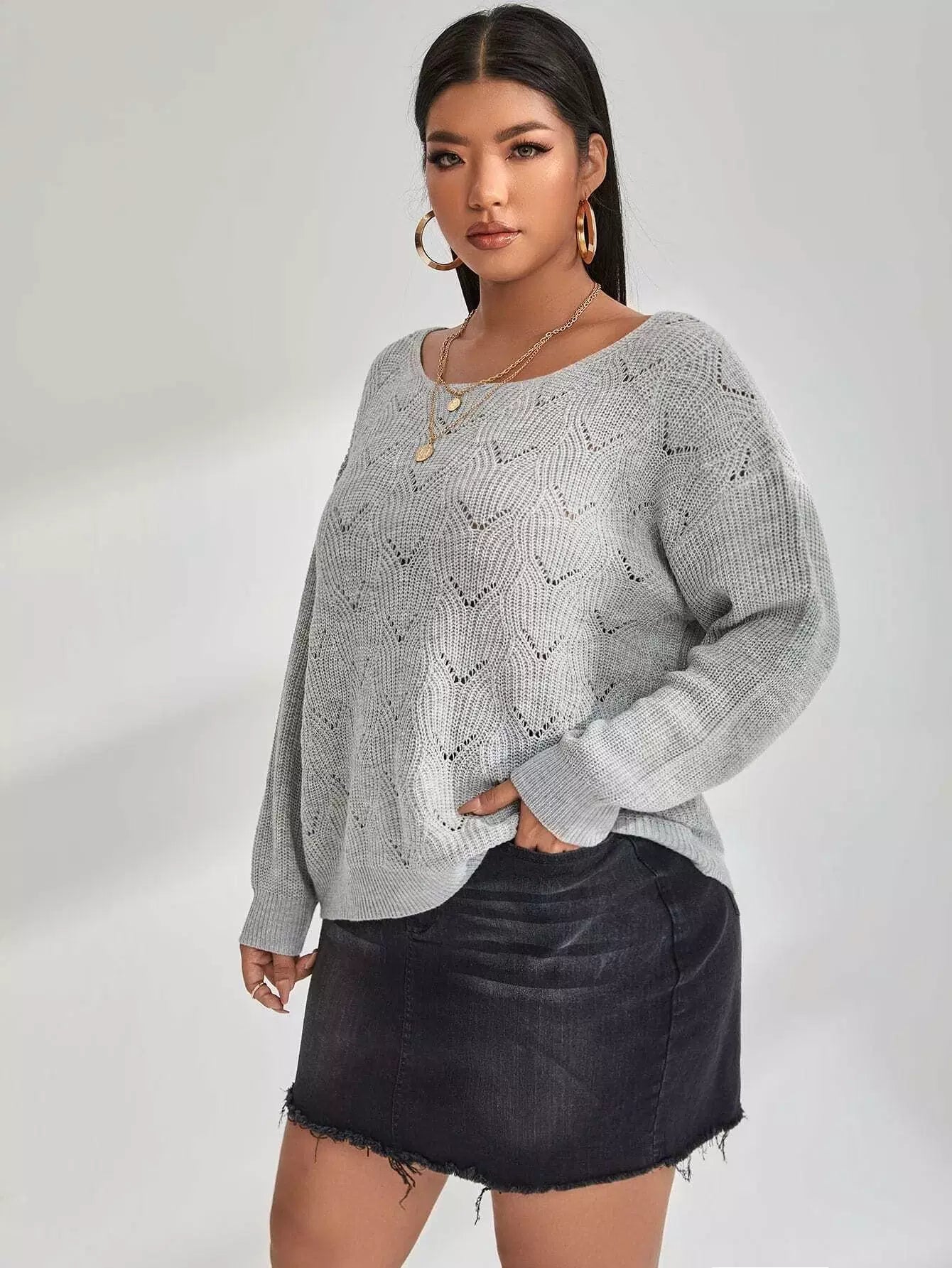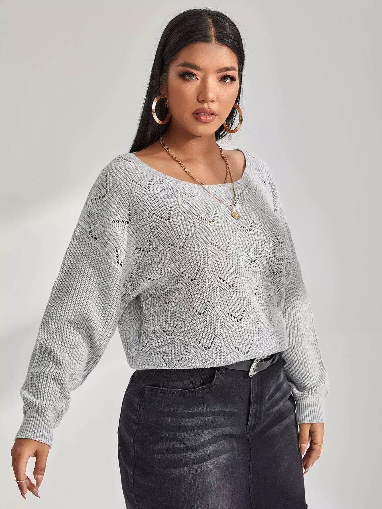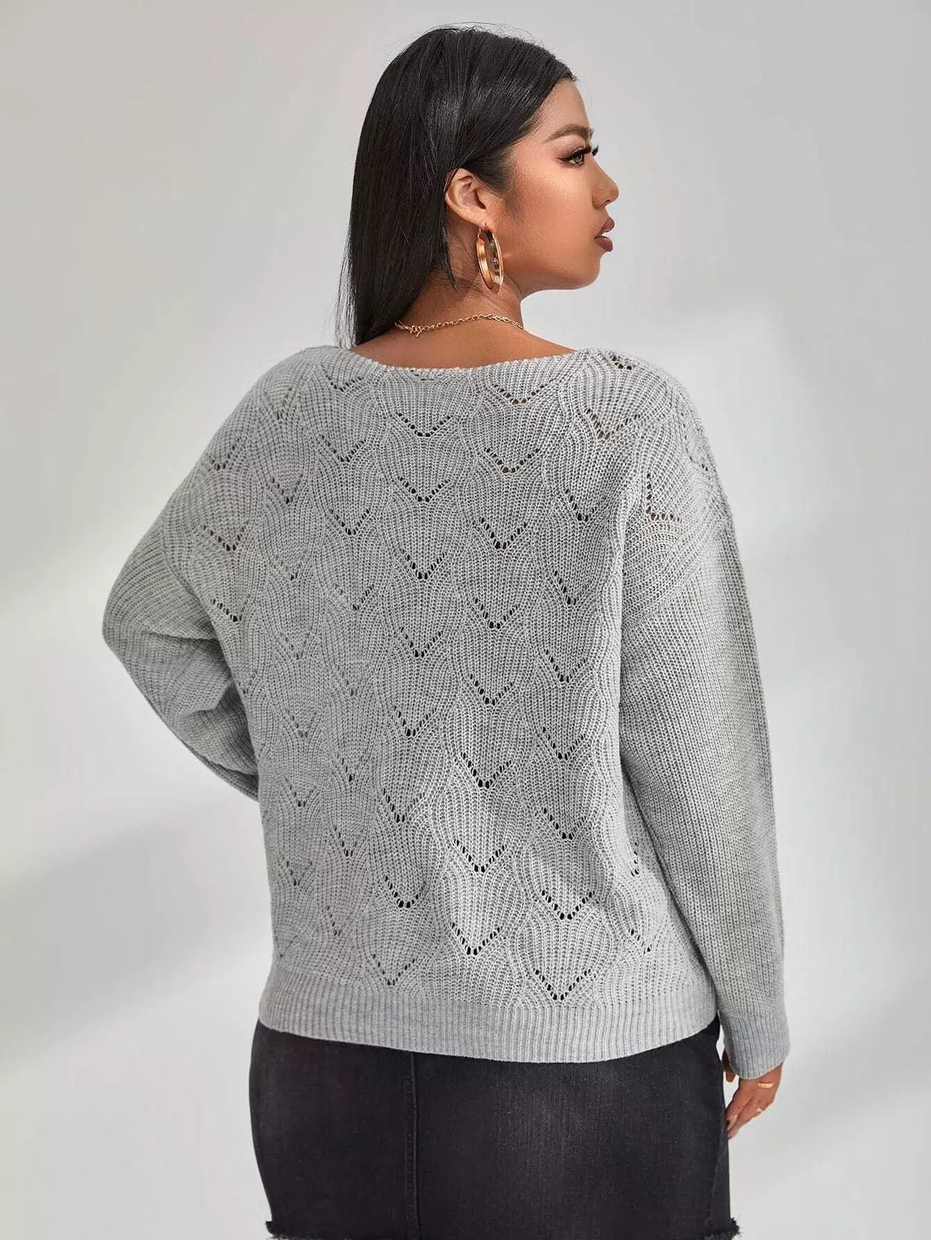 Women - Plus Pointelle Knit Drop Shoulder Sweater