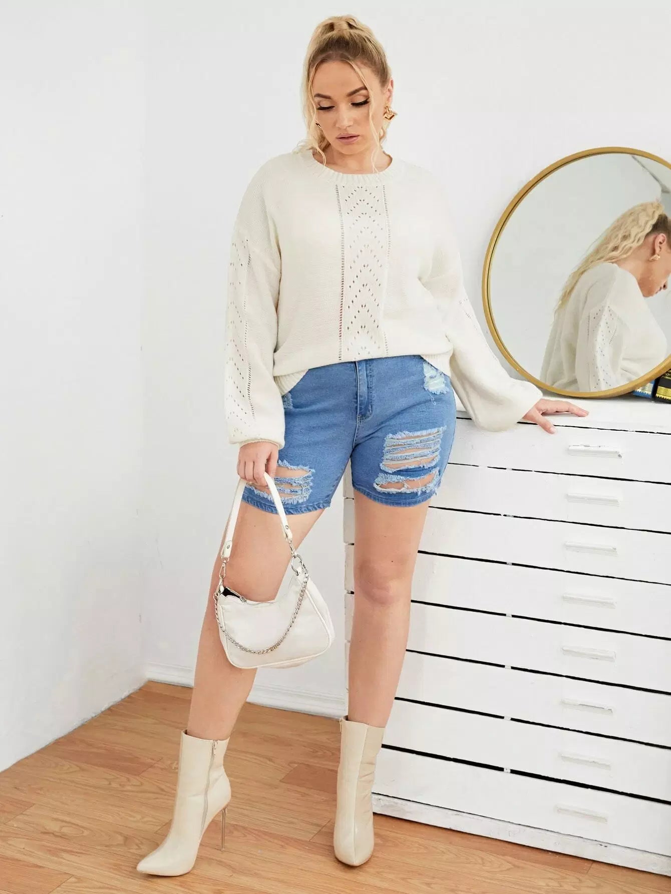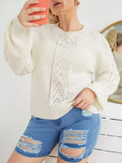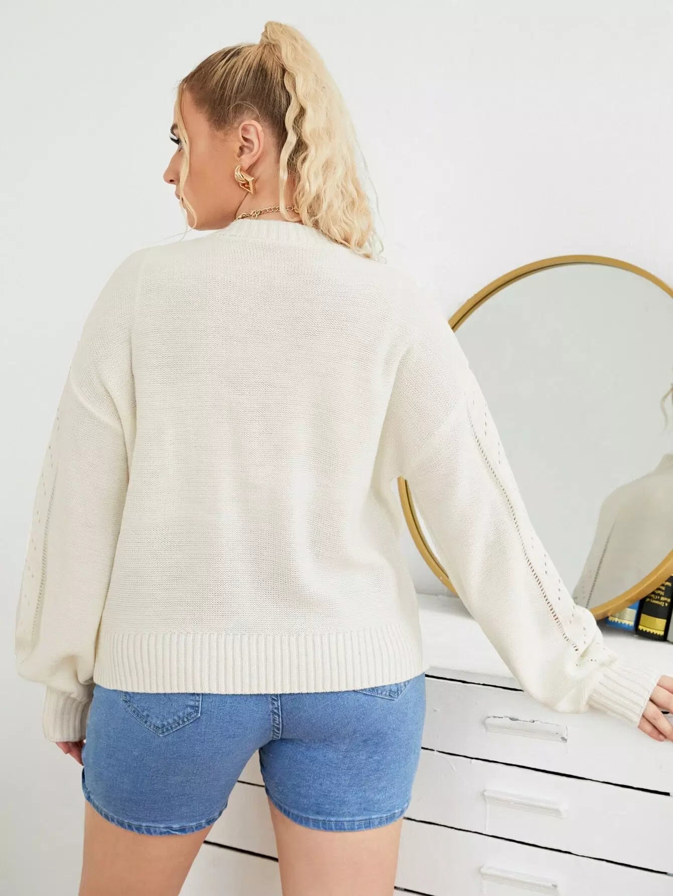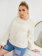Plus Pointelle Knit Drop Shoulder Sweater
