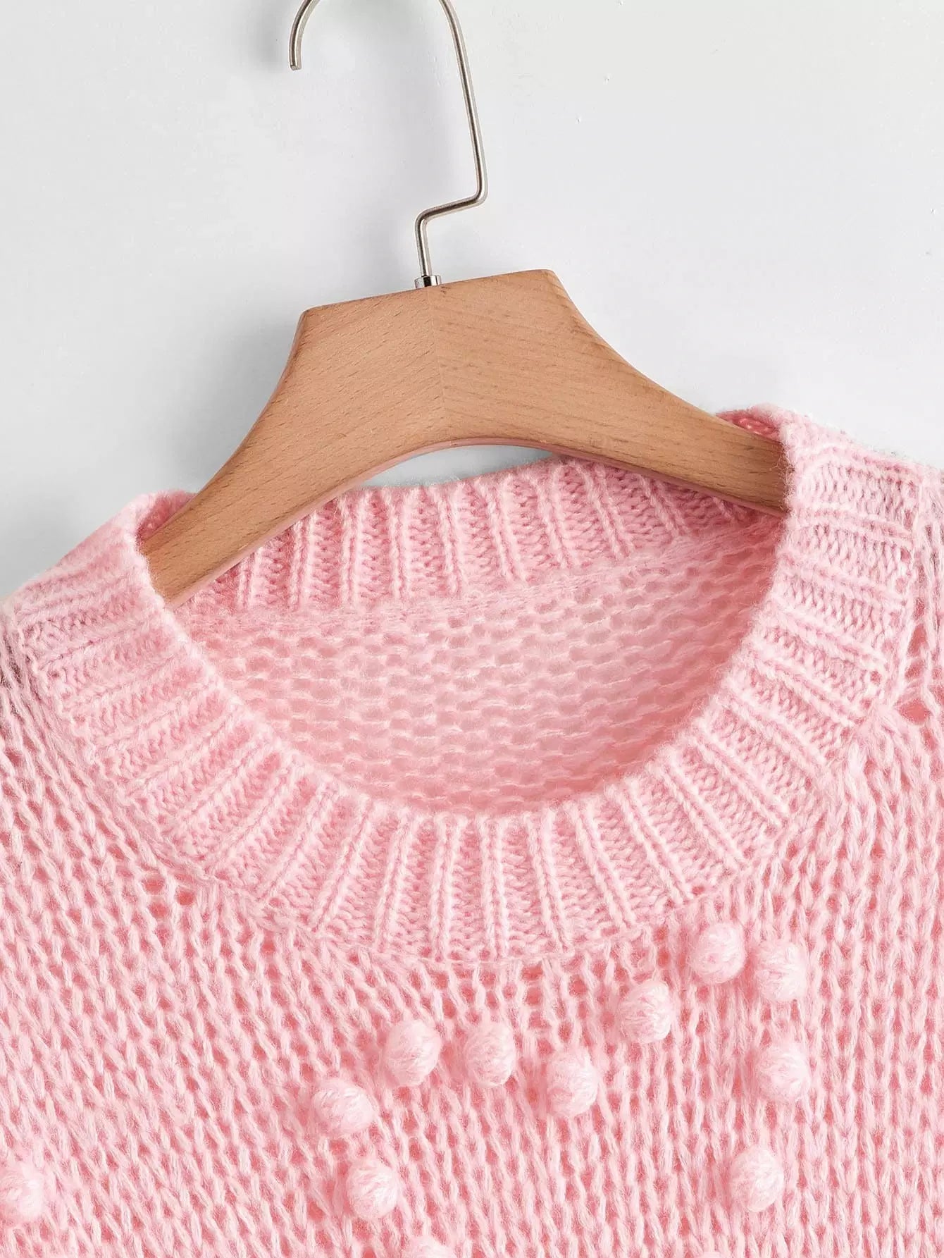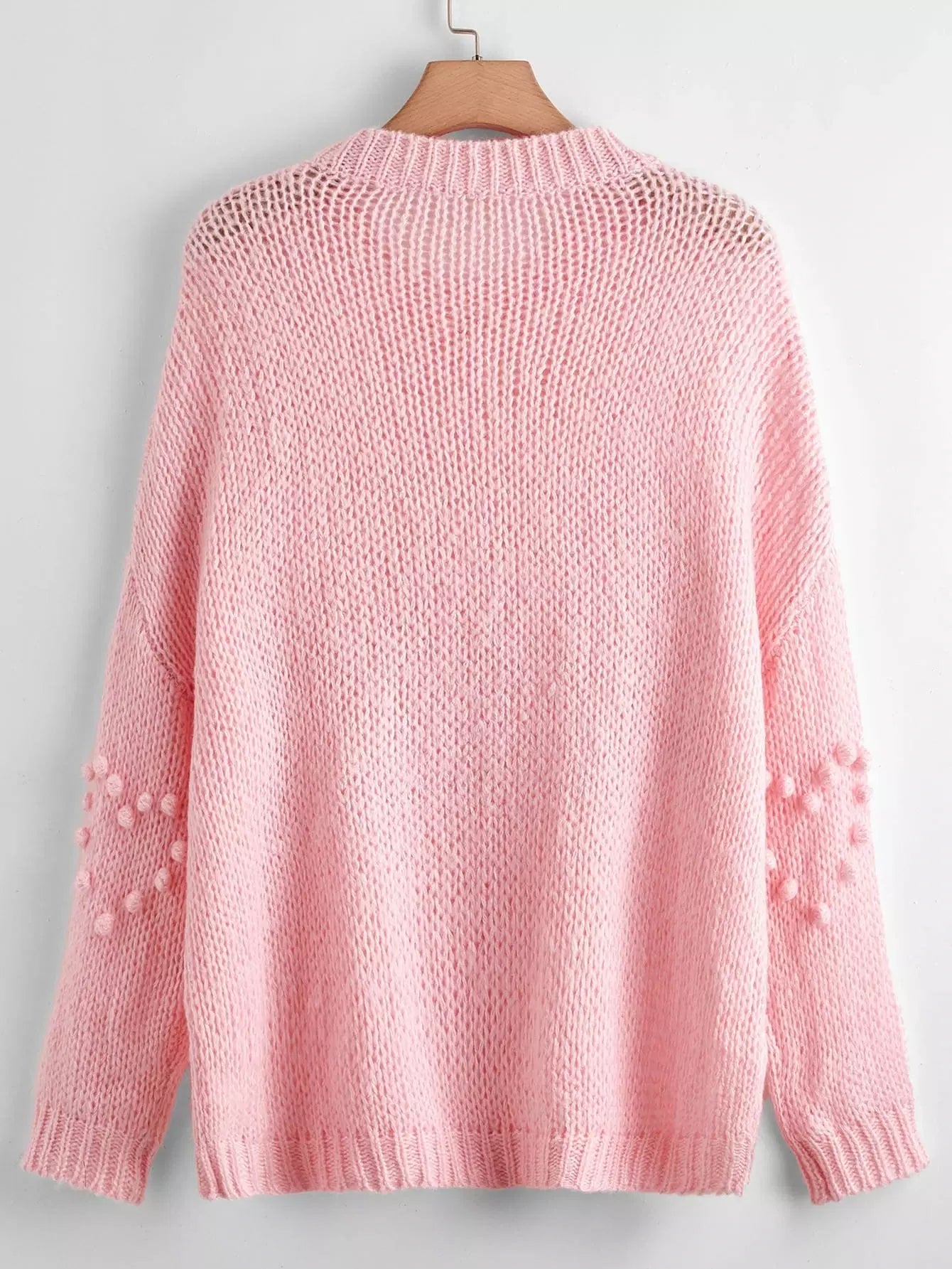 Women - Plus Pom Pom Drop Shoulder Oversized Sweater