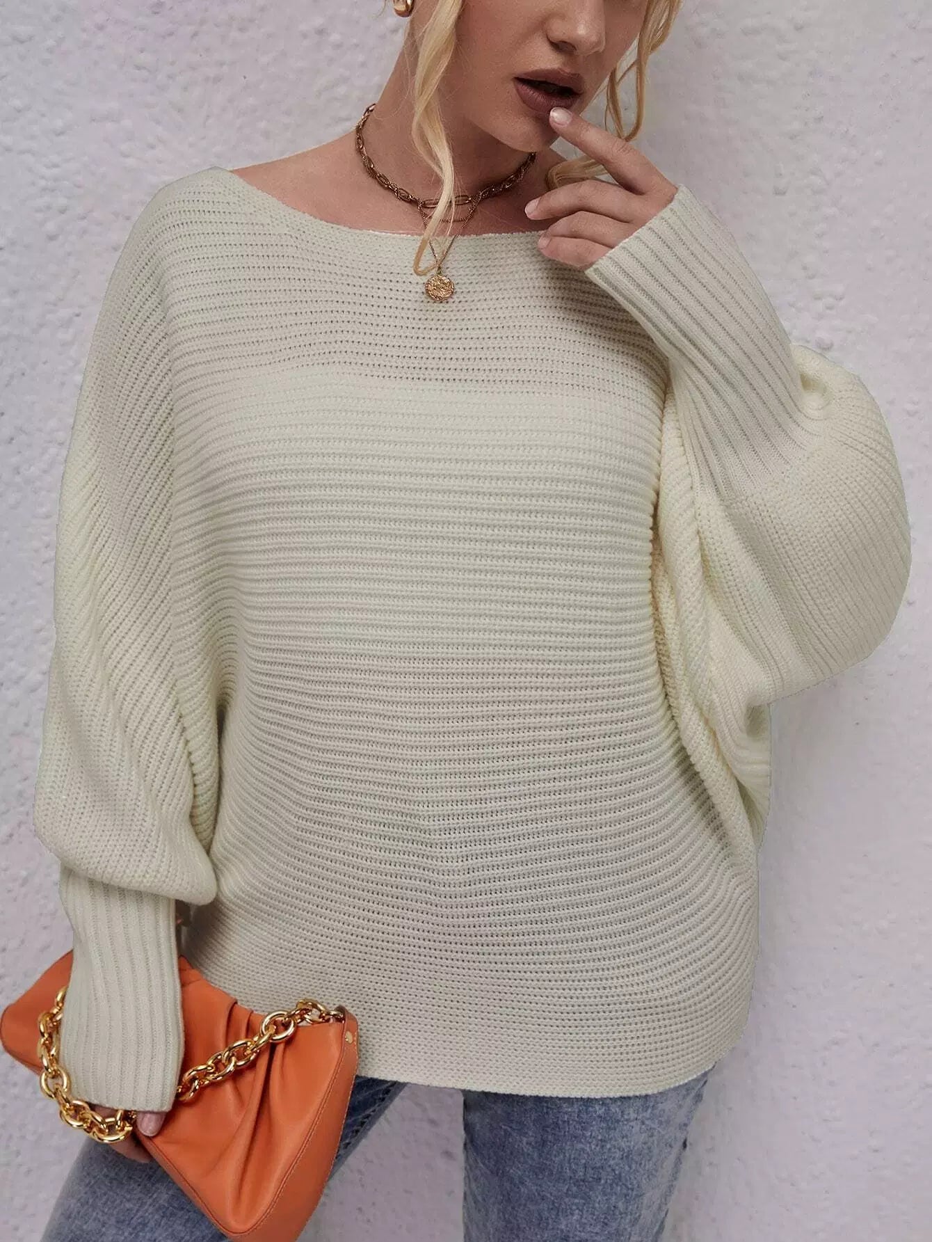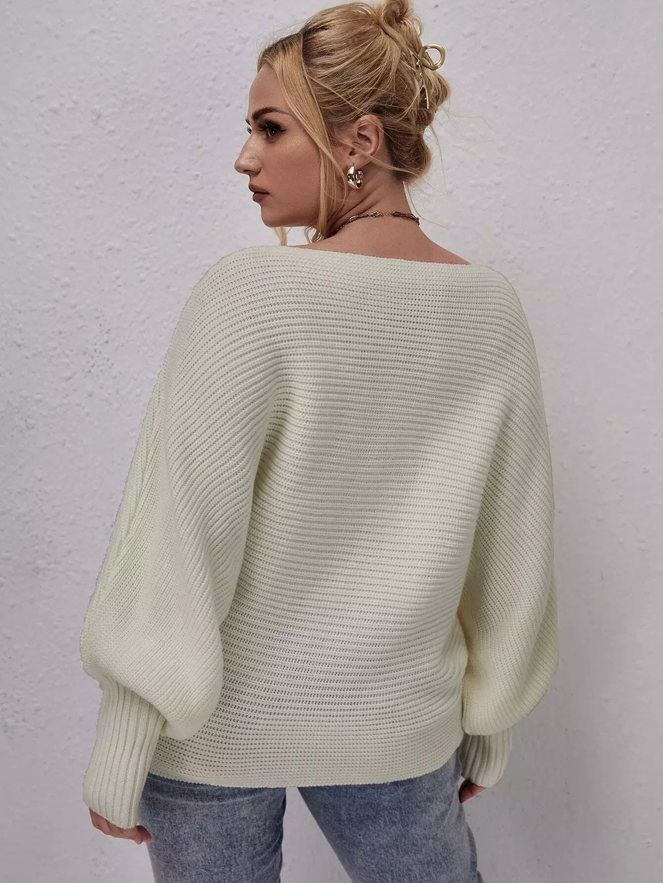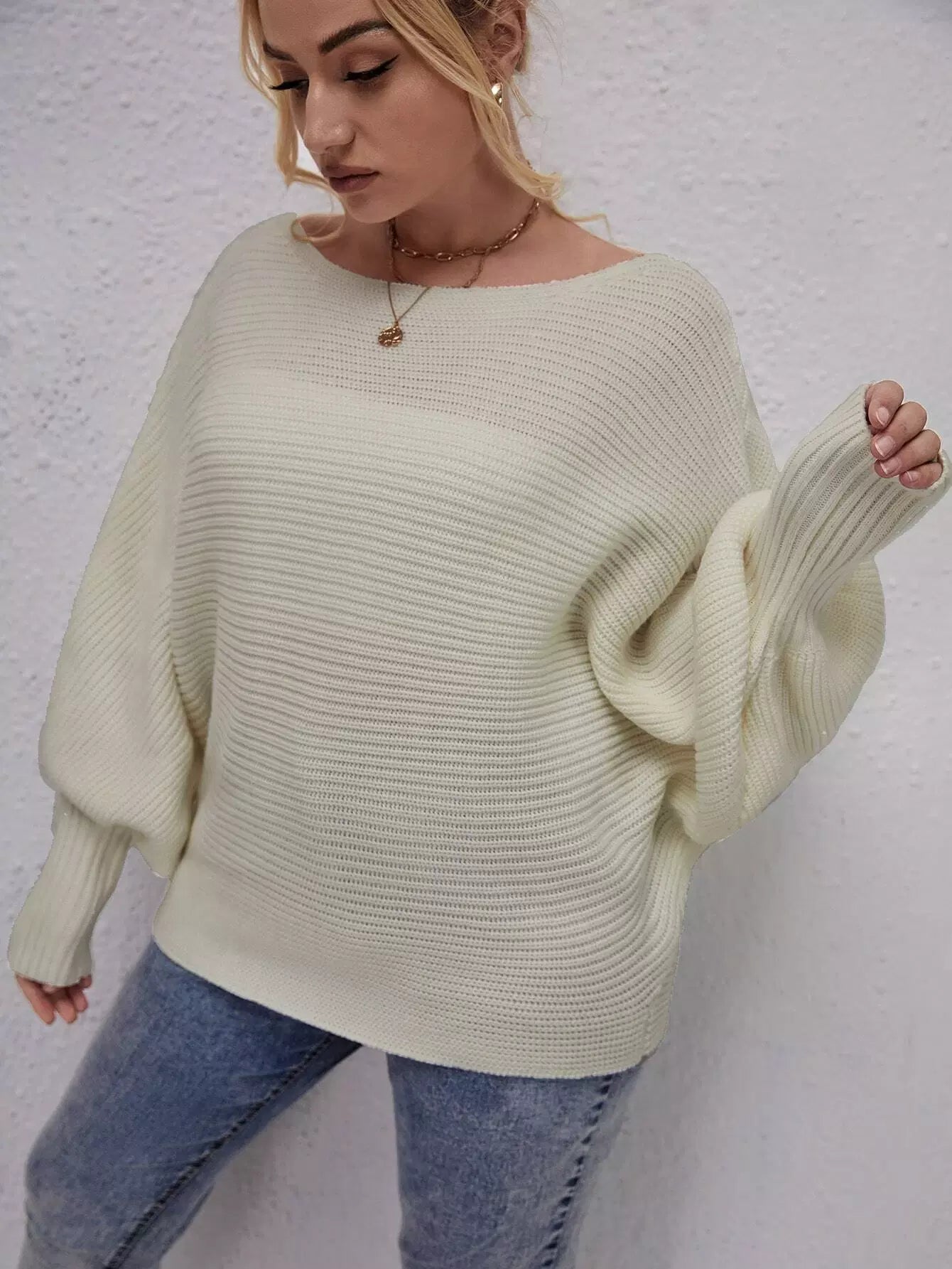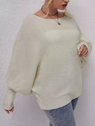 Plus Ribbed Knit Batwing Sleeve Sweater