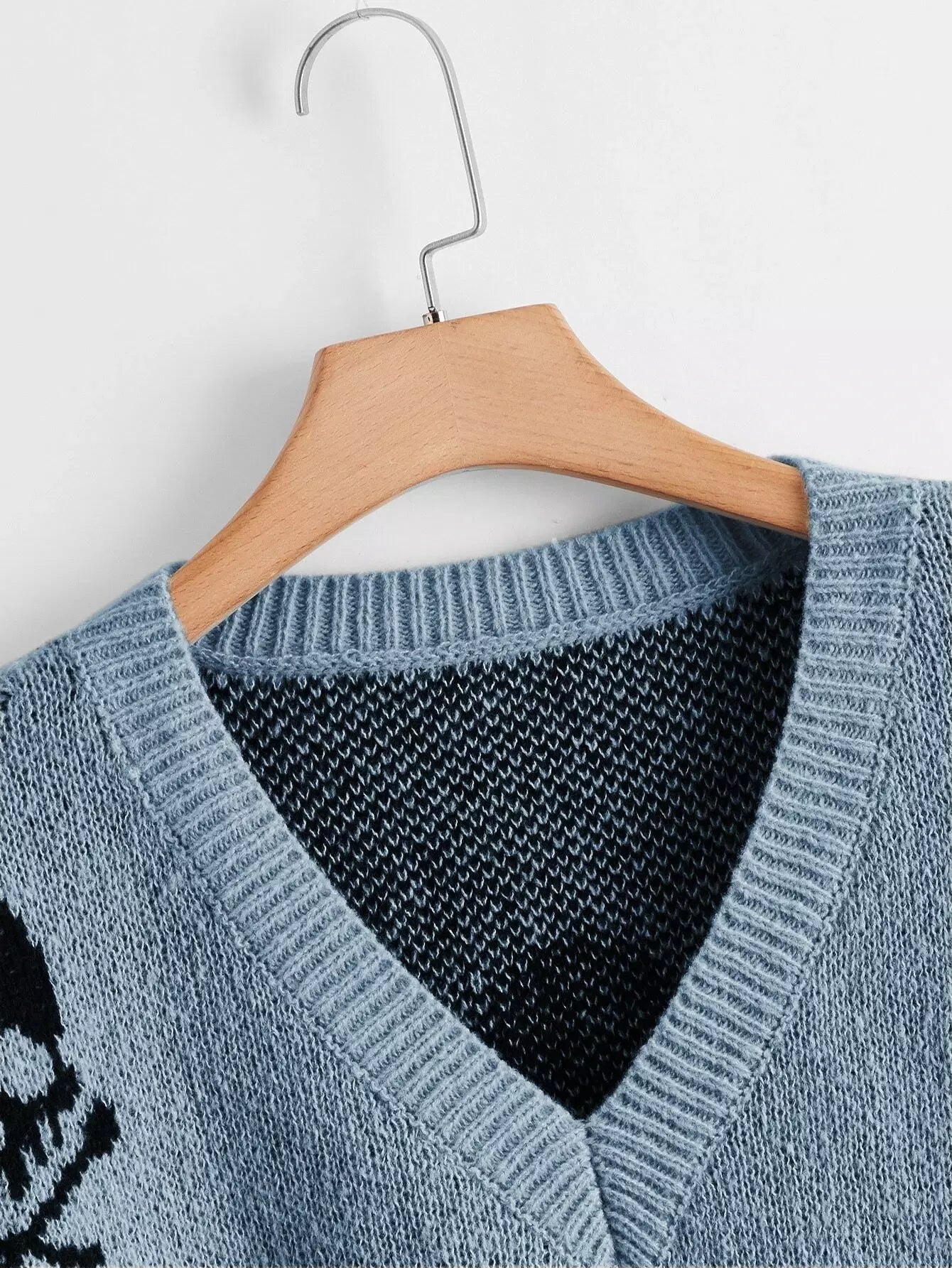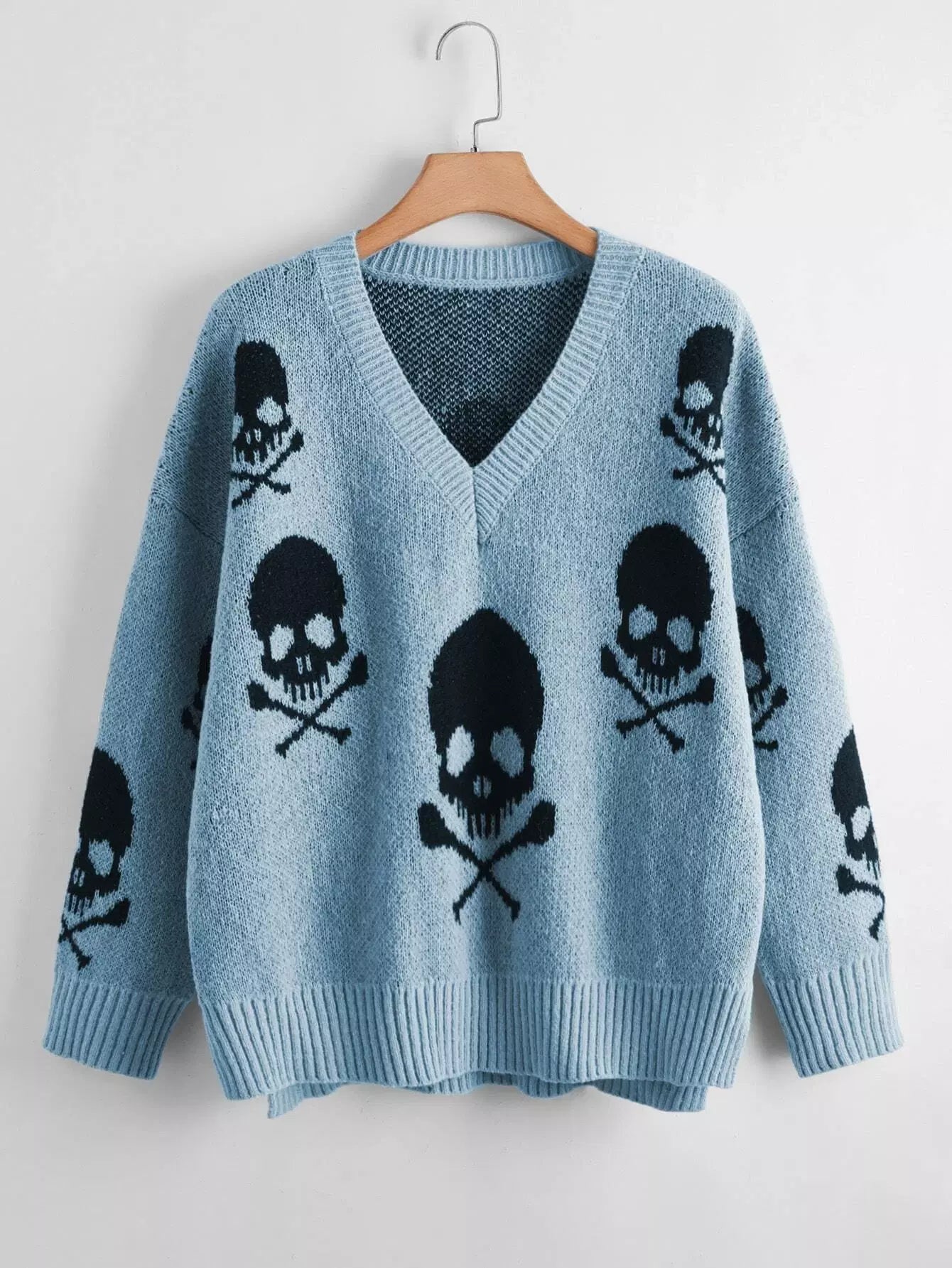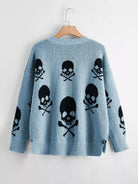 Plus Size Knitwear - Plus Skull Pattern Drop Shoulder Sweater
