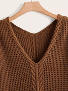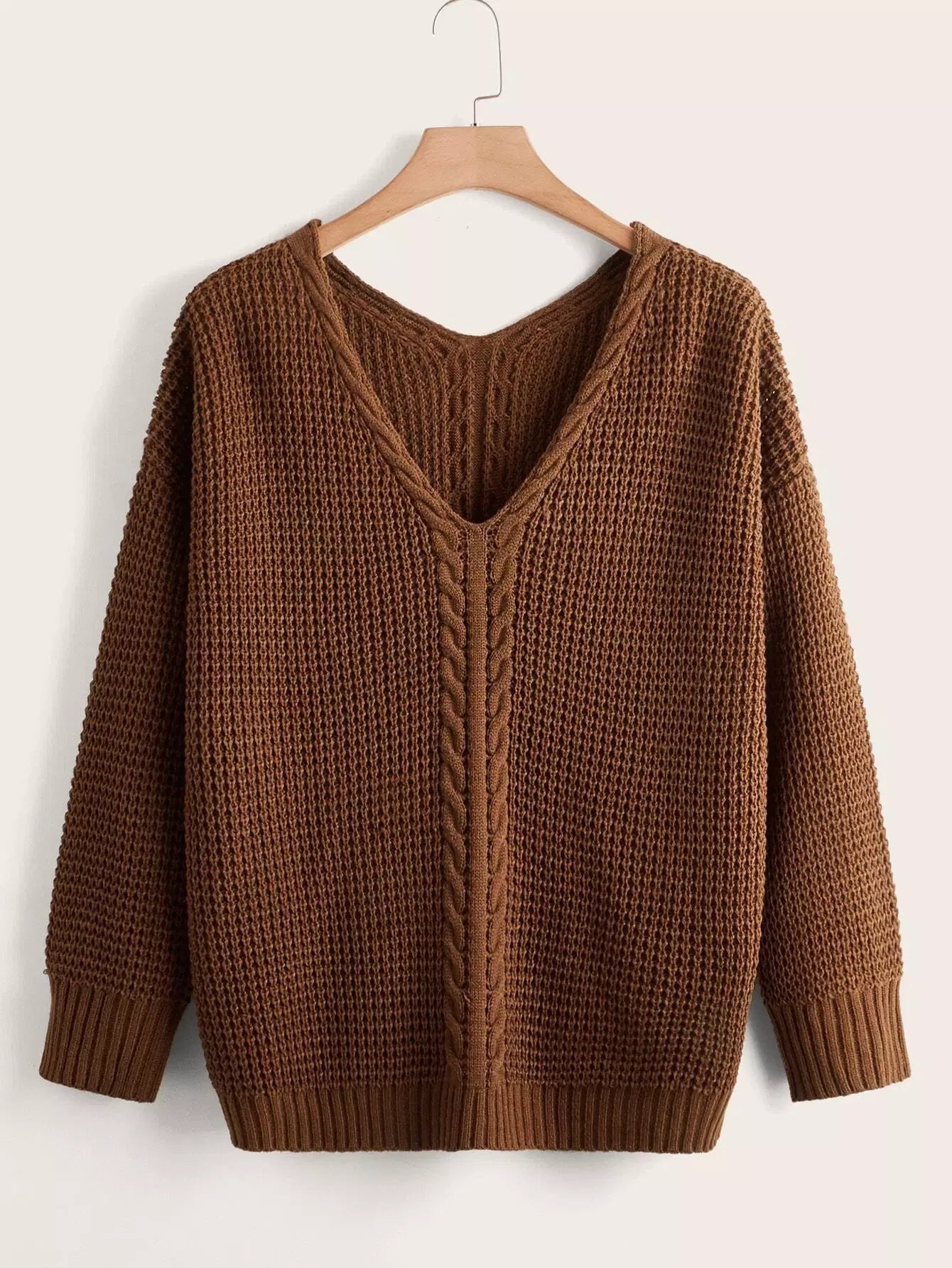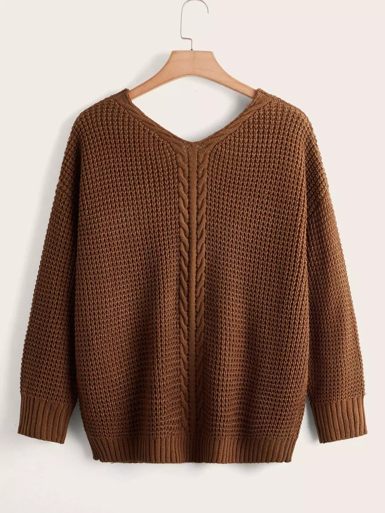 Plus Solid Cable Knit Drop Shoulder Sweater