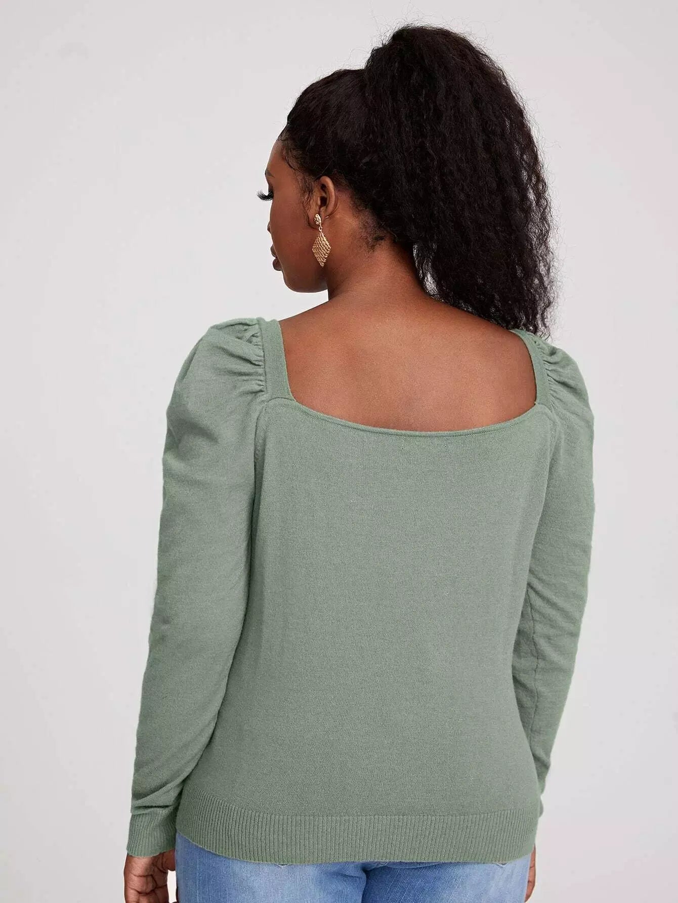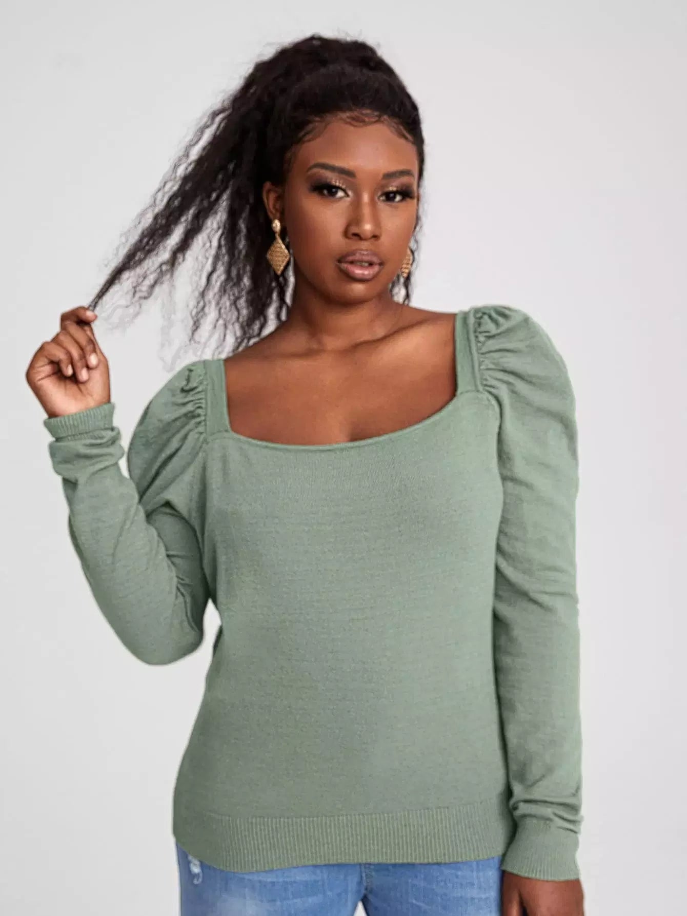 Women - Plus Square Neck Leg-of-mutton Sleeve Sweater