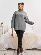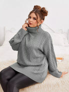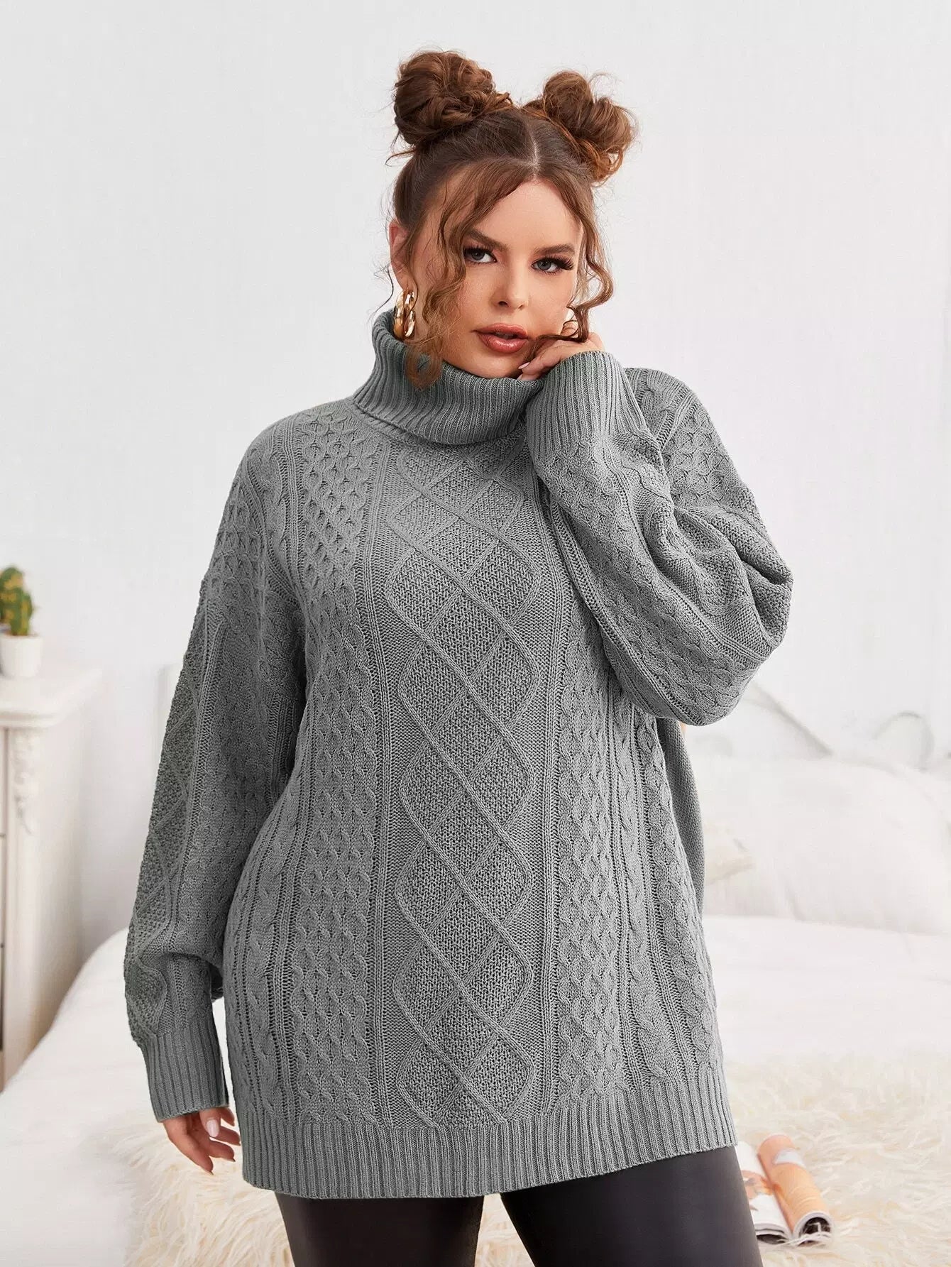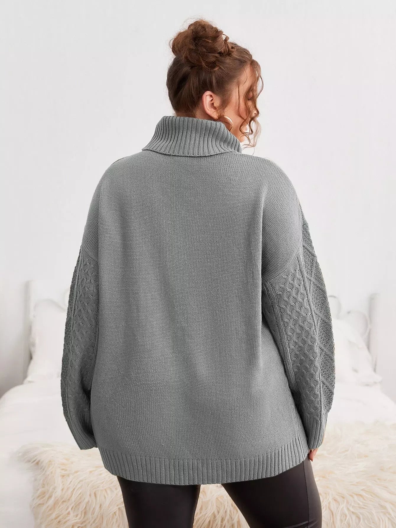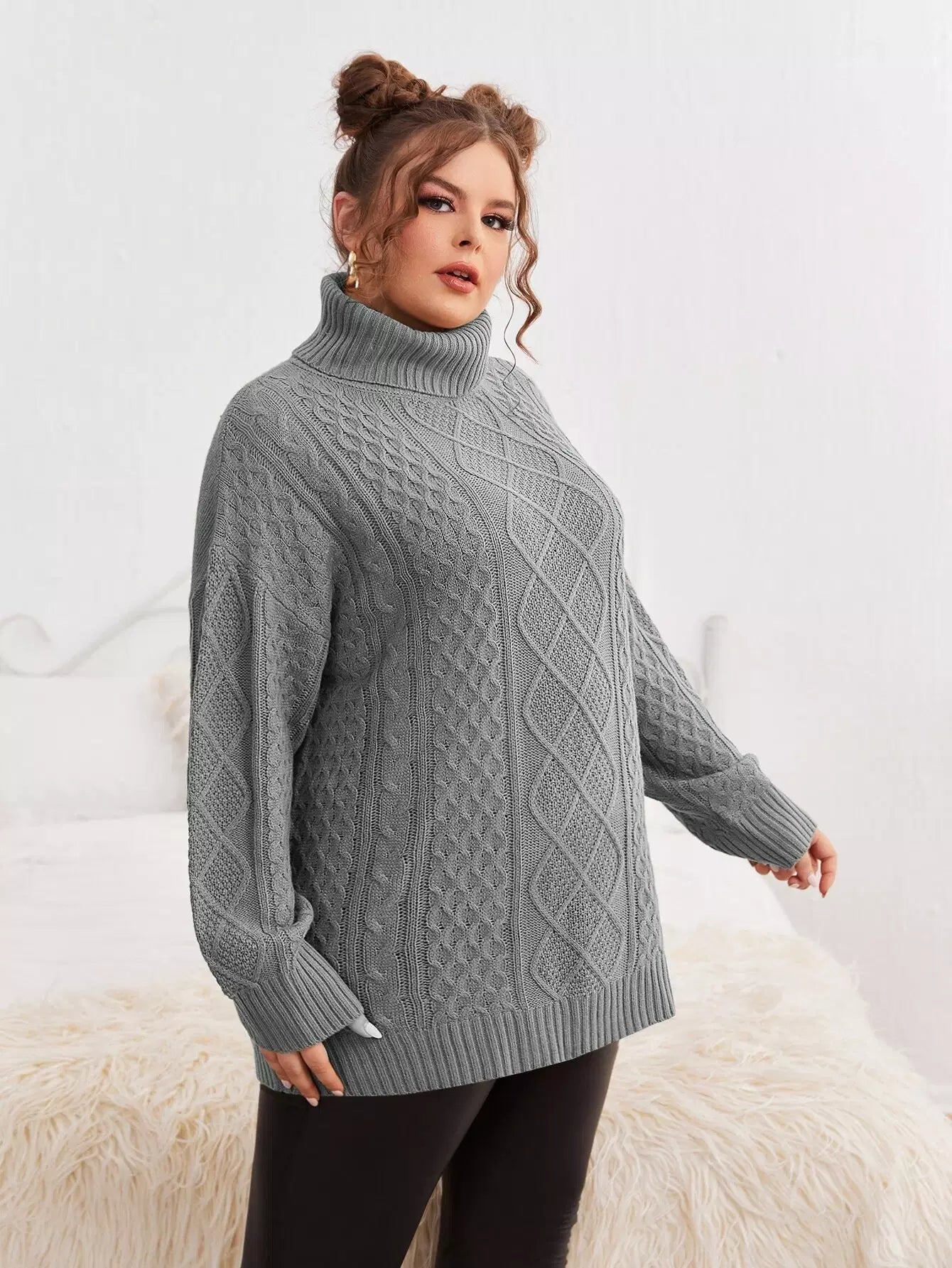 Plus Turtleneck Cable Knit Drop Shoulder Sweater
