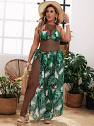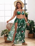 3pack Plus Tropical Triangle Bikini Swimsuit & Cover Up