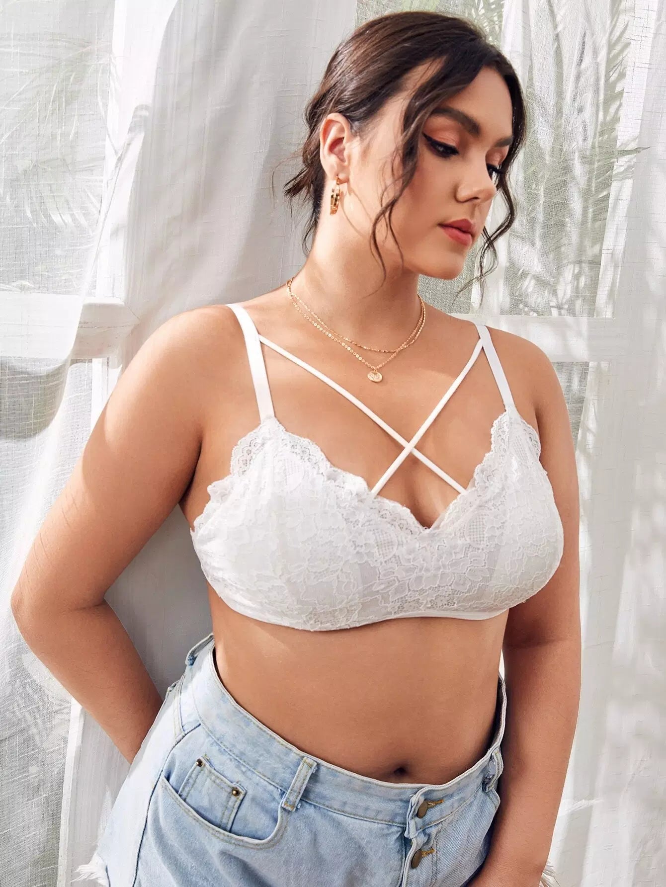 Plus Floral Lace Crisscross Bralette
