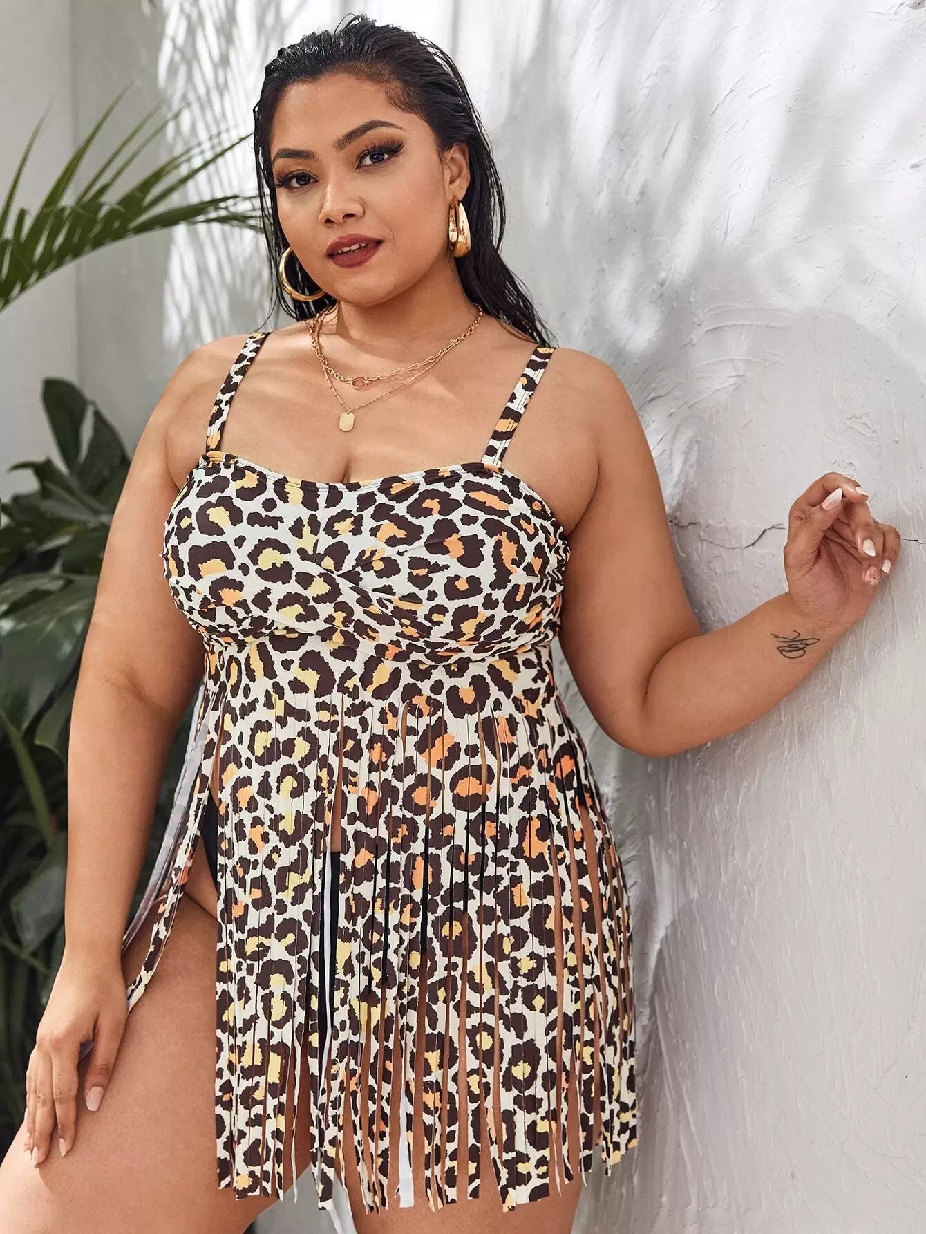 Plus Leopard Fringe Hem Bikini Swimsuit