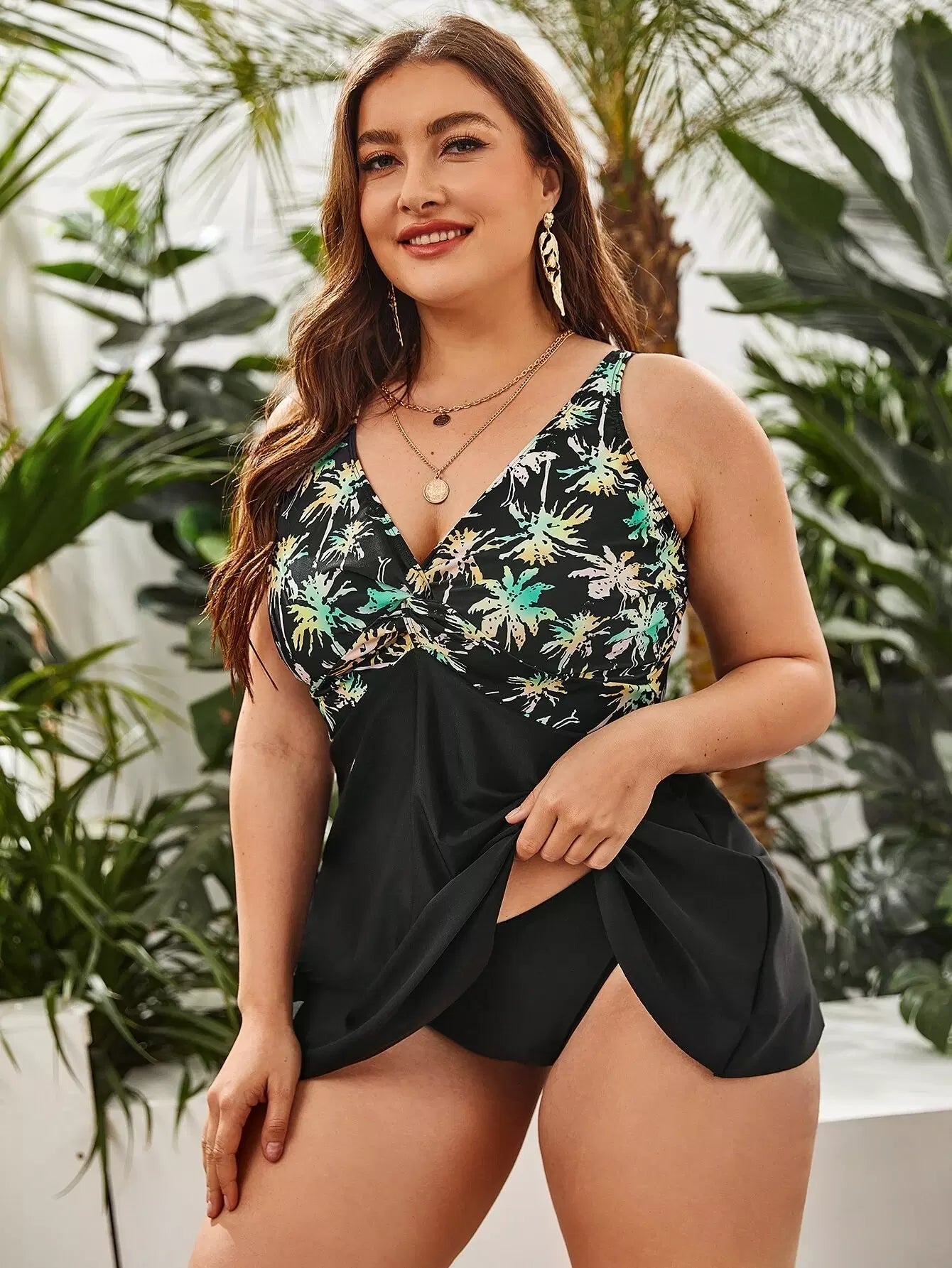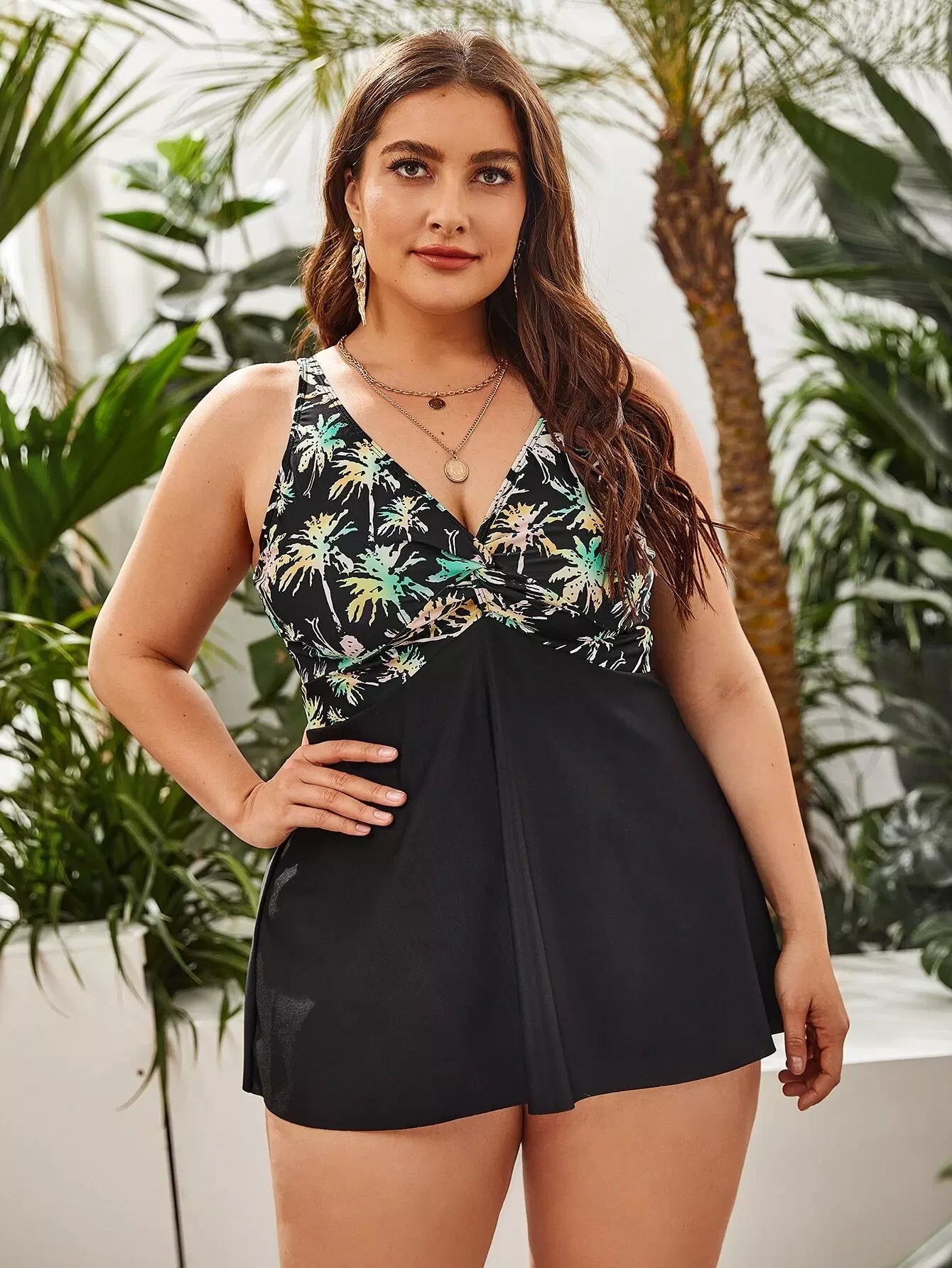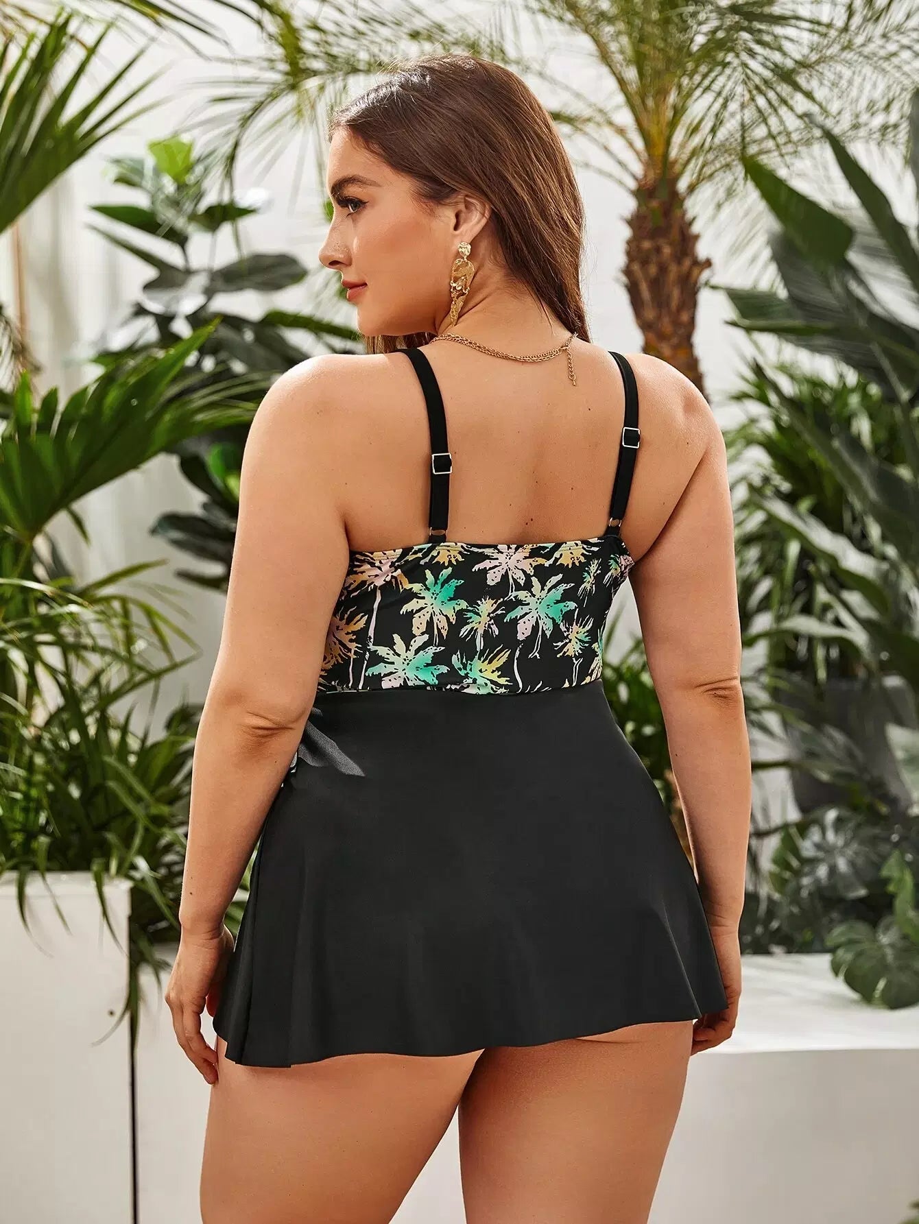 Plus Palm Tree Print Twist Bikini Swimsuit