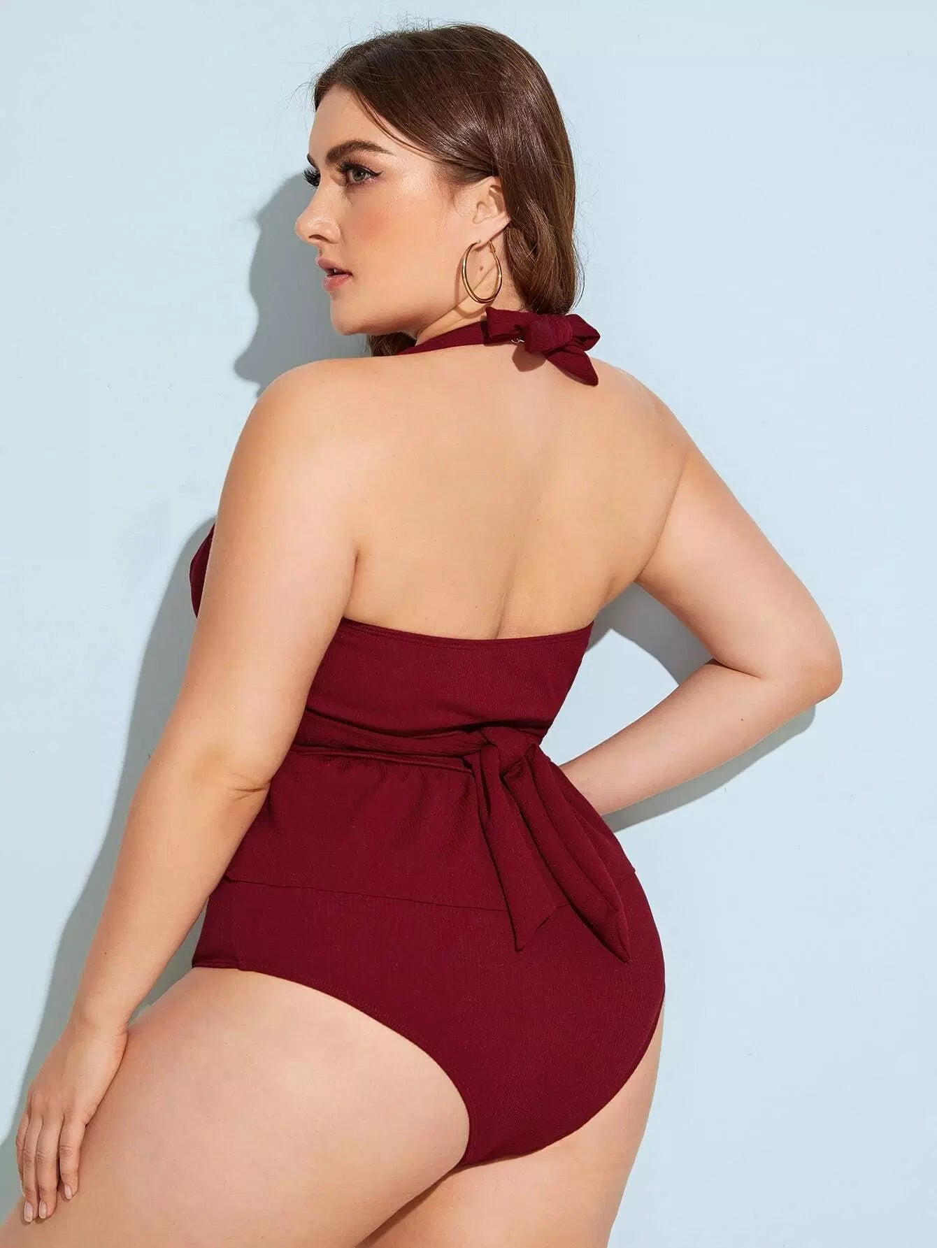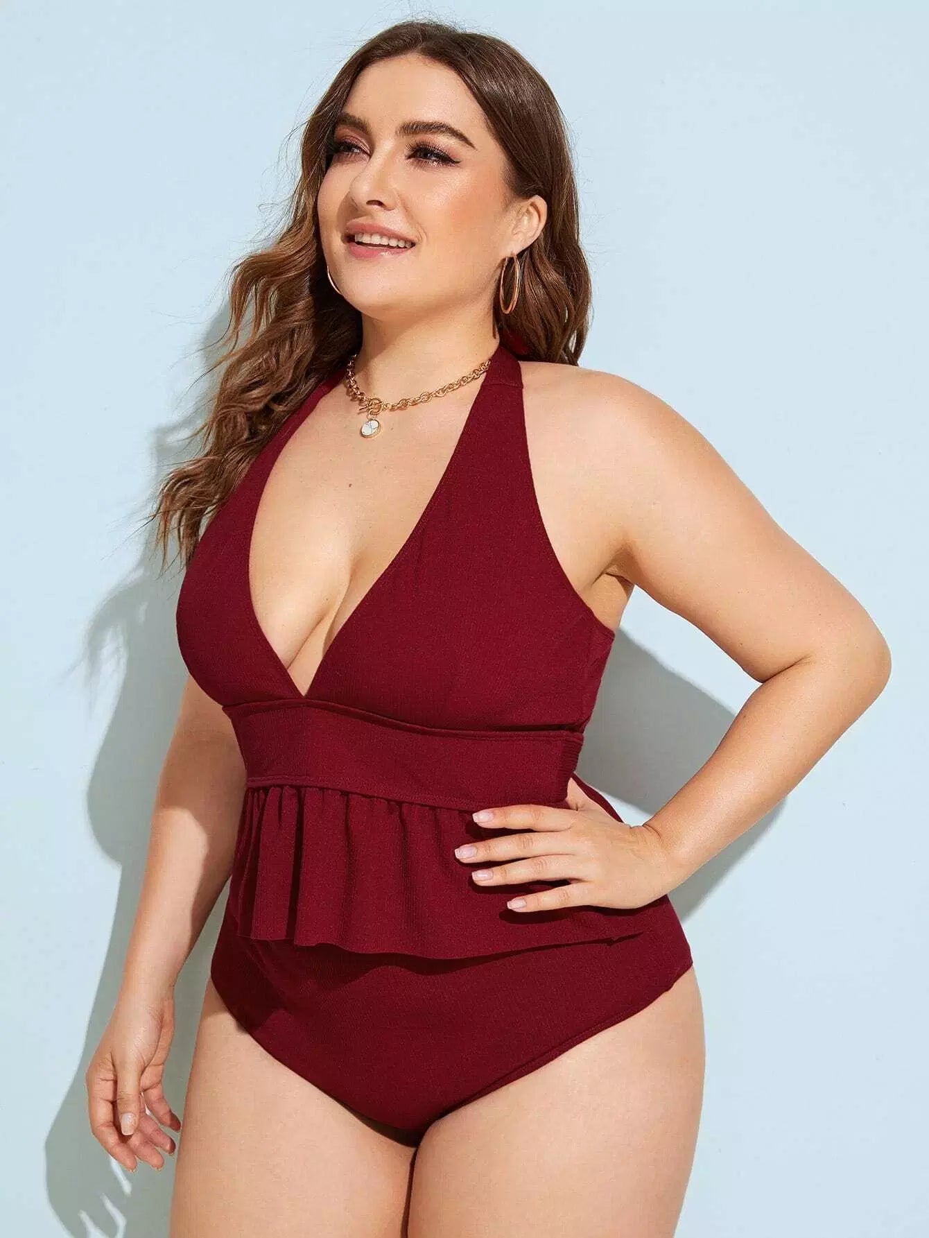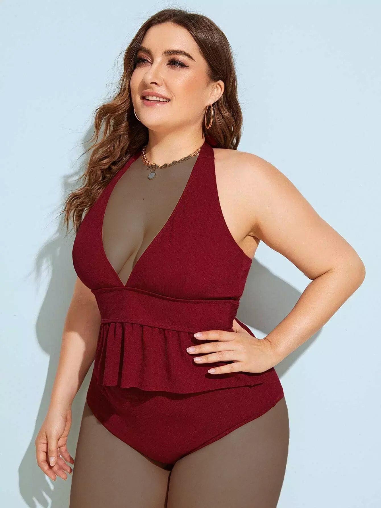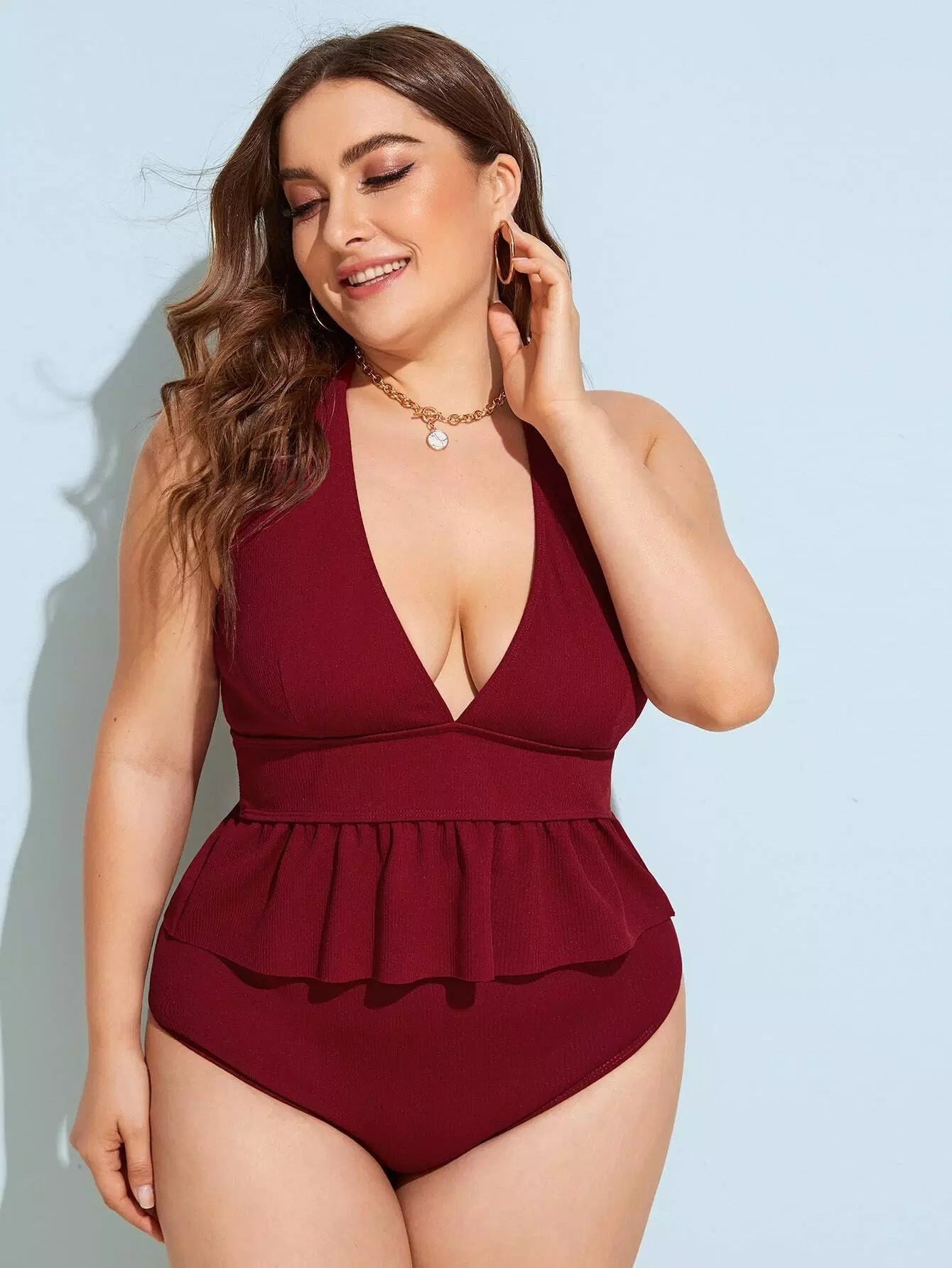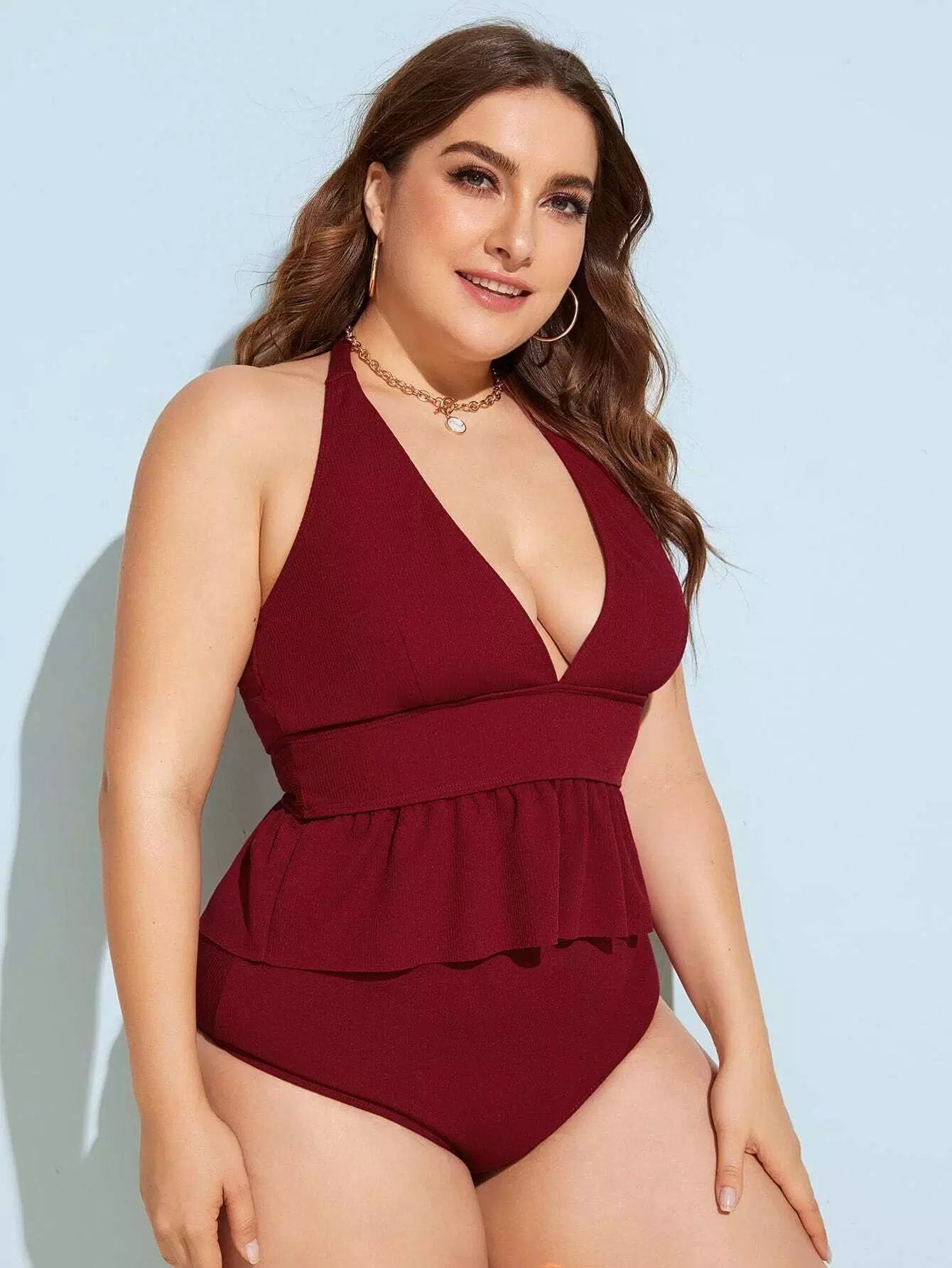 Plus Rib Ruffle Hem Bikini Swimsuit