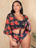 3pack Plus Floral Print Bikini Swimsuit With Kimono