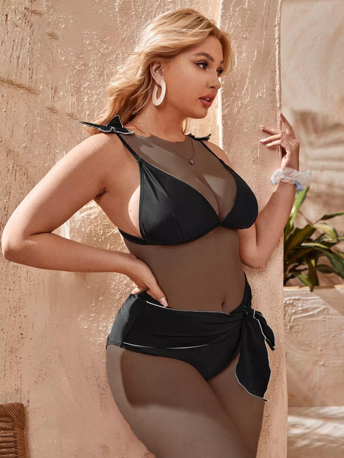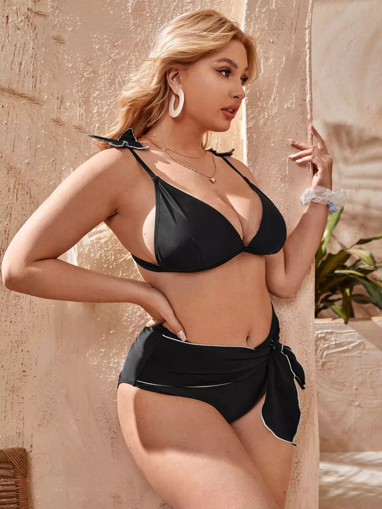 Plus Applique Knot Front Triangle Bikini Swimsuit