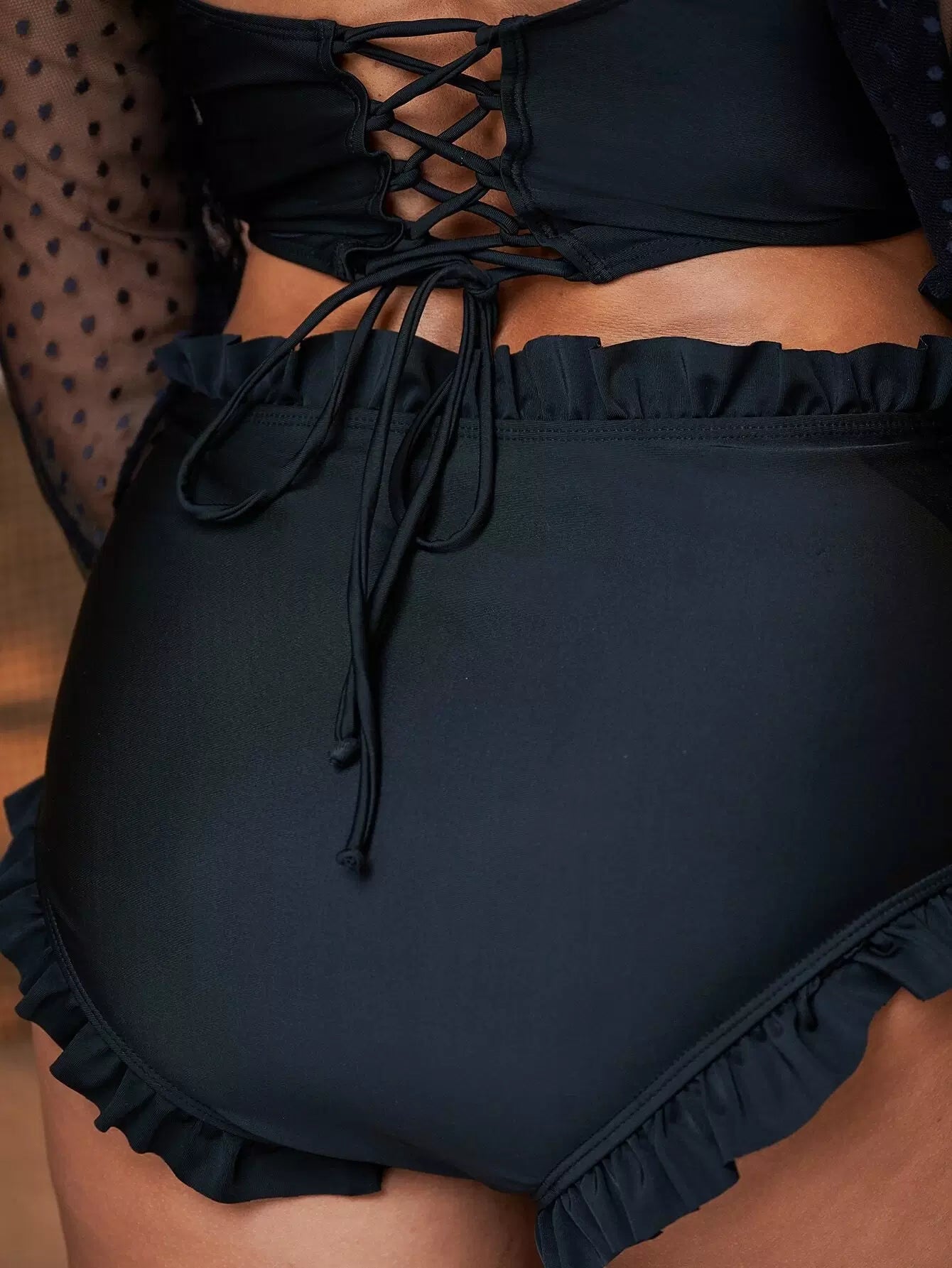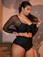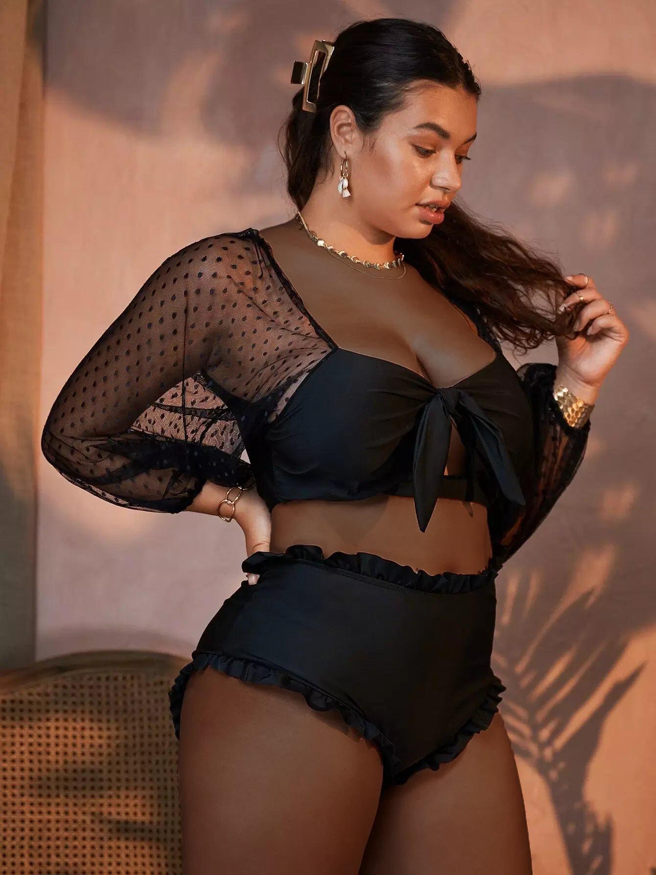 Plus Contrast Mesh Knot Front Bikini Swimsuit