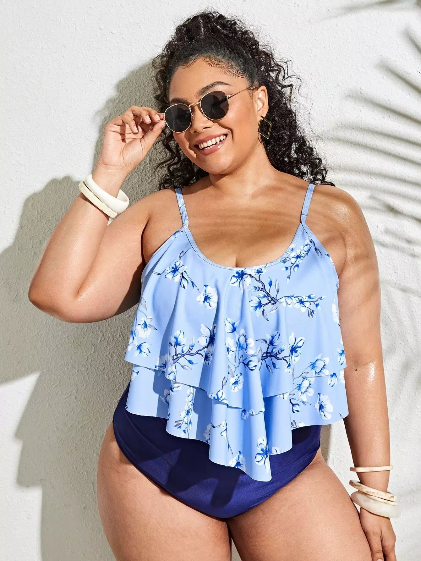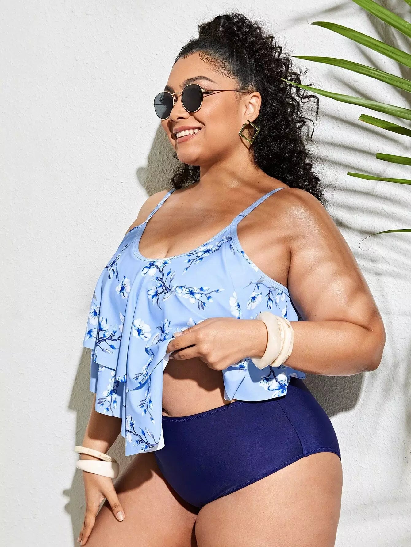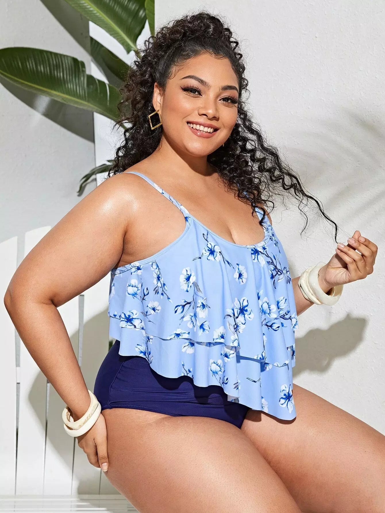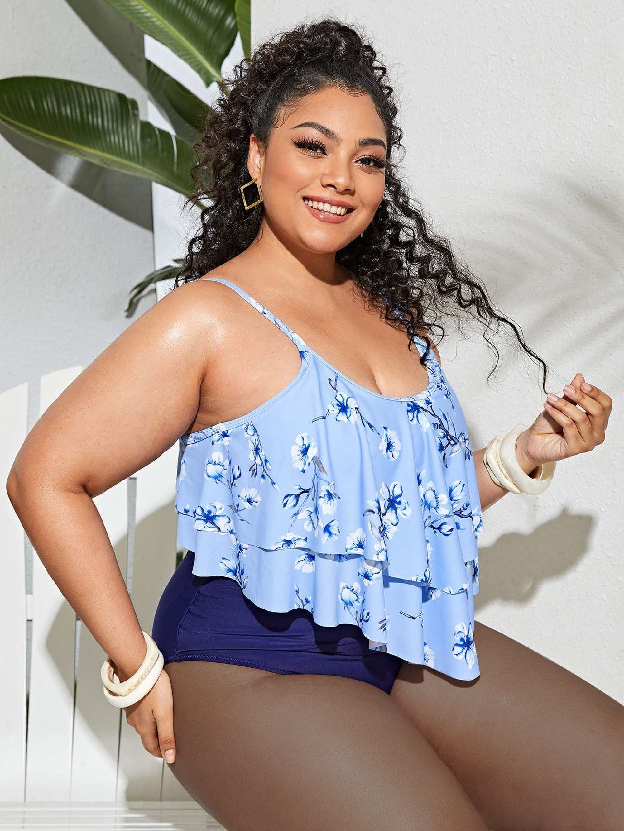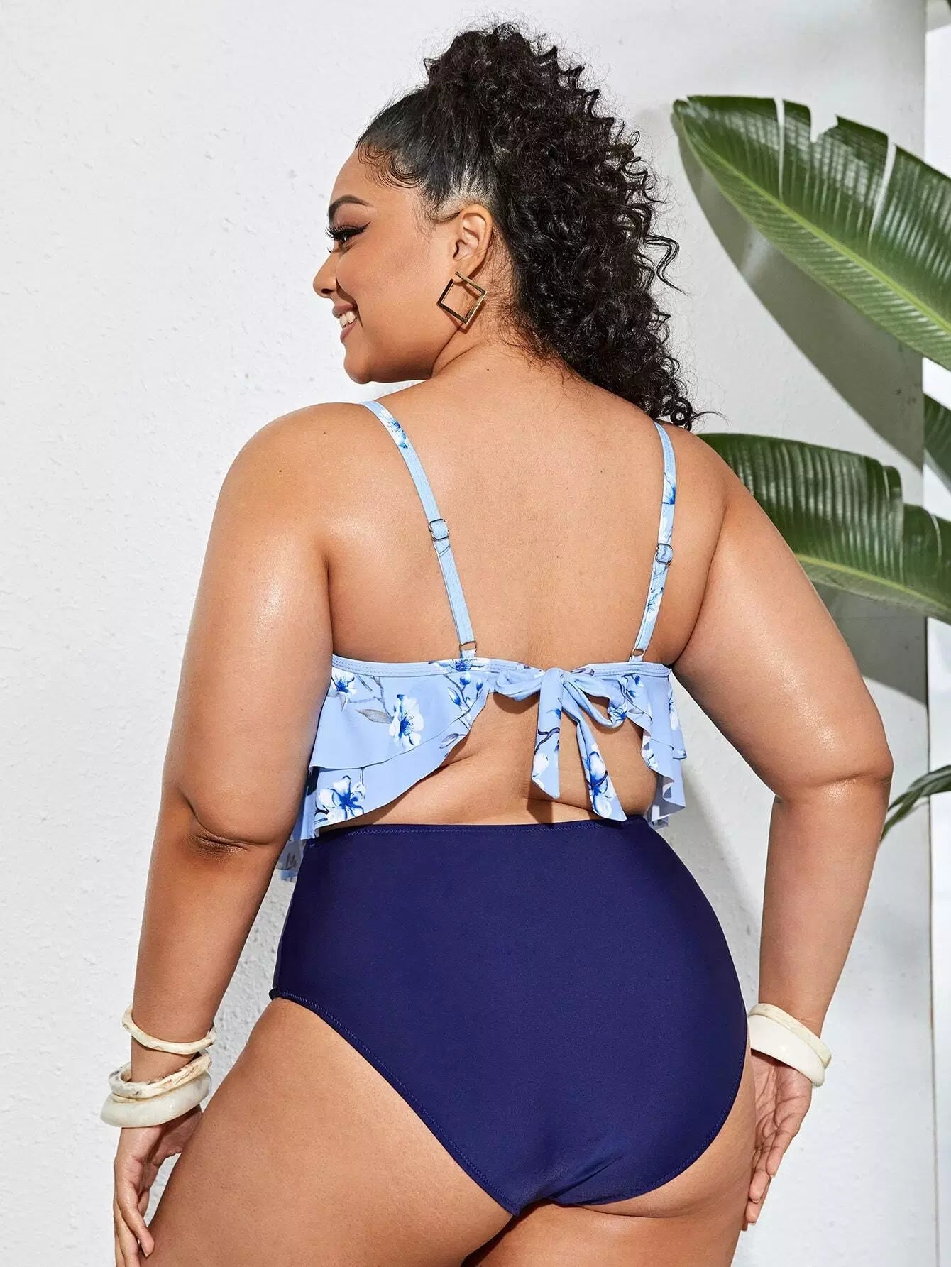 Women - Plus Floral Hanky Hem Bikini Swimsuit