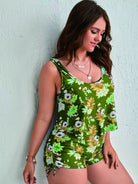 Plus Floral Print Ruffle Hem Bikini Swimsuit
