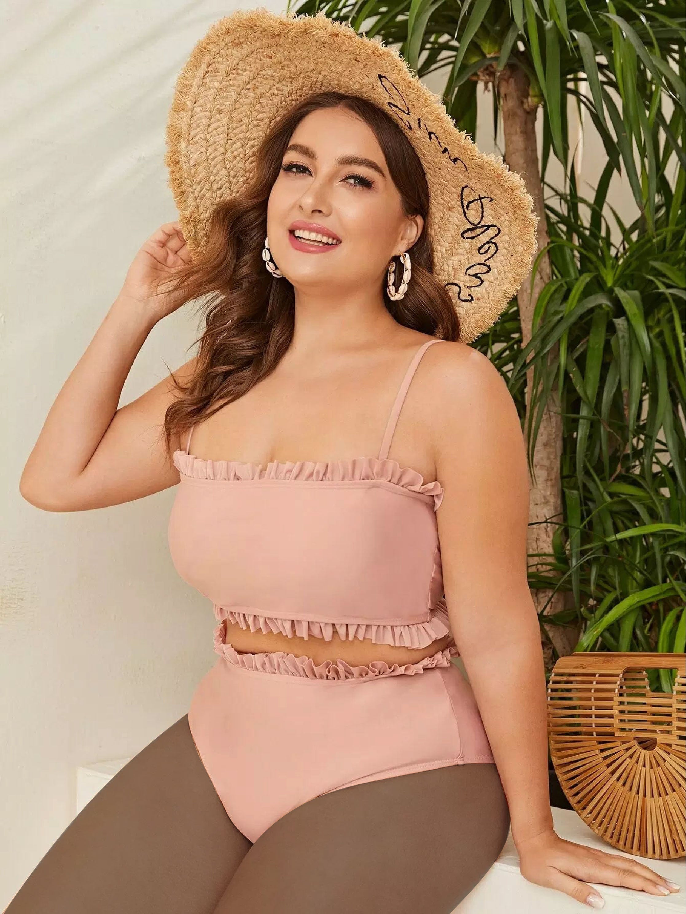 Women - Plus Frill Trim High Waisted Bikini Swimsuit