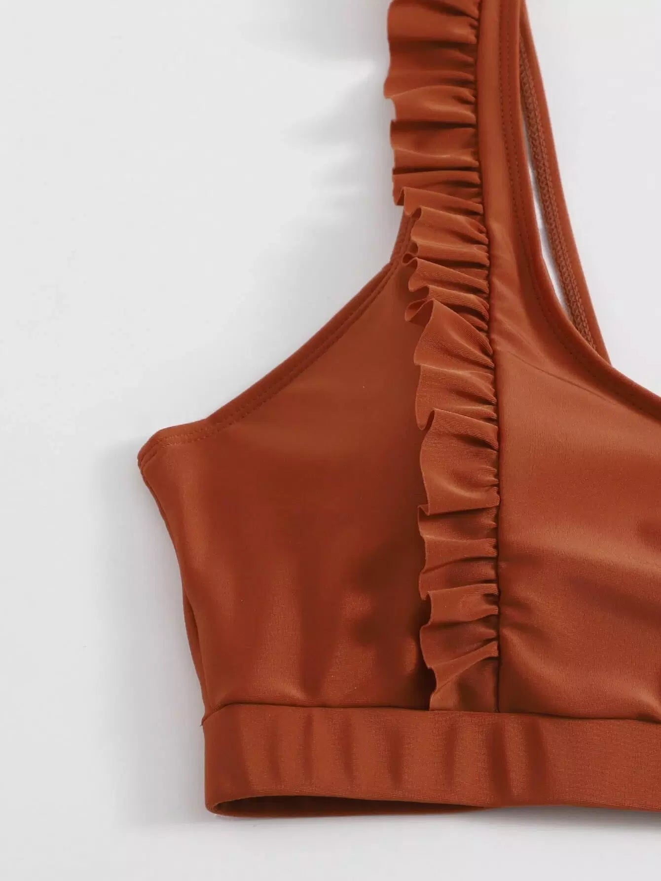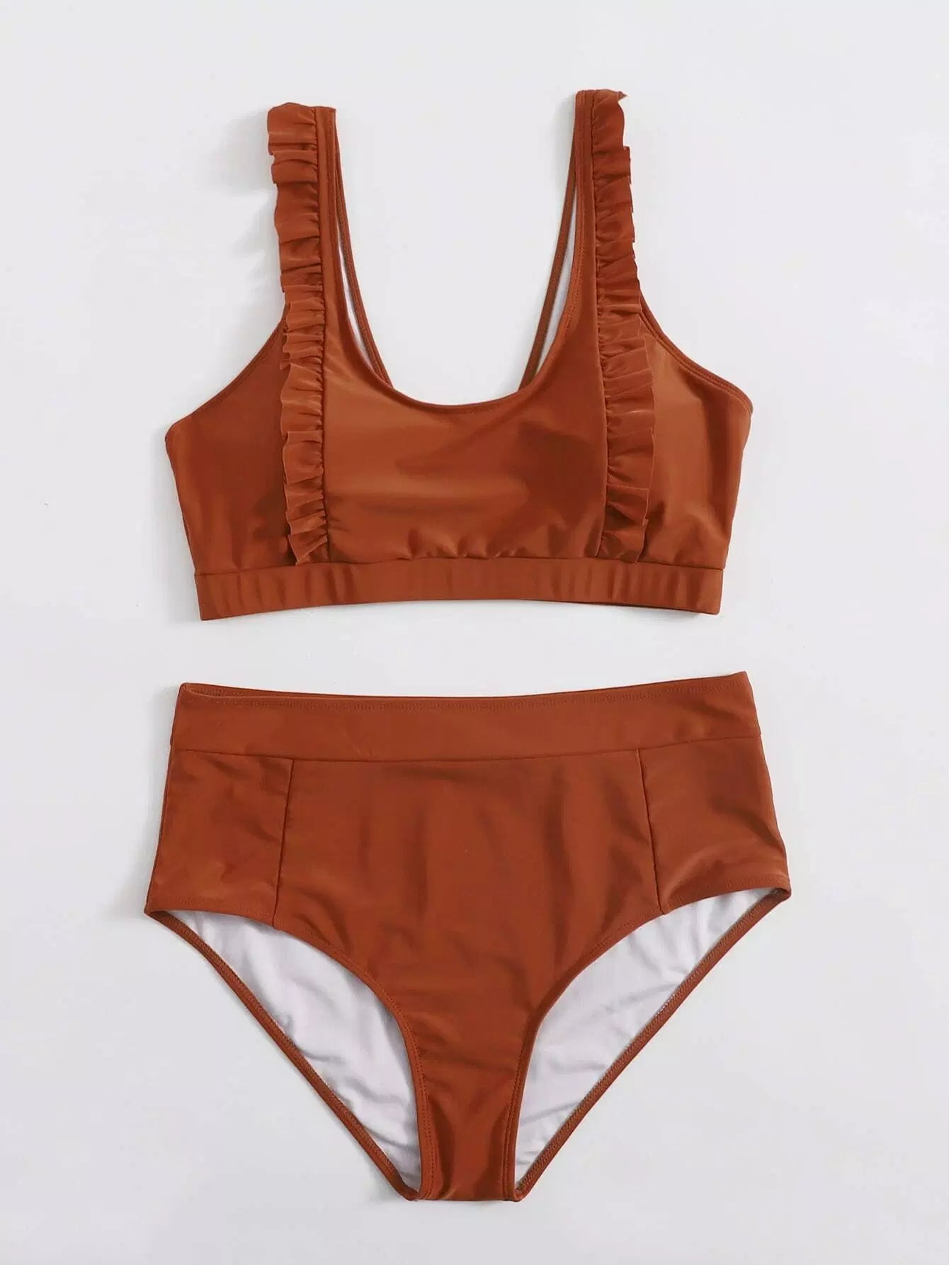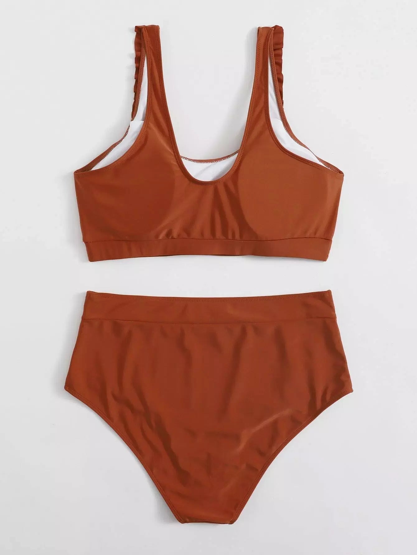 Plus Frill Trim High Waisted Bikini Swimsuit