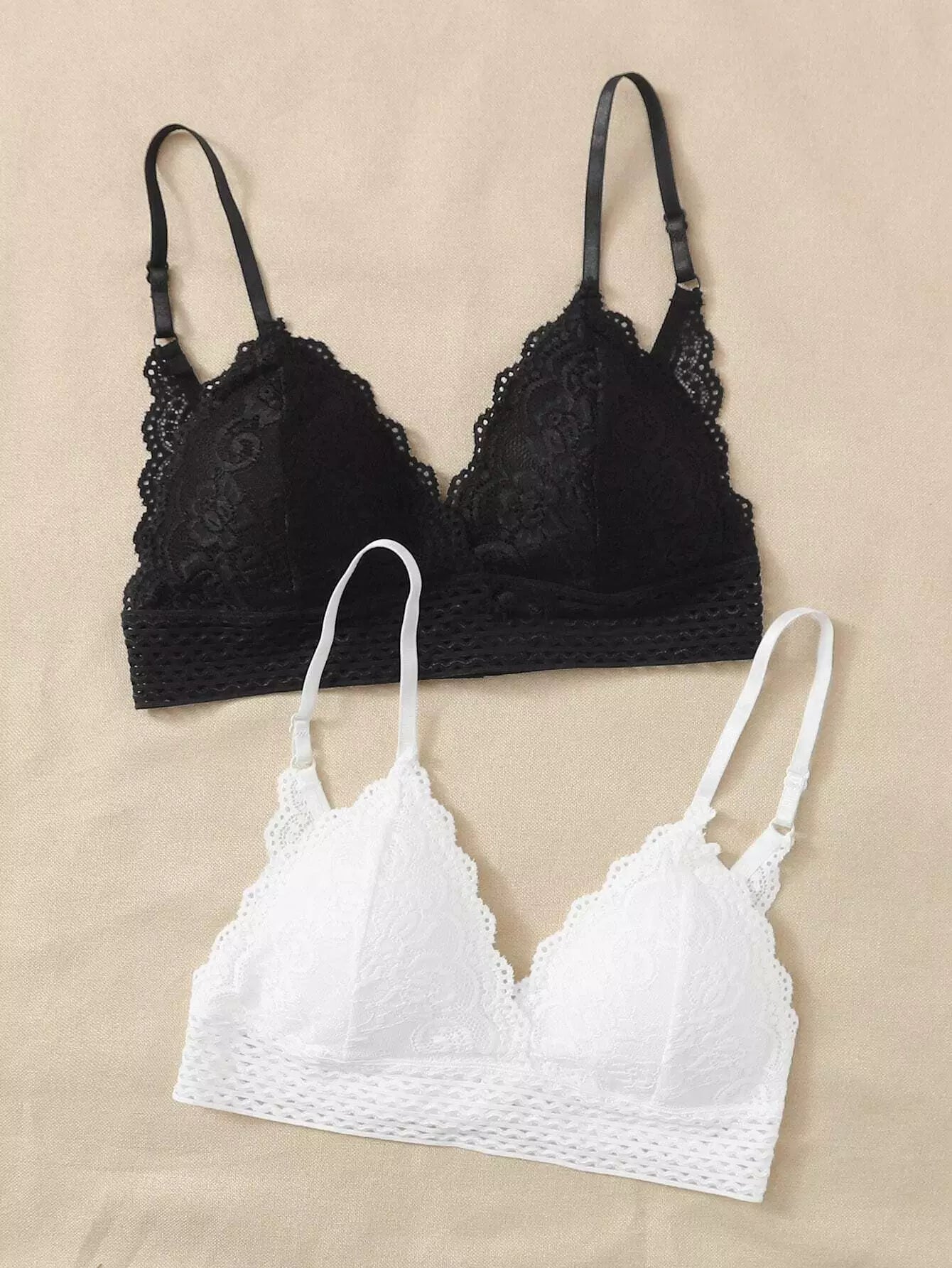 Scalloped Floral Lace Bra Set - 2 Pack