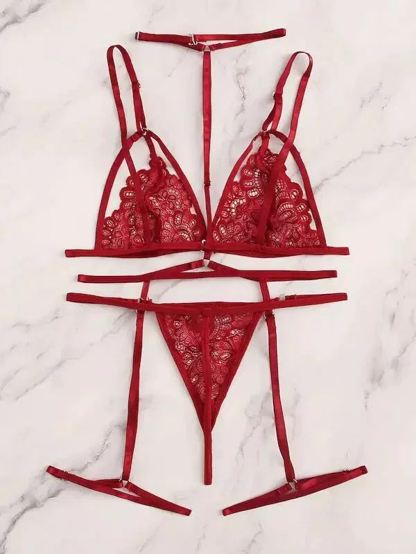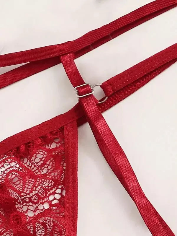 Plus Floral Lace Garter Lingerie Set With Choker