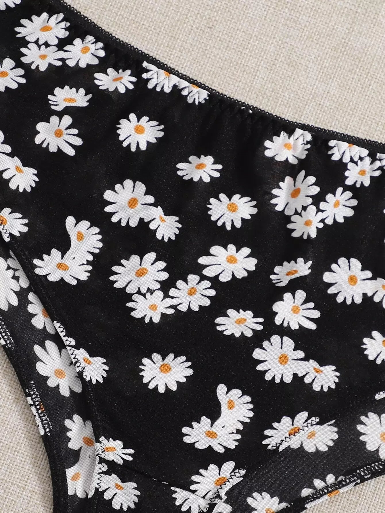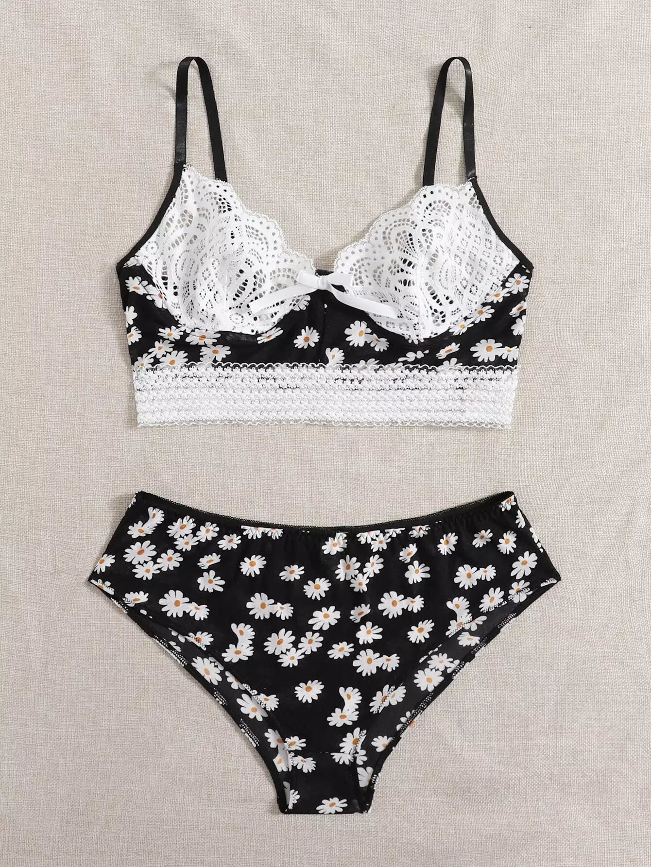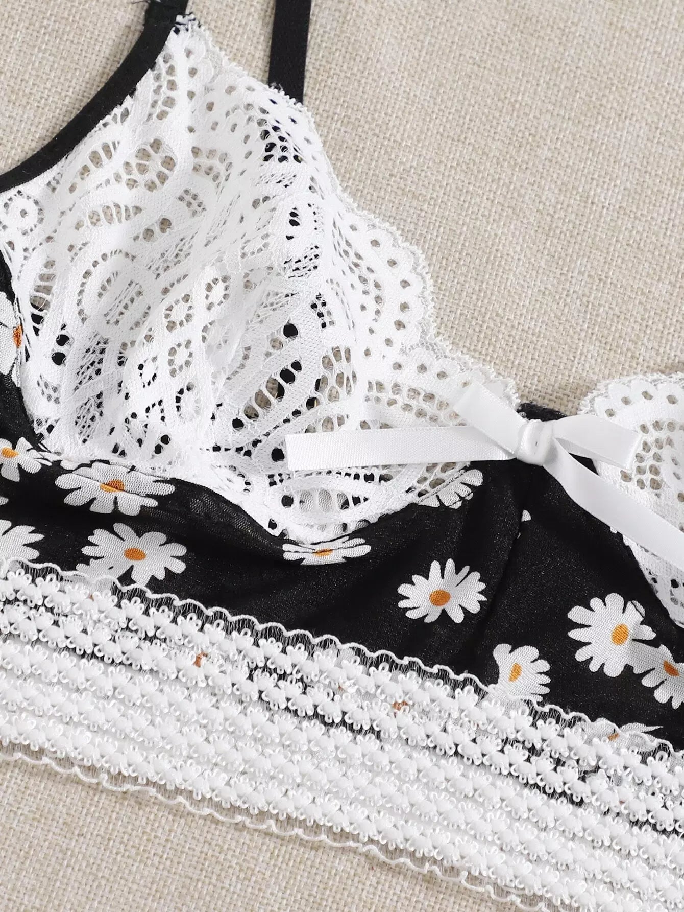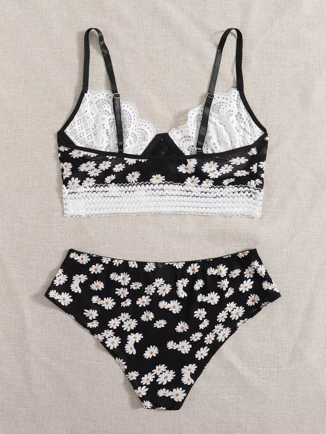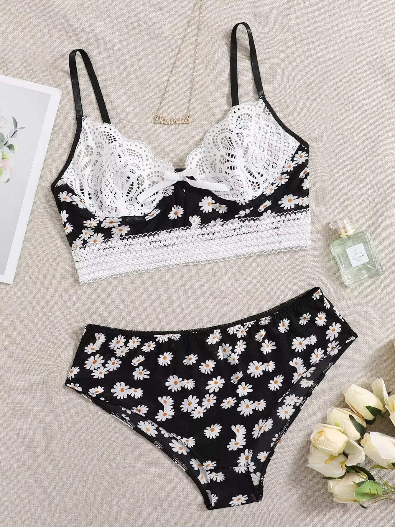 Women - Plus Floral Print Contrast Lace Lingerie Set