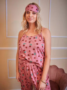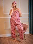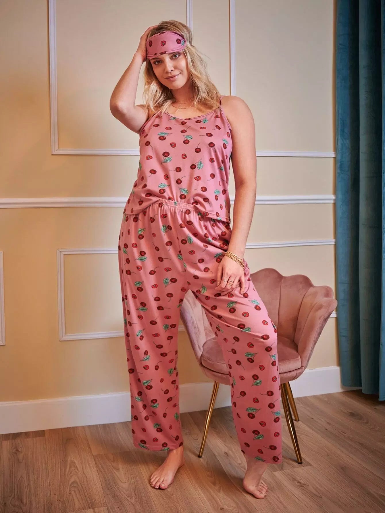 Plus Cherry Print Cami PJ Set With Eye Cover