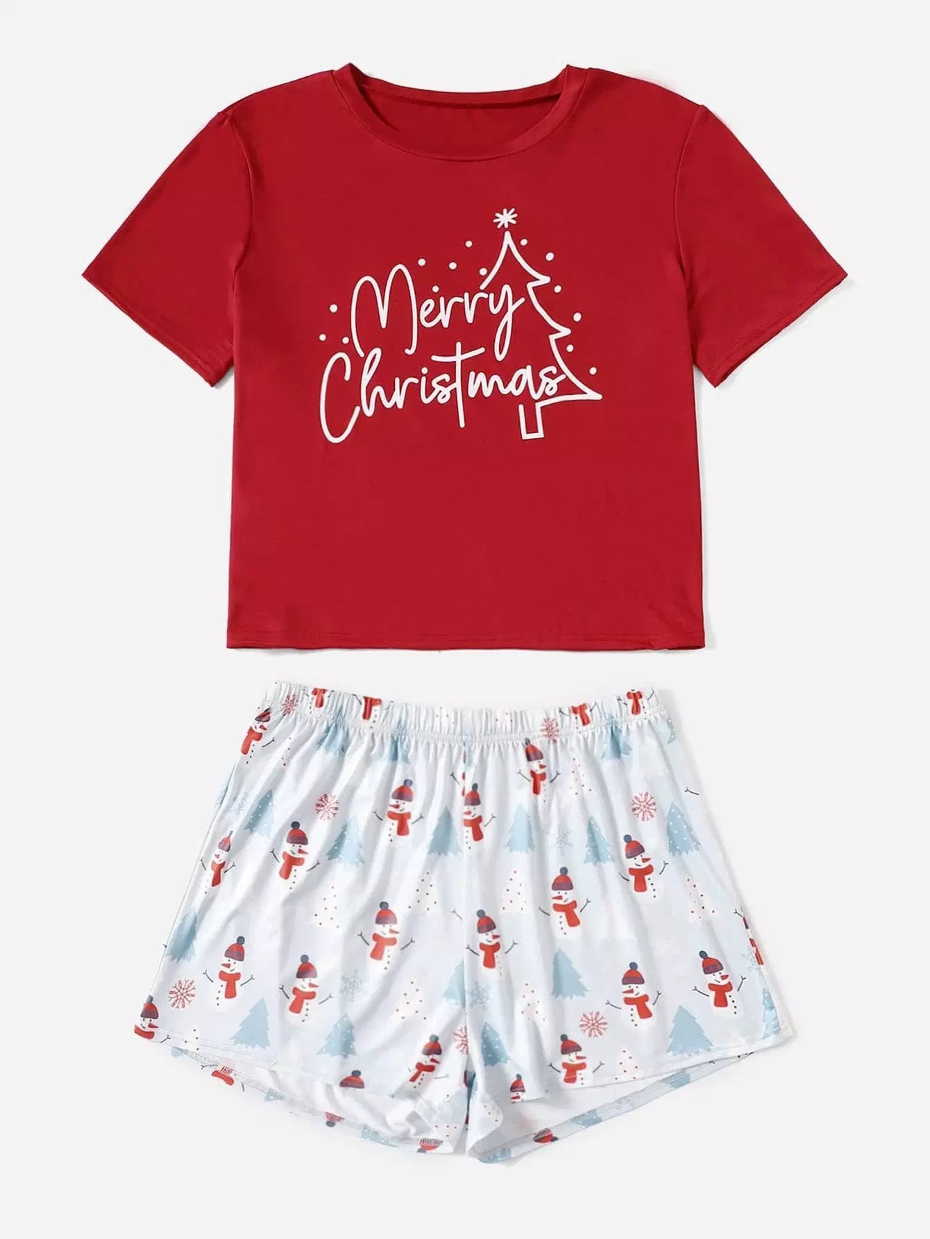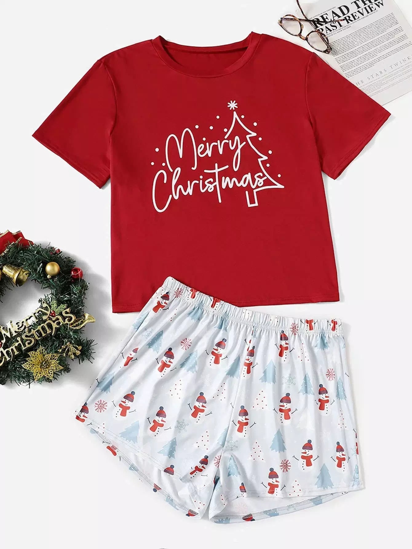 Women - Plus Christmas Print Tee & Shorts PJ Set