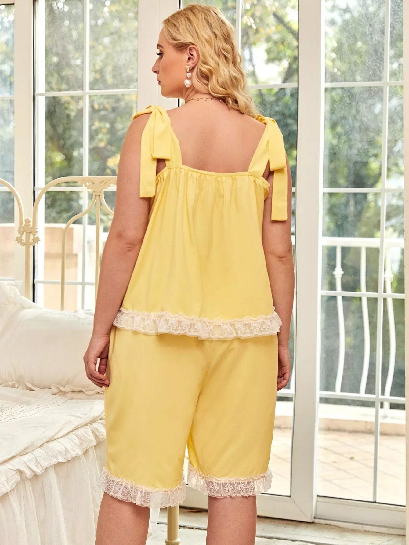 Plus Contrast Lace Ruffle Hem Pajama Set