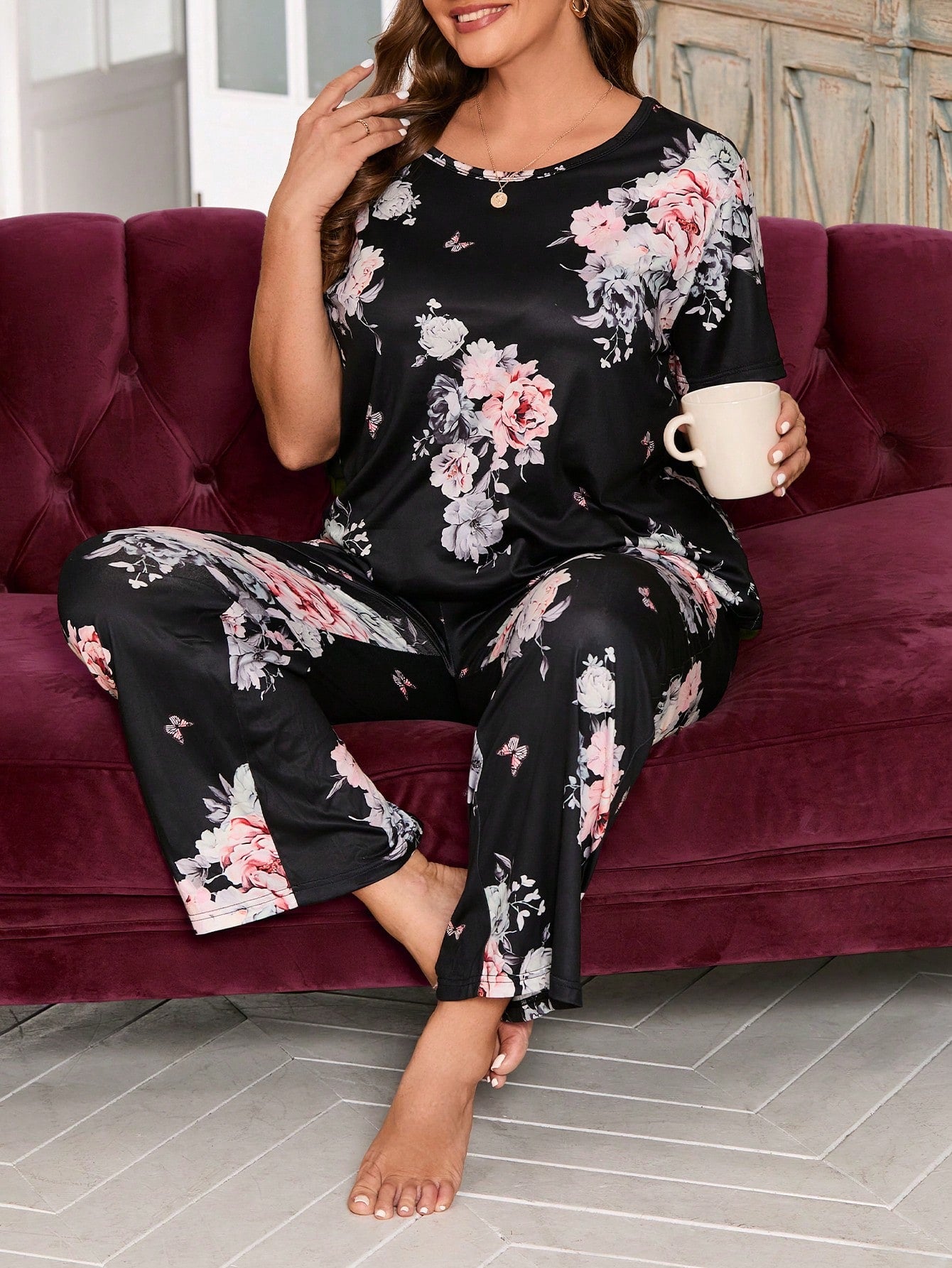 Plus Floral Print PJ Set / Pajama Set