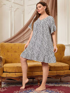 Plus Floral Print Ruffle Trim Double V Neck Nightdress