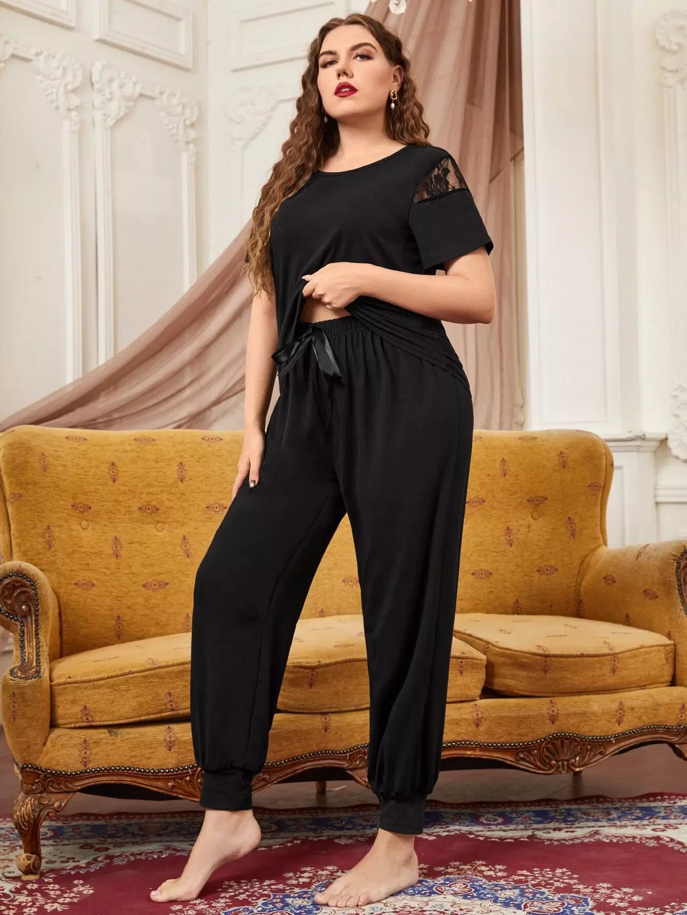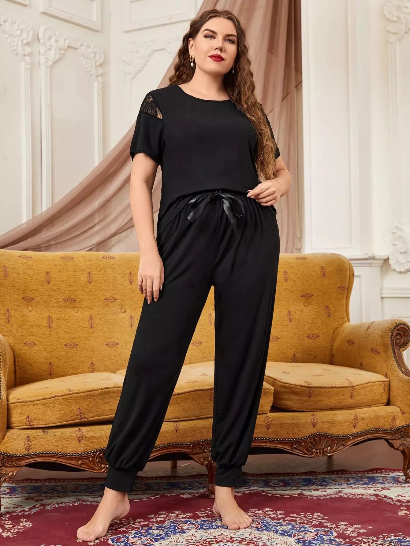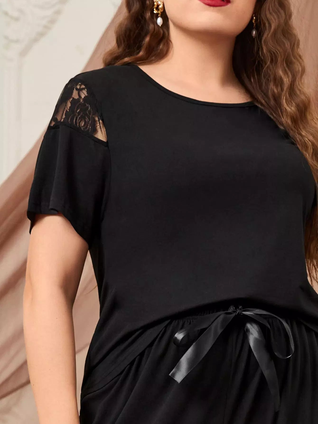 Plus Lace Insert Knot PJ Set