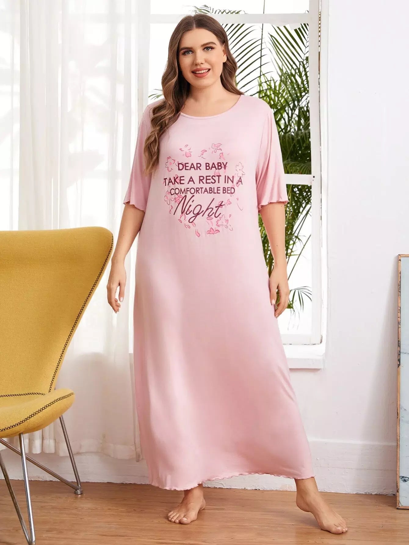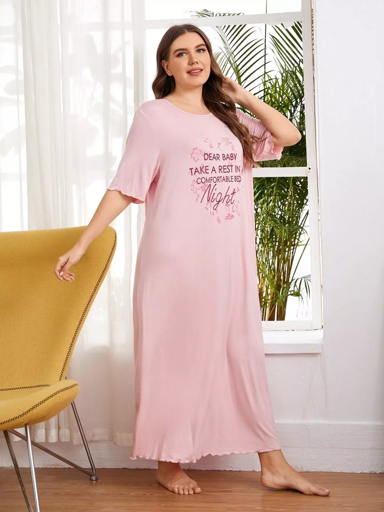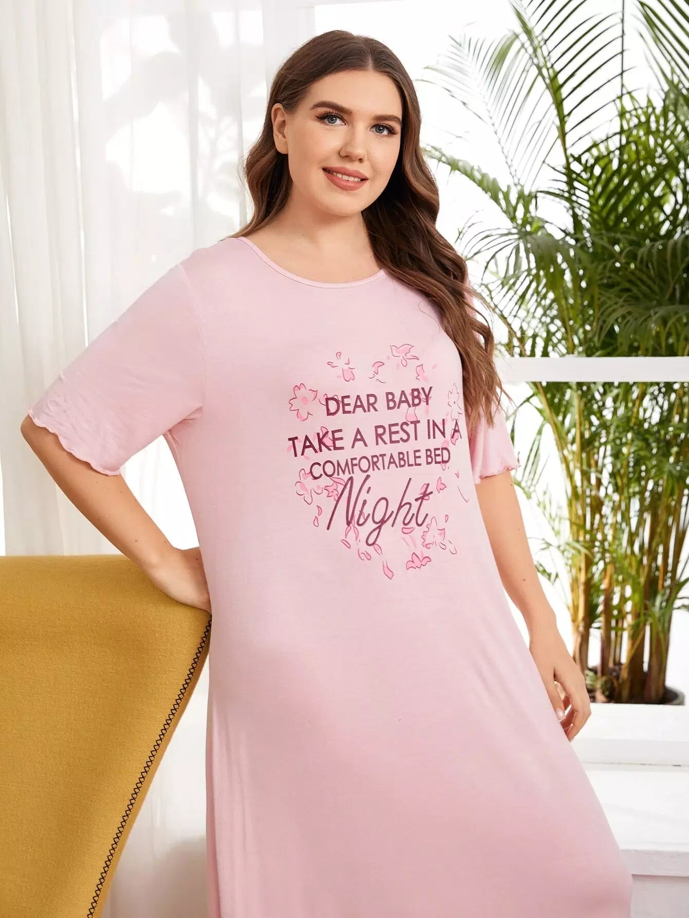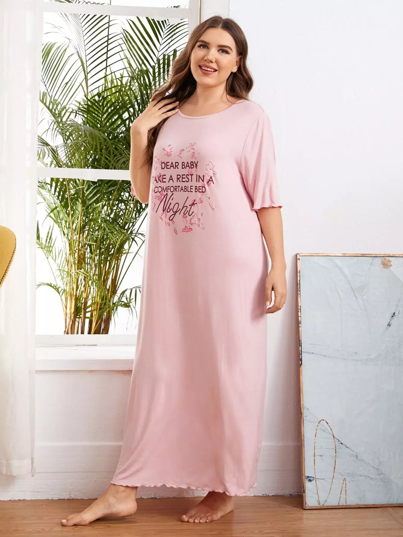 Plus Lettuce Trim Slogan Graphic Nightdress